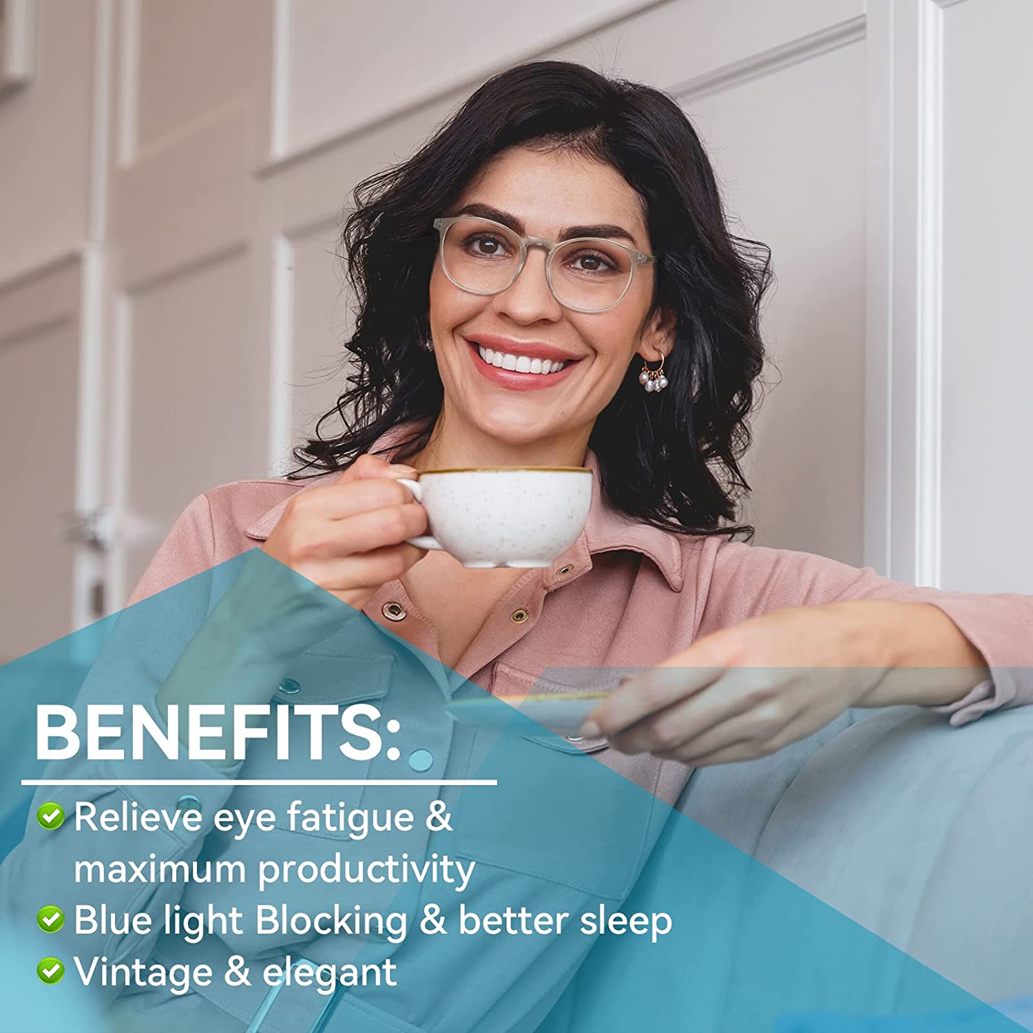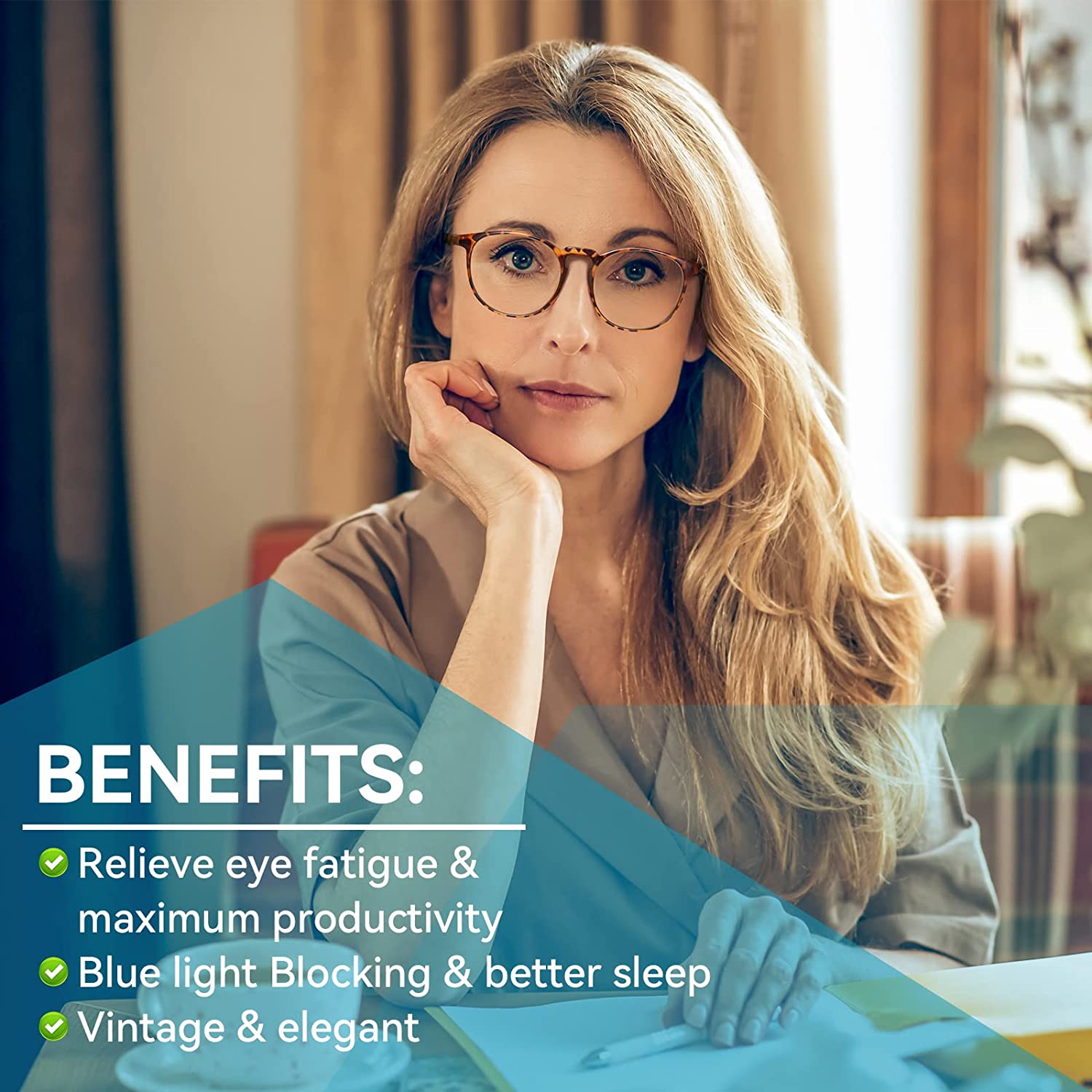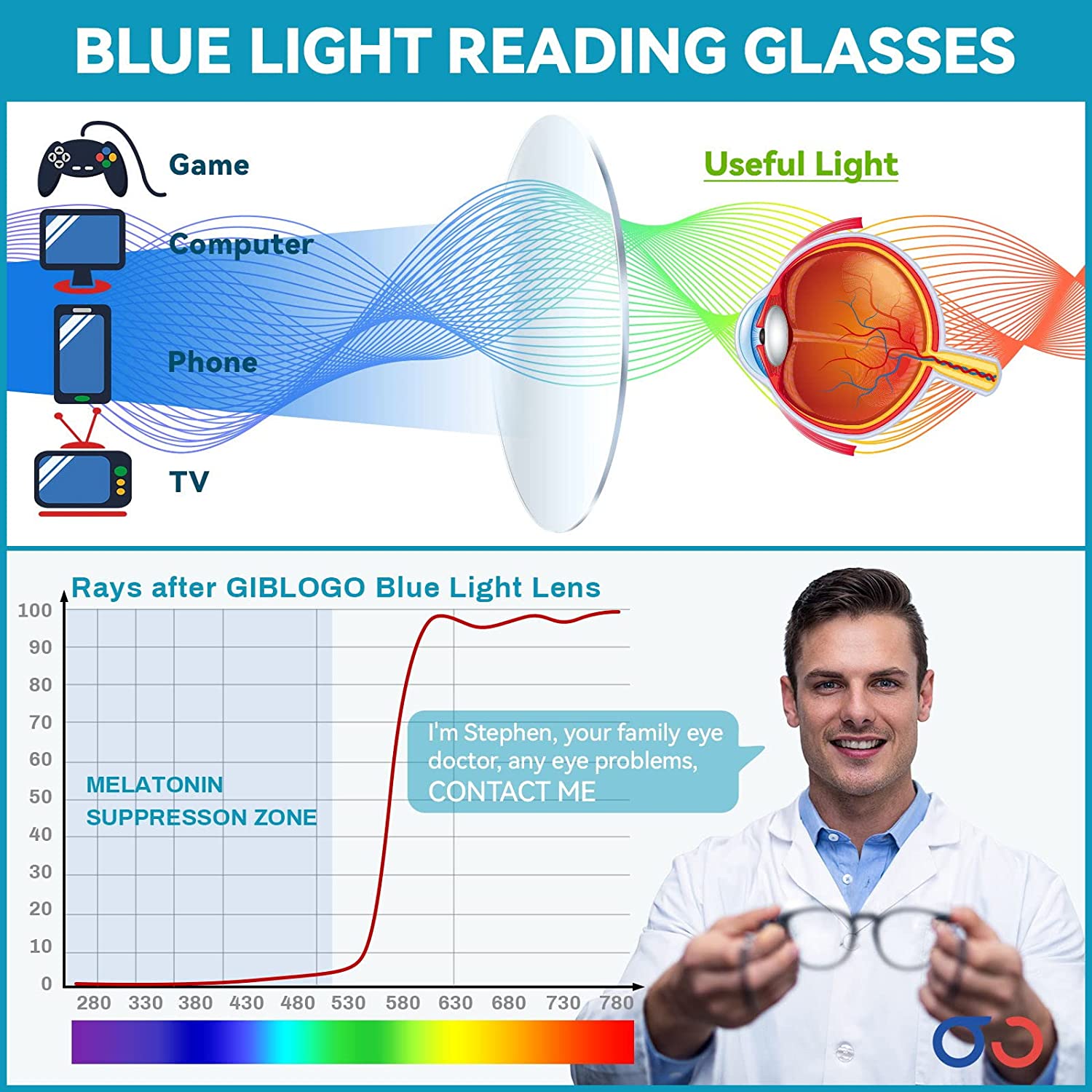 • [PROTECTS EYES FROM DAMAGE] - Macular Degeneration - Exposure to bluelight injures retinal cells and prematurely ages eye tissue. Our blue blocker reading glasses reflect 100% harmful blue rays, UV400 & glare from phone screen. Ease migraines by anti radiation tech