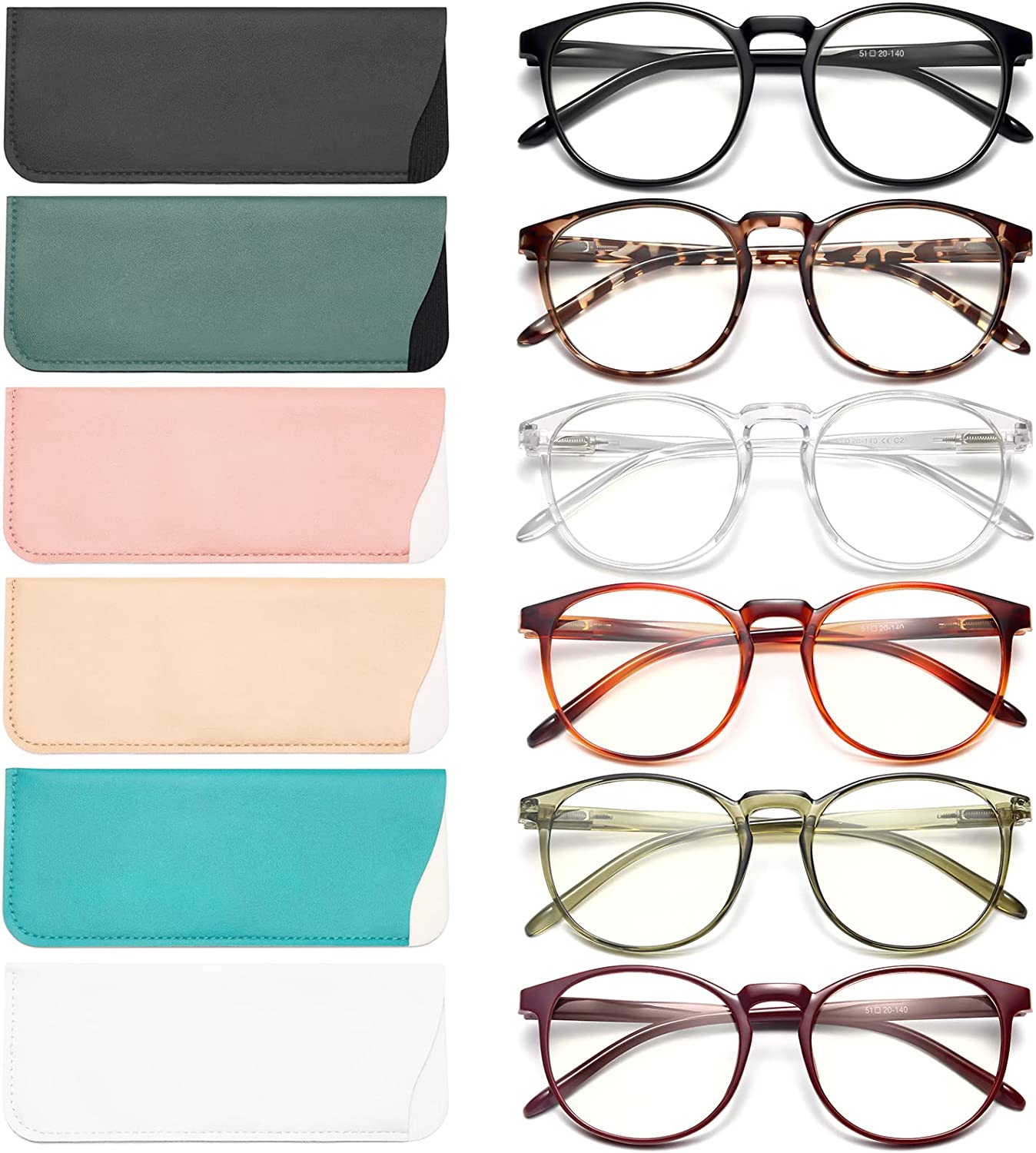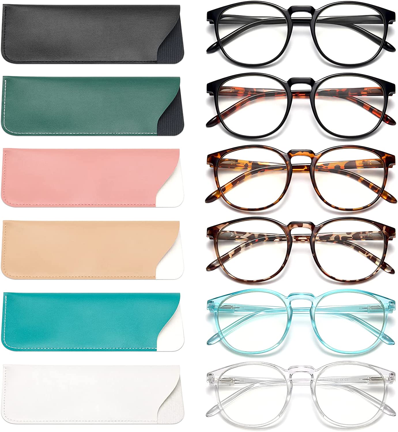 • [AFFORDABLE LUXURY] - Designer Glasses with PU Leather Pouches - Not only 6 fashion forward bags. All eyes on cute & retro round frame, classic silhouette with a smooth texture and striking trendy colorways