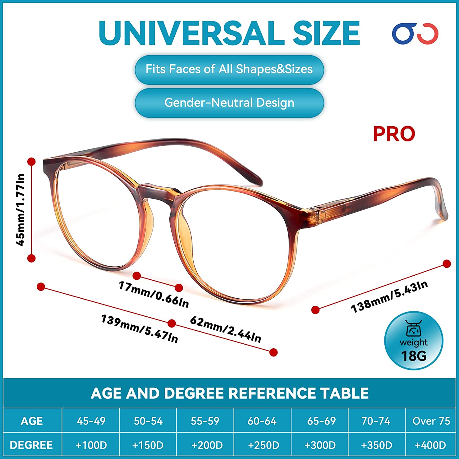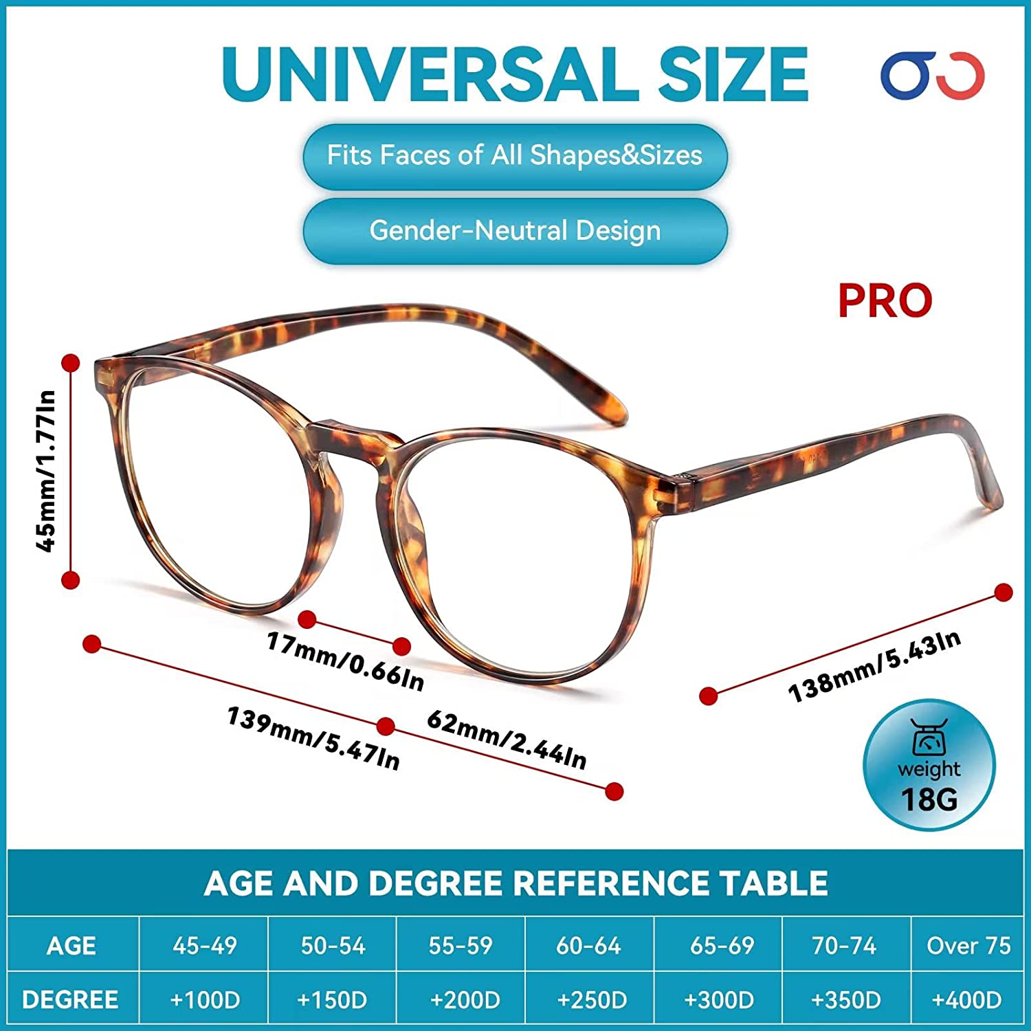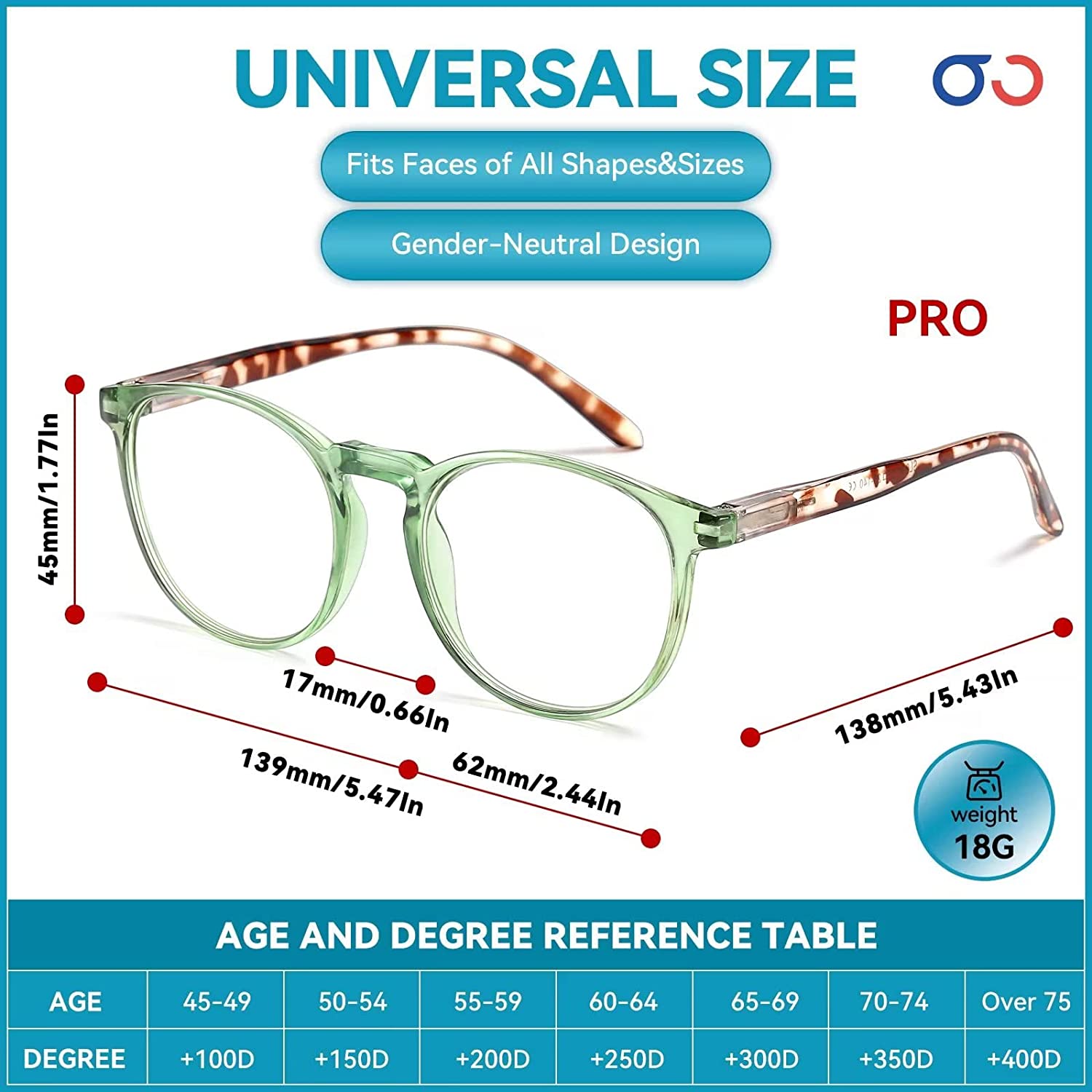 • [EXIST FOR COMFORT] - Lightweight flexible TR90 frame hugs the unique contours of readers’ face without pressure on the nose. Skincare temples effectively avoid dents while relieve muscle tension