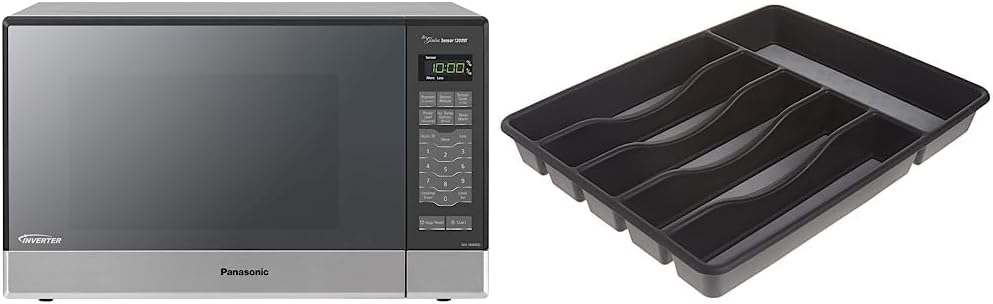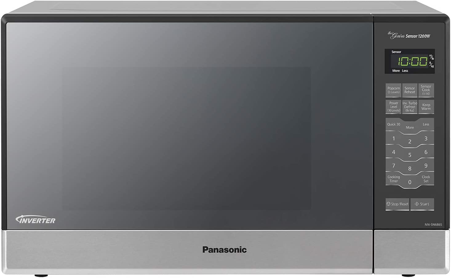 With its sleek, stainless-steel door and base and stainless silver body, the powerful Panasonic Microwave Oven NN-SN686S Countertop/Built-In with Inverter Technology and Genius Sensor makes a stylish and convenient addition to any home, apartment or condo kitchen. This exceptional 1200-Watt, 1.2-cubic-foot capacity stainless steel microwave with 13.4-inch turntable evenly heats and cooks breakfast foods, after-school snacks, dinners, appetizers and more, making it ideal for singles, busy professionals and on-the-go families. This innovative microwave oven includes patented Inverter Technology which, unlike traditional microwaves that rely on pulse-on, pulse-off power at lower temperatures, delivers a constant stream of cooking power at every temperature for more evenly cooked meals - edges to centers - every time. With the touch of the Genius Sensor cooking button, this microwave takes the guesswork out of creating a great meal by automatically setting power levels and adjusting cooking or defrosting time for added time-saving convenience. The sensor measures the amount of steam produced during cooking and signals the microprocessor to calculate the remaining cooking time at the appropriate power level. A selection of 14 auto cook options enable you to quickly prepare your favorite foods, such as pizza, popcorn, pasta, soup, oatmeal and other dishes. This Panasonic microwave oven externally measures 12-1/4-inch x 20-11/16-inch x 15-13/16-inch (H x W x D).