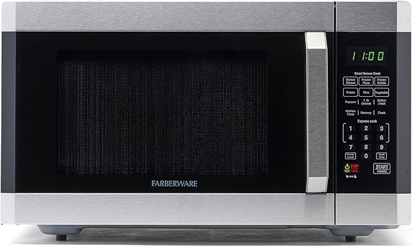 Farberware Countertop Microwave 1100 Watts, 1.6 cu ft - Smart Sensor Microwave Oven With LED Lighting and Child Lock - Perfect for Apartments and Dorms - Easy Clean - Stainless Steel
