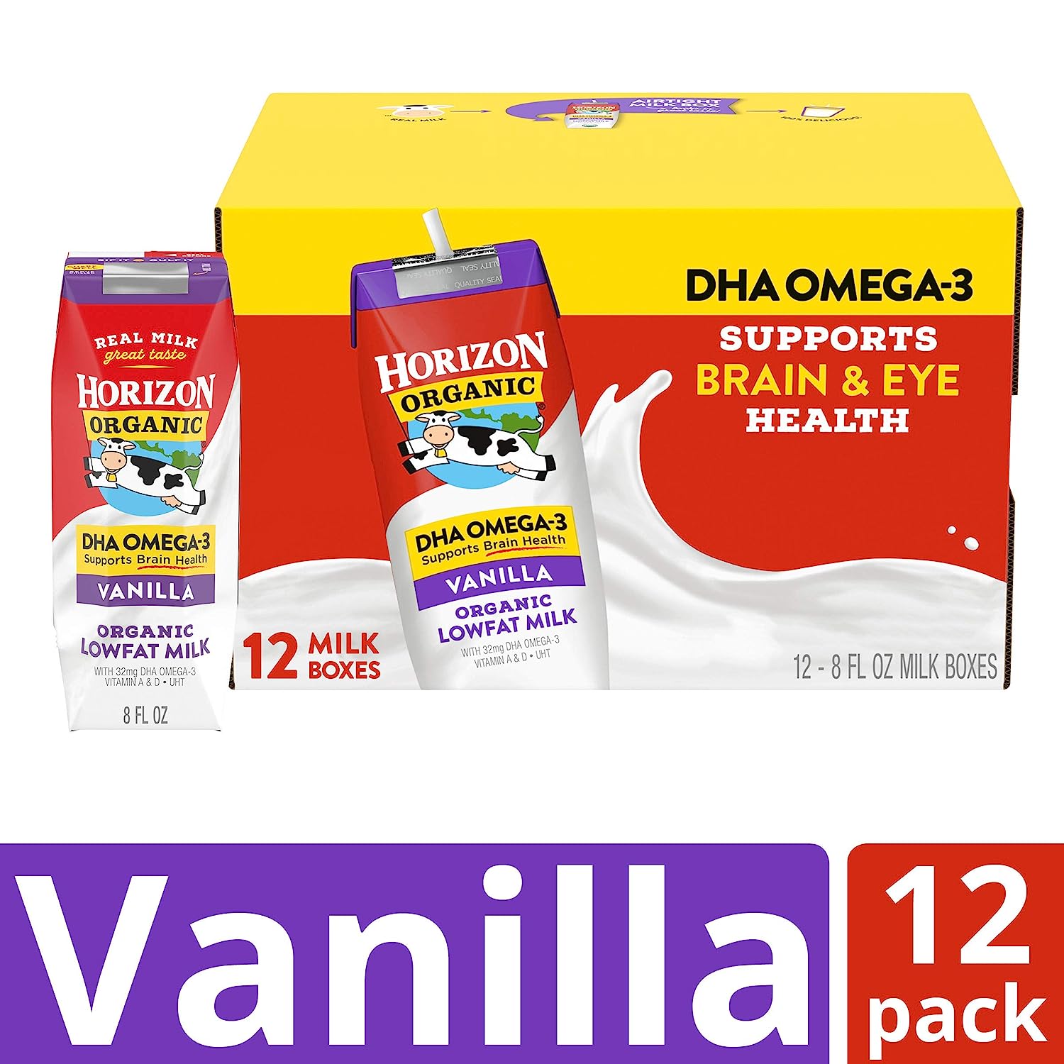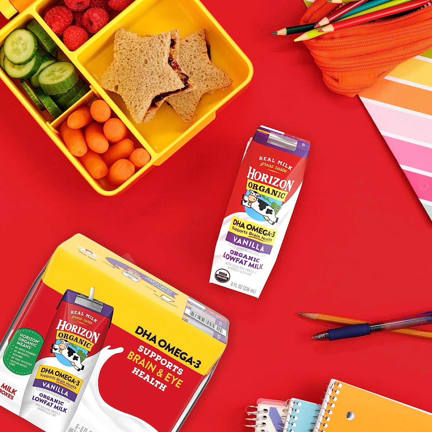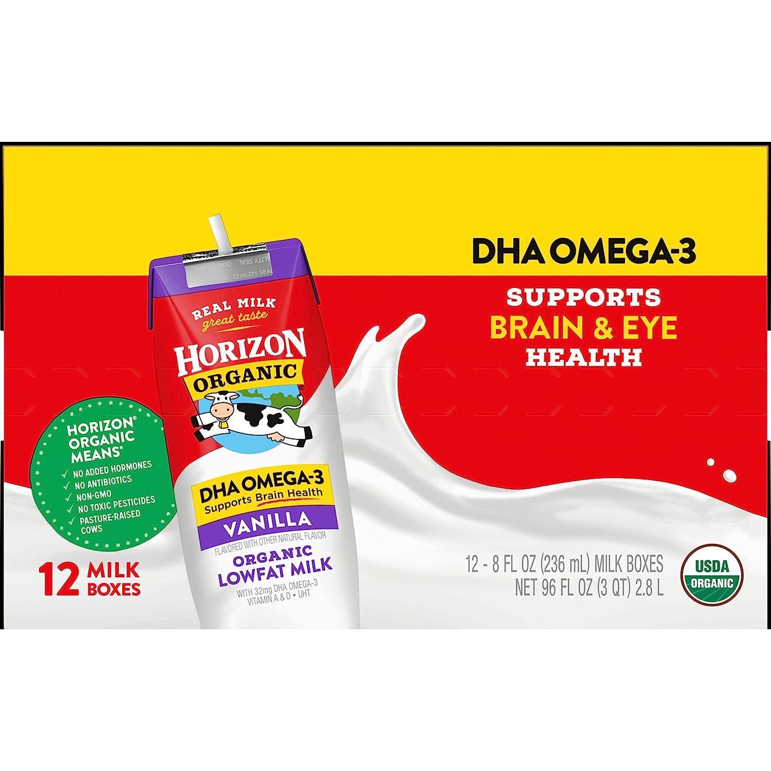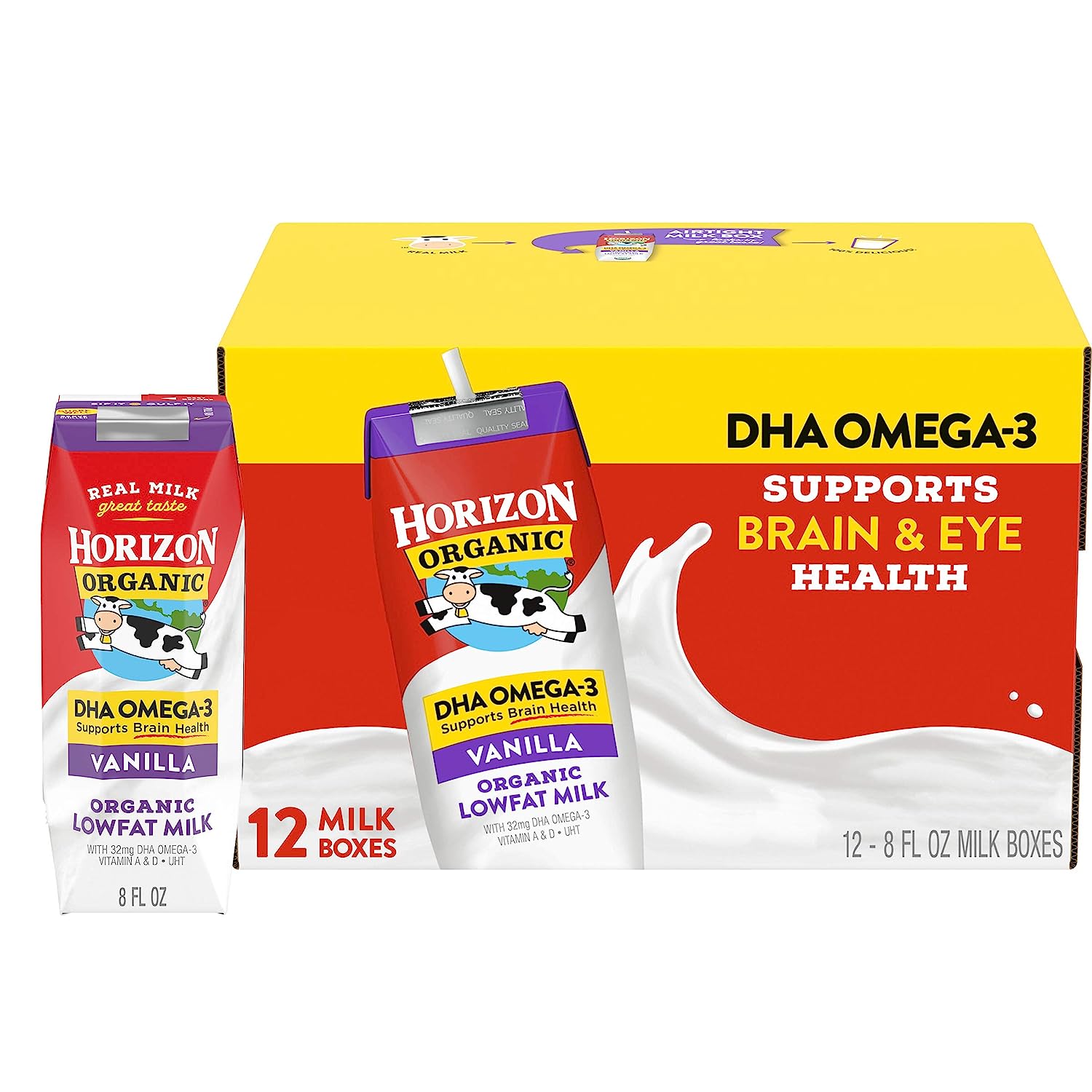 Take the organic goodness of Horizon milk on-the-go with Horizon Organic UHT 1% Lowfat Vanilla Milk Boxes. Great as a lunchbox stuffer or snack, these single-serve milk boxes offer a wholesome alternative to juice boxes. Each milk box provides many nutrients, including vitamin A, vitamin D, and 8 grams of protein. And thanks to their special packaging, these shelf-stable milk boxes lock in delicious taste without refrigeration. *No significant difference has been shown between milk from rbST-treated & non rbST-treated cows.