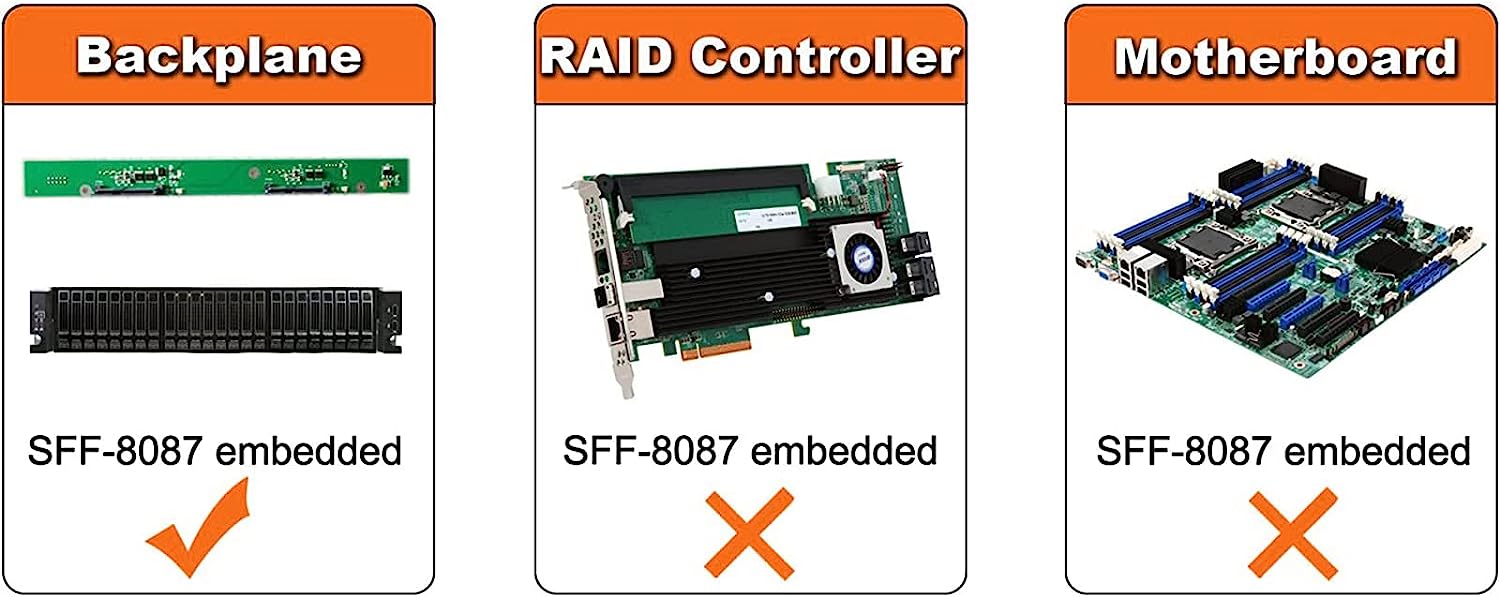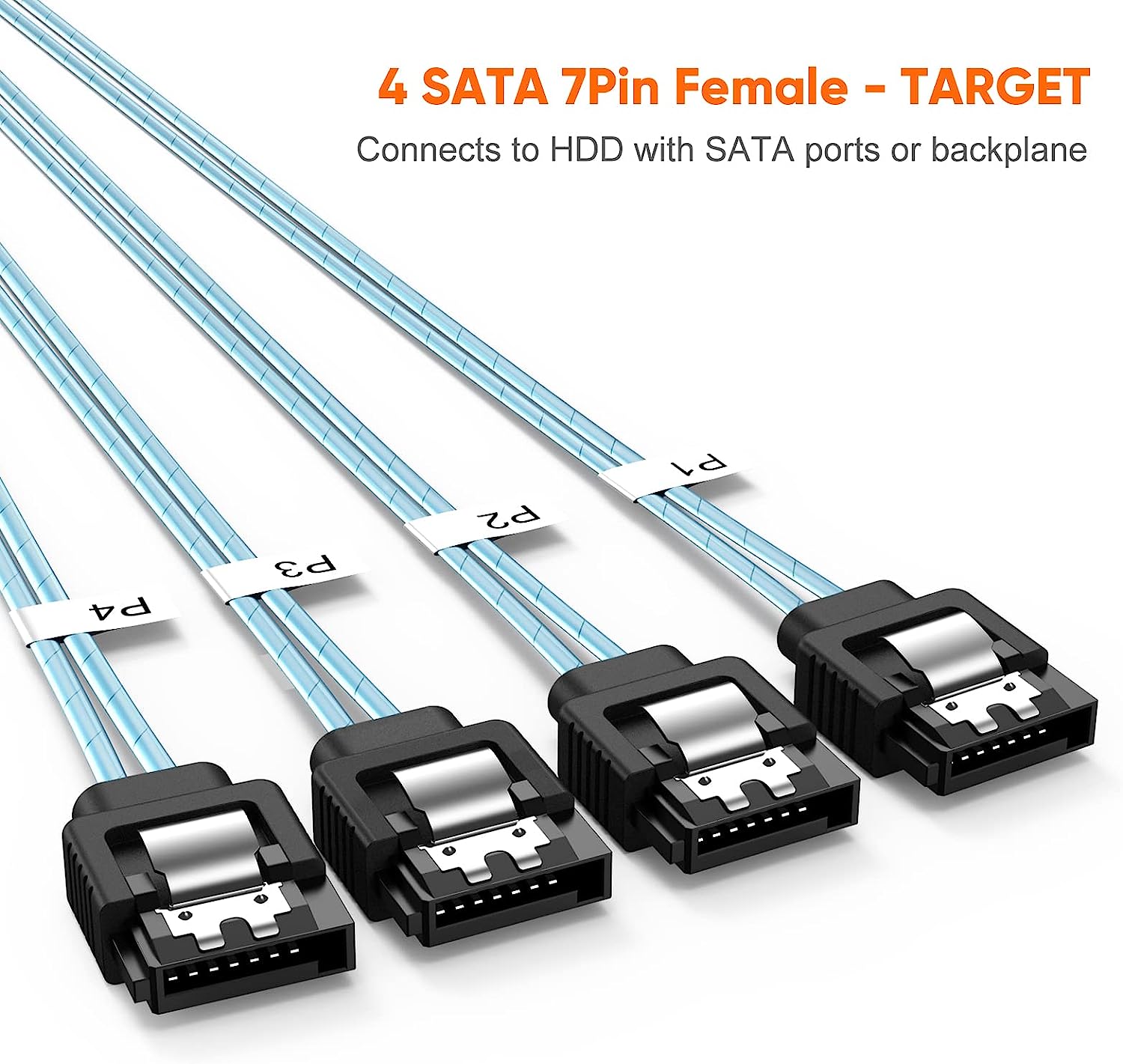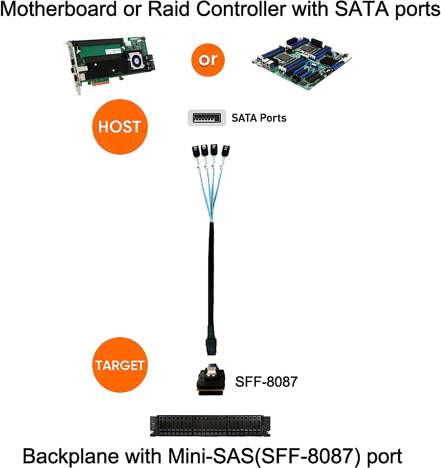• ►Mini SAS 36 (SFF-8087) male is to connect to the Motherboard or Raid controller, 4x SATA is to connect to the backplane.