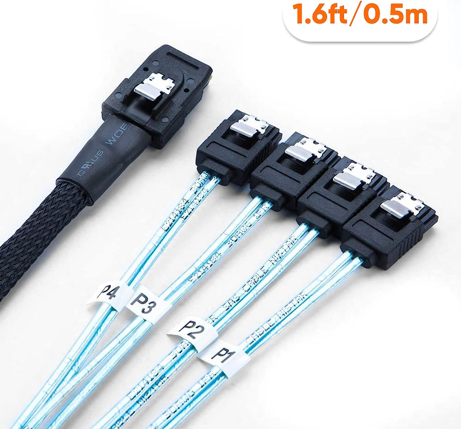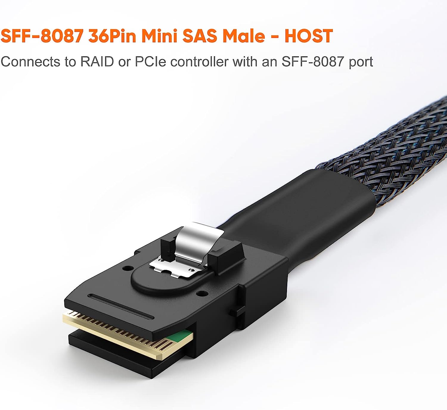 • ►Mini SAS 36 (SFF-8087)male is host,connecting to the controller, 4 Sata connect to 4 HDD,supporting data transfer rates up to 6Gbs per drive.
