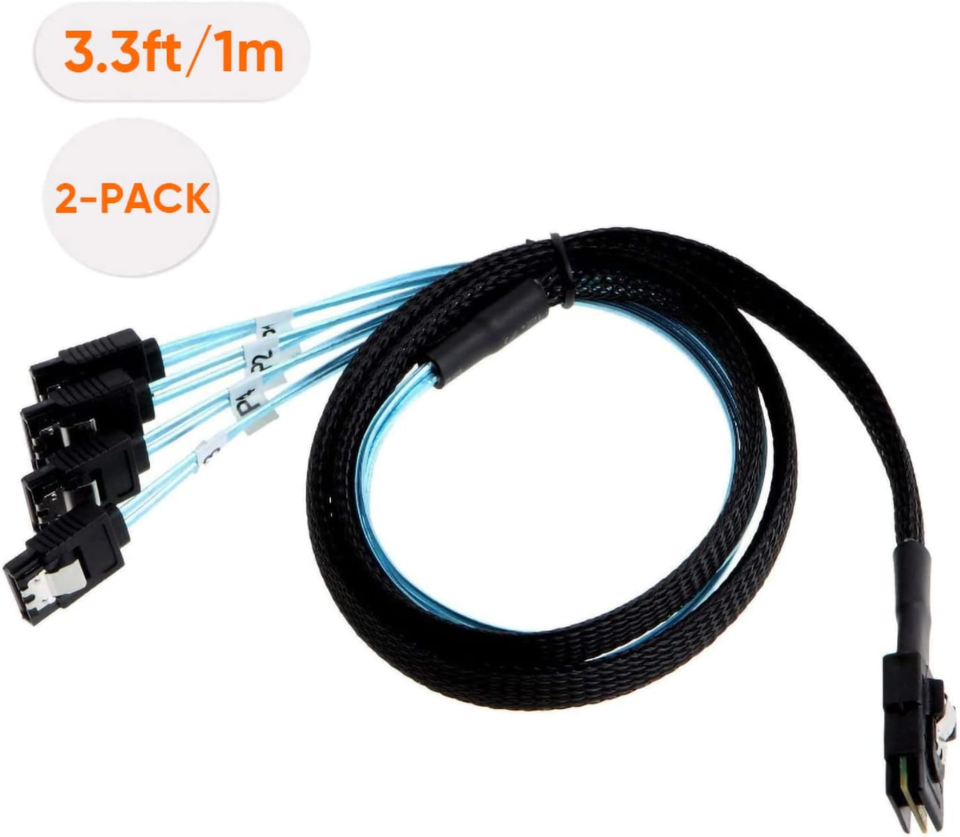 CableCreation Mini SAS to 4 SATA Cable, 36 Pin SFF 8087 Host/Controller to 7 Pin SATA Target/Backplane, Compatible with PERC H310, RAID Controller(1M / 3.3FT)