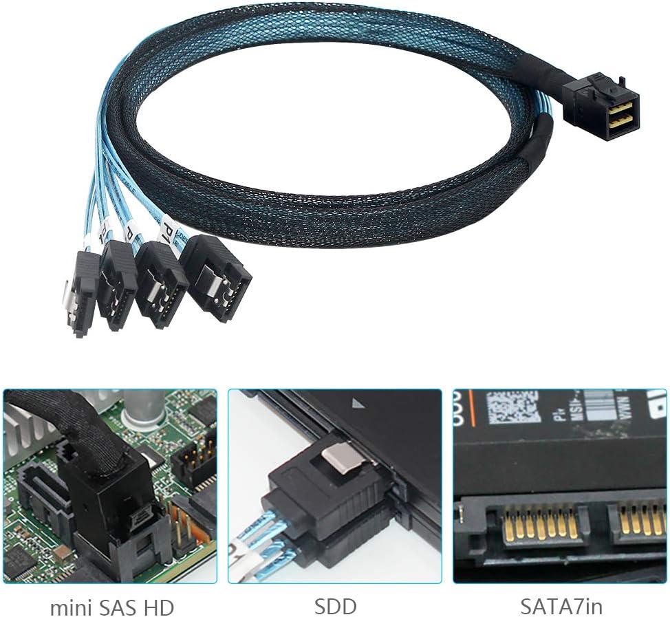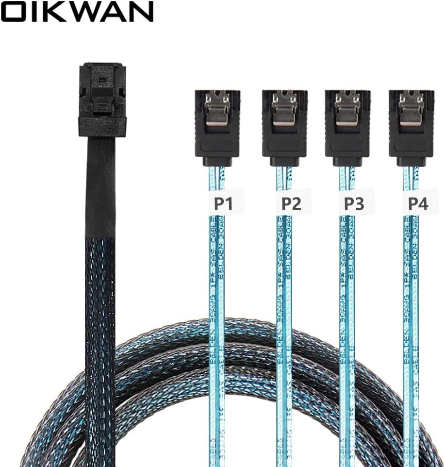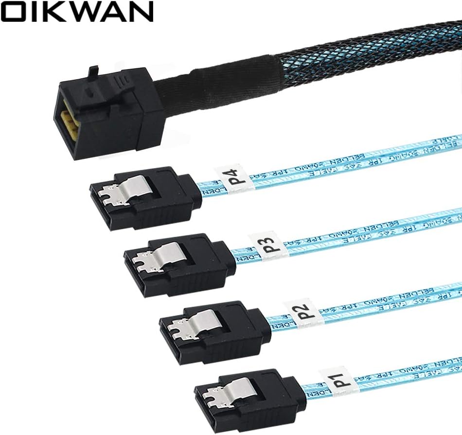 OIKWAN Internal HD Mini-SAS 8643 to 4 x SATA Cable is an essential component for migrating from a 6 Gbps to 12 Gbps storage area network. It provides multiple lanes of high speed SATA traffic through a single cable in a sturdy but flexible cable that is built to withstand 24/7 use.