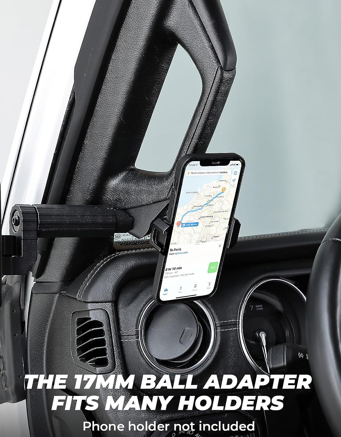 • 🚗【Multi-function Design】Adopt 17mm universal aluminum alloy ball adapter design, which can support the installation of most mobile phone holders.This installation position of Gladiator mirrors is more stable,enjoy the doorless off-road journey without traffic violations!