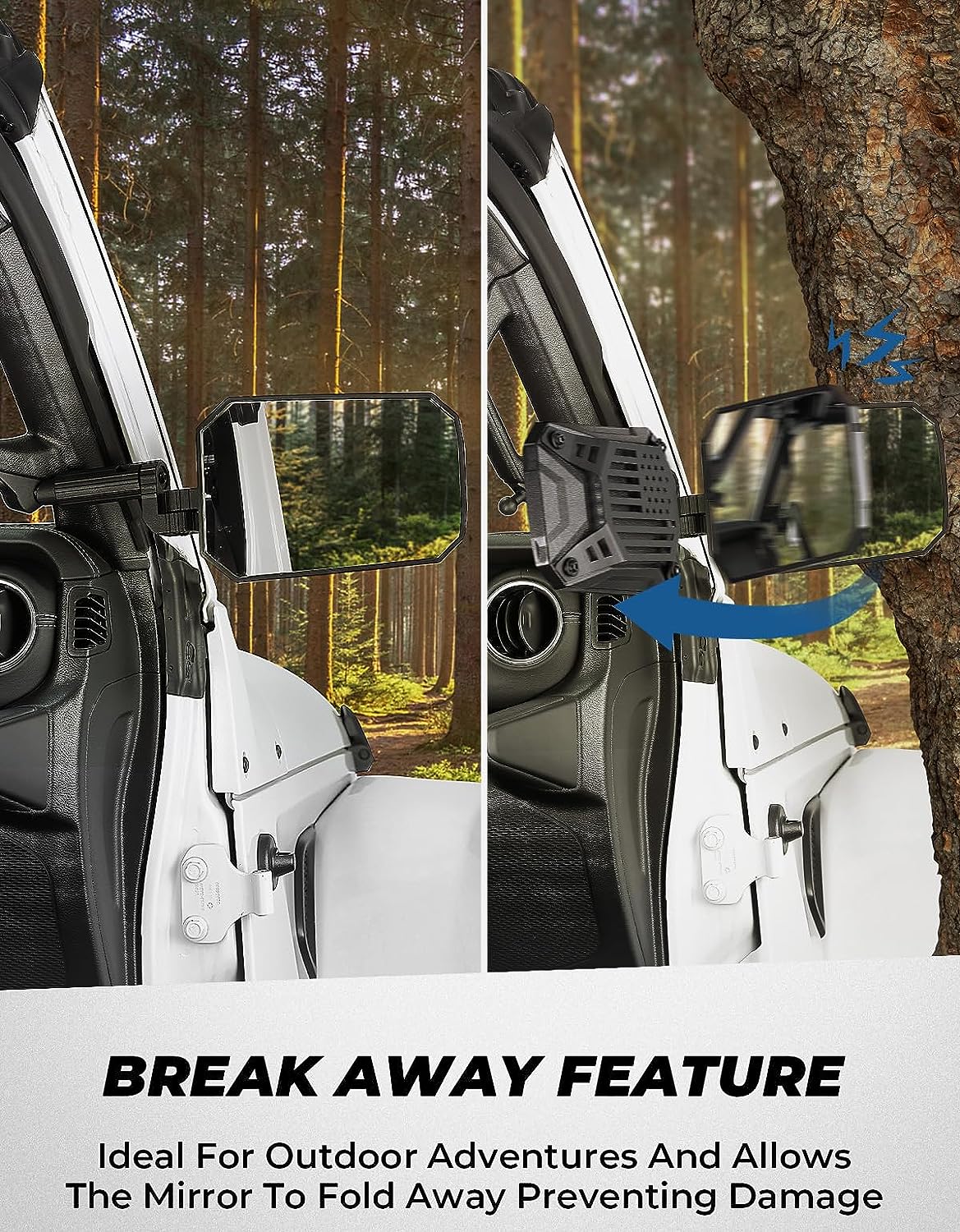• 🚗【Break Away Feature】Combining the maximum adjustability and a "break away" design,when the JL mirrors hits a tree or other obstacle, it adjusts to avoid cracking.Ideal for outdoor adventures and preventing damage.