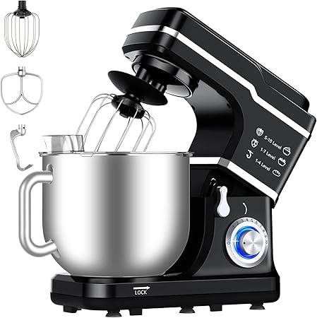 Garvee 7.5QT Stand Food Mixer, 10-Speed Tilt Head 3-IN-1 Kitchen Electric Mixer with Stainless Steel Bowl, Egg Whisk, Dough Hook, Beater, Splash Guard, Compact Dough Mixer for Home Cooks, Black