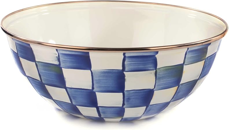 MACKENZIE-CHILDS Enamel Everyday Bowl, Serving Bowl for Entertaining, Medium, Blue-and-White Royal Check