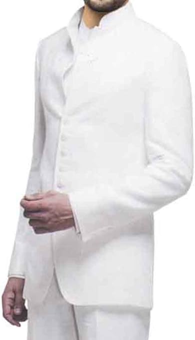Mens White Indian Nehru Collar Suit 2 Pc Designer Front Open 7 Button NS113