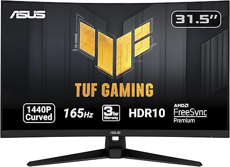 ASUS TUF Gaming 32" 1440P HDR Curved Monitor (VG32VQ1B) - QHD (2560 x 1440), 165Hz (Supports 144Hz), 1ms, Extreme Low Motion Blur, Speaker, FreeSync Premium, VESA Mountable, DisplayPort, HDMI, BLACK