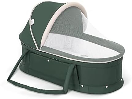 Holy Cat Travel Bassinet Portable Bassinet-Folding Baby Bassinet iin Bed Mini Travel Crib Infant Travel Bed with Mosquito Net and Canopy Lightweight Washable Foldable-GREEN