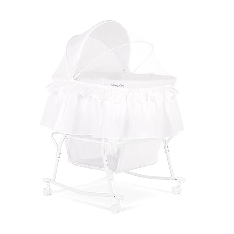 Lacy Portable 2-in-1 Bassinet & Cradle in White, Lightweight Baby Bassinet with Storage Basket, Adjustable and Removable Canopy
