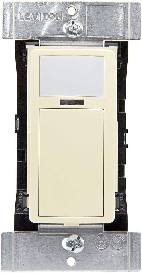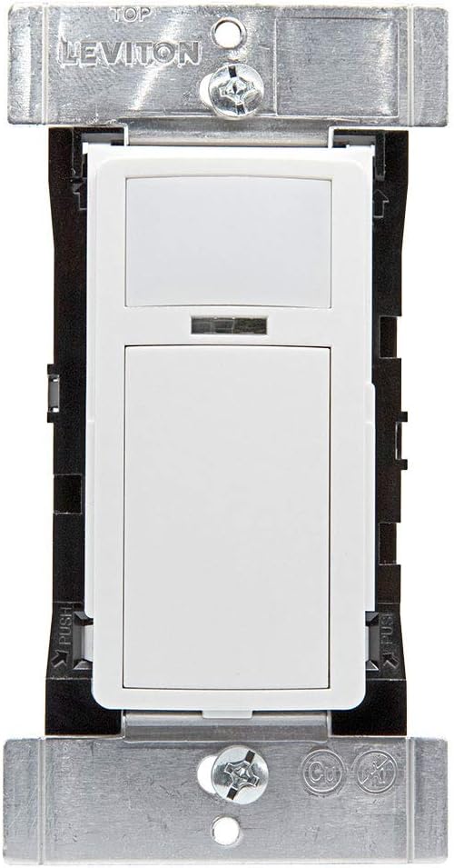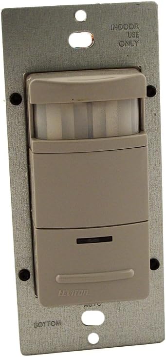 Leviton's ODS15 - ID Decora (R) wall switch passive infrared ( PIR) occupancy sensor is used to provide automatic lighting control for energy savings and convenience in a variety of commercial applications, including:- small offices - conference rooms - storage areas- restrooms - class rooms - lounges the ODS0D- ID provides automatic switching of two separate lamps and low-voltage lighting with electronic and magnetic ballasts. The unit also features a manual override switch that can be used to keep lights off while an area is occupied, which may be desired in conference rooms and other areas during slide or film presentations. The unit installs in place of a single-pole wall switch and fits in a standard wall box. The unit requires a ground connection. Decora passive infrared wall switch occupancy sensor, 180-degree, 2100 sq. ft. coverage, self-adjusting, commercial grade - white. Wall Plate not included with Occupancy Sensors. Decora is a registered trademark of Leviton Mfg. Co., Inc.