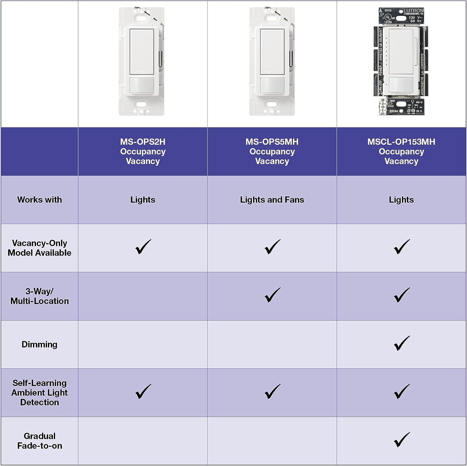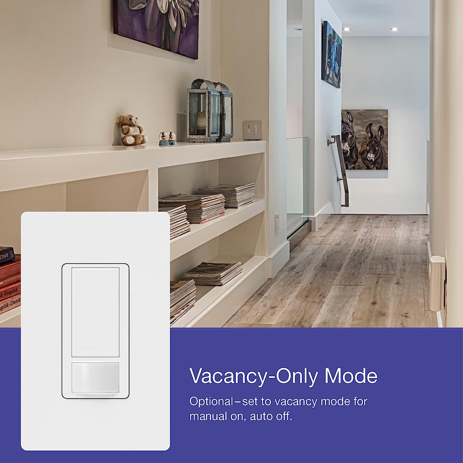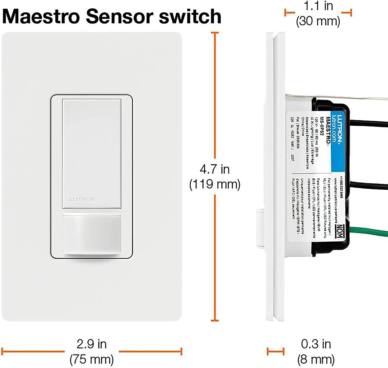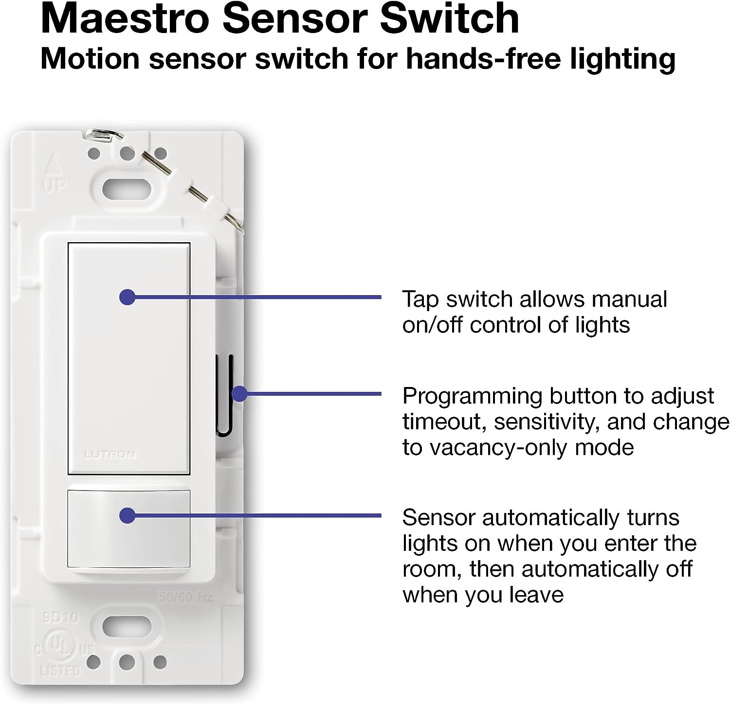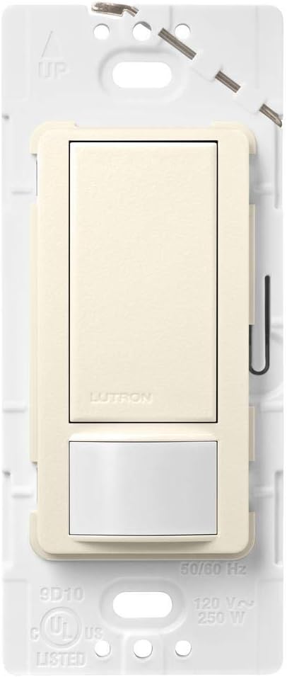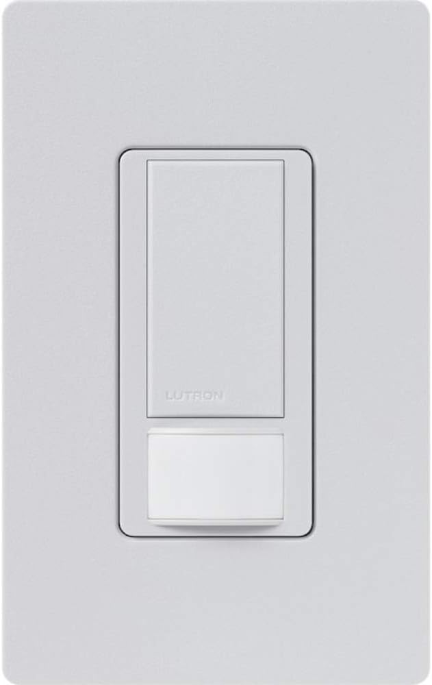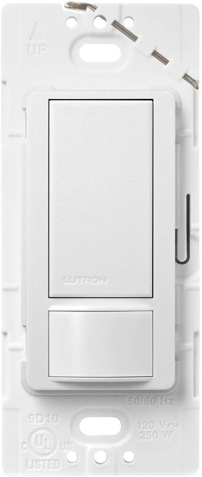 Let Lutron's Maestro Occupancy/Vacancy Motion Sensor Switch turn the lights on and off for you. This sensor is a simple way to save energy and add light automation to any room of your home, turning lights on when you enter the room and off when you exit. It features XCT (cross-correlation) sensing technology to detect fine motion, such as typing at a desk or reading a book, to ensure lights won't turn off inadvertently when you're still in the room. It also learns your preferred natural light level and keeps lights off with smart ambient light detection. Program your lights to turn off 1, 5, 15, or 30 minutes after you leave the room. Alternatively, you can set the motion sensor to vacancy-only mode to only turn off the lights when you leave a room, to meet Title 24 requirements. Great for many locations such as bathrooms, laundry rooms, kitchens, and garages for added convenience and energy savings. This sensor works with any bulb type, including CFL and LED. It matches the entire Maestro product family line (sold separately) to give you a complete and coordinated look in your home. Install using the ground wire if no neutral is available in your home. Coordinating Claro wall plate and accessories sold separately.