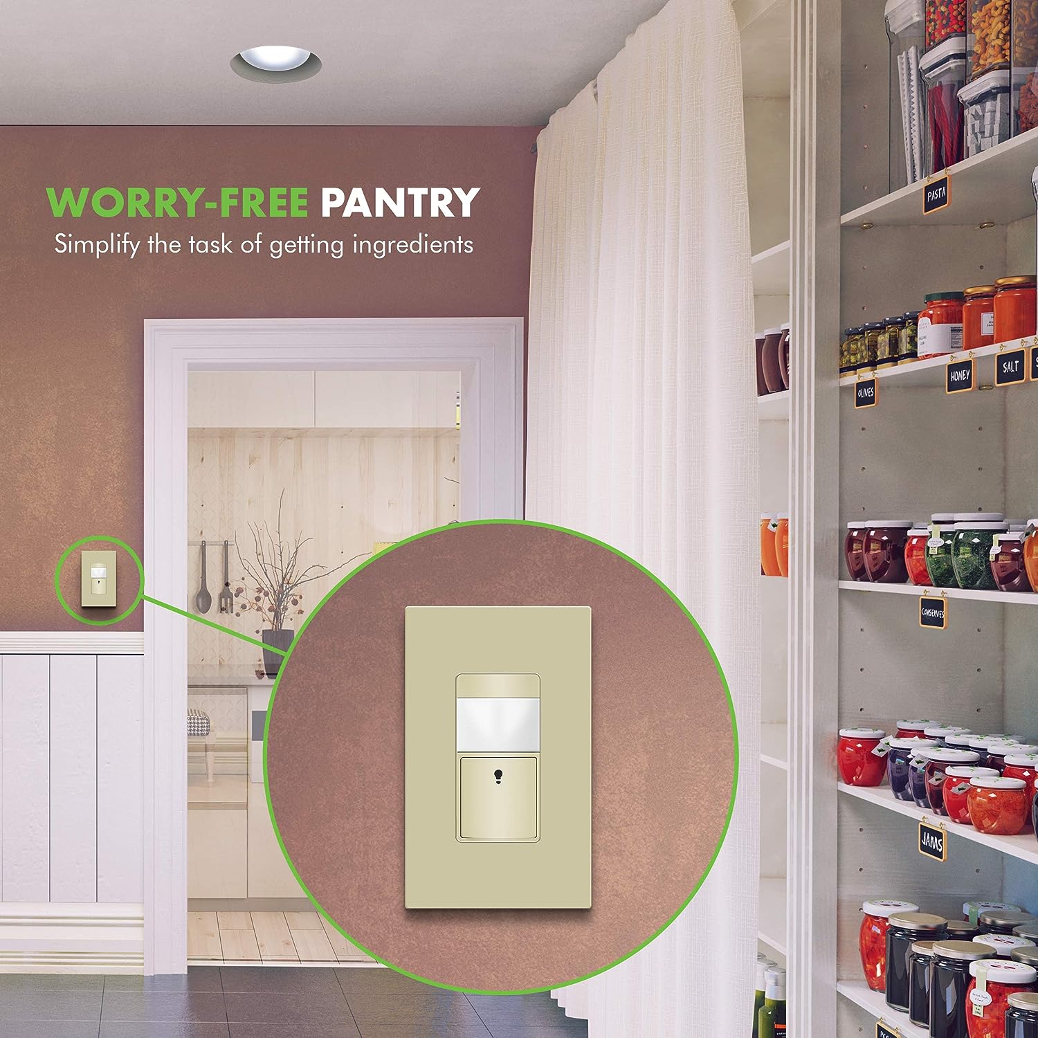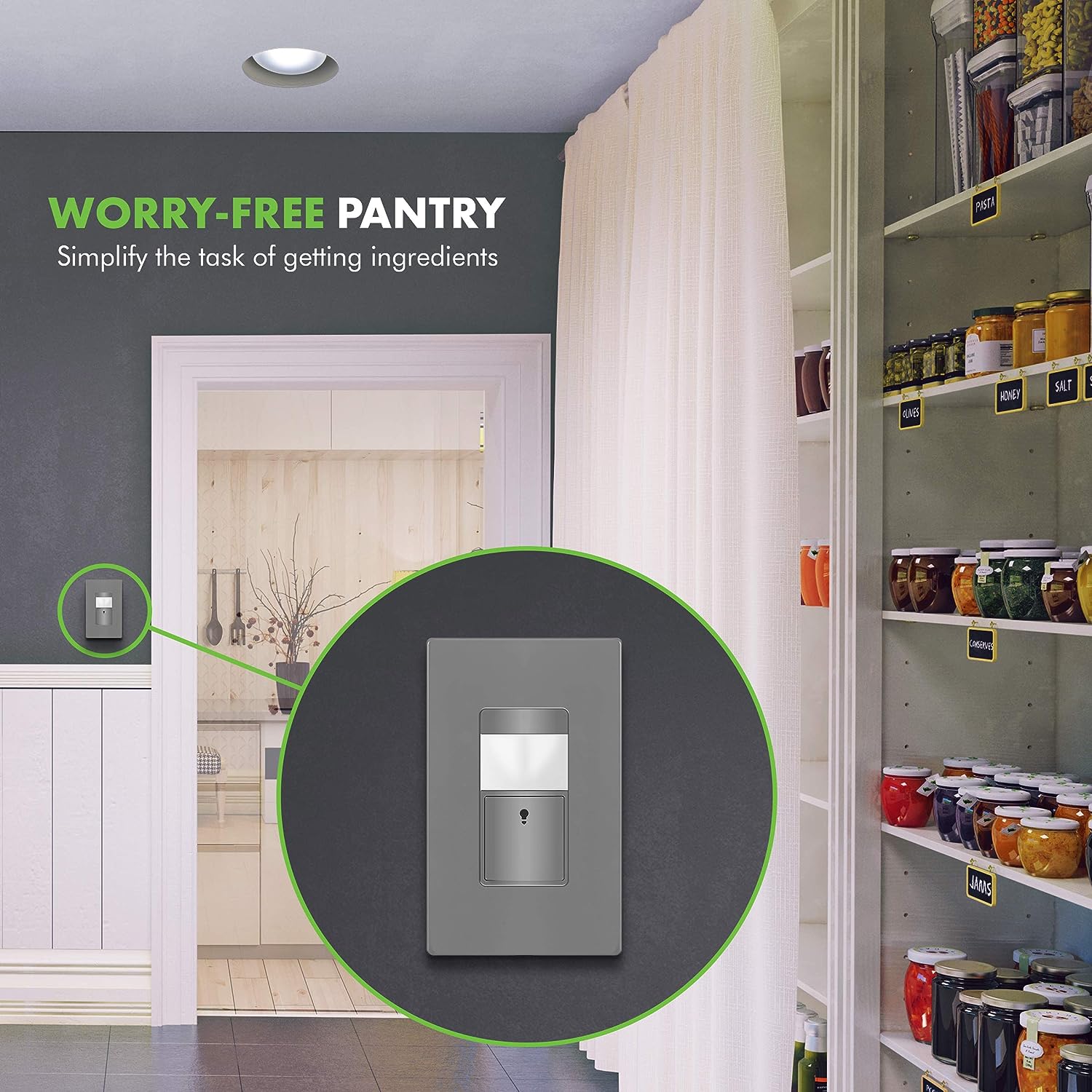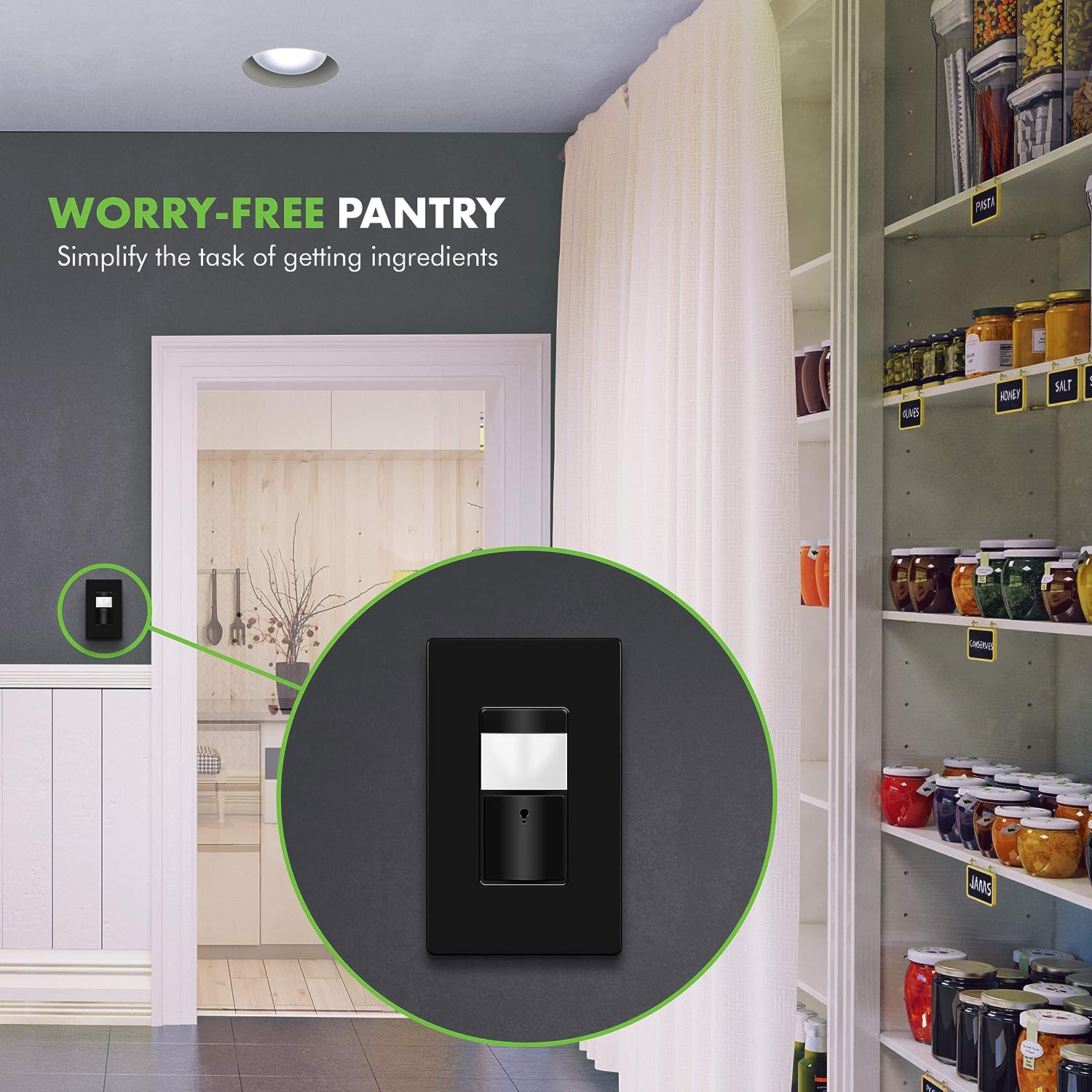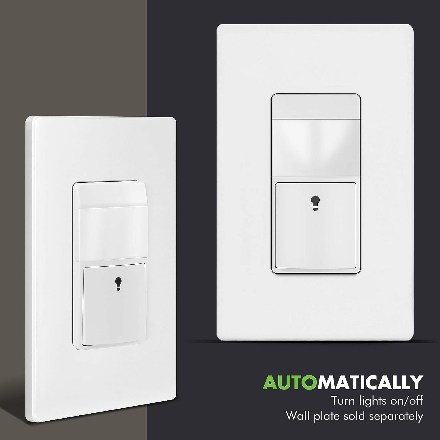 The TOPGREENER TDOS5-JM Motion Sensor Switch automatically turns lights and loads ON and OFF according to the motion detected in the room. An easy replacement for any indoor light switch, the PIR motion sensor automates your lighting to bring your home into the modern age. The programming controls are located under the face cover of the device, and include a sensor range dial, a time delay dial, and a press-button that changes between Occupancy (OCC) and Vacancy (VAC) modes. In occupancy mode, lights are automatically turned ON when you enter a room and automatically turned OFF when the room is vacant. Alternatively, vacancy mode requires the light switch to be turned ON manually, but it will shut OFF automatically after the room is vacant for a preselected amount of time. This time delay can be easily adjusted from 15 seconds (TEST) to 30 minutes. In addition to occupancy and vacancy modes, this auto light switch can also control the lighting intelligently with CDS technology. The sensor switch is made with built-in ambient light level sensors that will prevent the lights from turning ON when there is enough natural light in the space already. The technology is also capable of learning and adapting to user behavior. If the light switch is activated automatically and the user turns it OFF within 15 seconds, the sensor will remember the light level at which the switch was turned OFF and prevent it from turning ON at that level again. This motion-sensing wall switch is ideal for rooms that you enter with your hands full, such as a residential entryway, laundry room, garage, kitchen, or pantry. The sensor switch will also help you conserve energy by ensuring the light is never left on by mistake. This PIR sensor switch has a 180° field of view and is best suited for spaces up to 1200 square feet. This product is UL listed and includes a one-year warranty. This pack includes two motion sensor wall switches in the white color option.