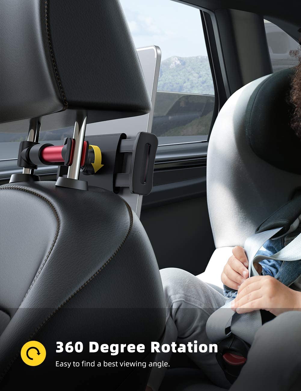 • 【360°Rotatable & Easy Installation】 The mount is 360 degree rotatable, allows you to adjust your iPad to any best viewing angle. Just press the headrest mount between back seat.