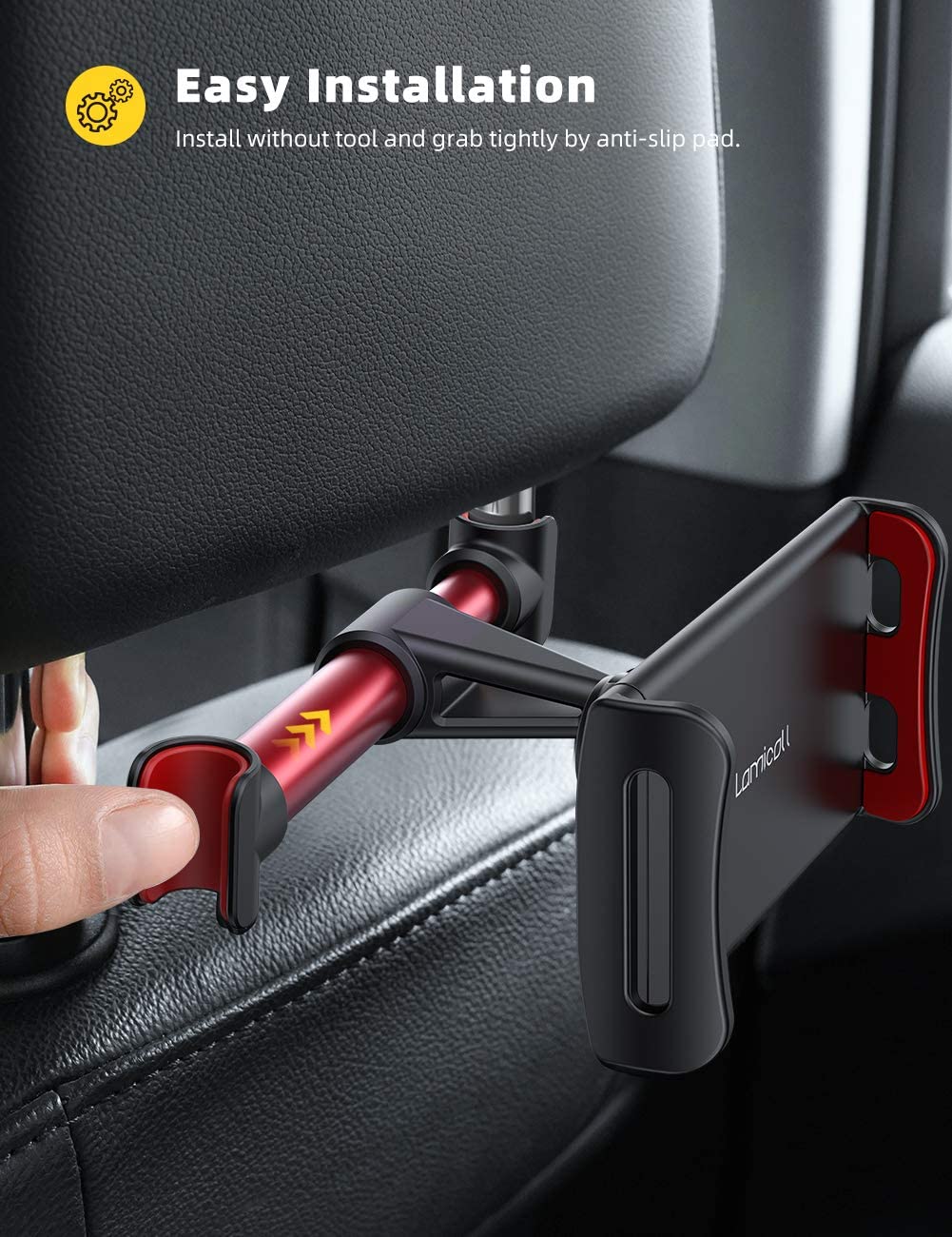 Lamicall Car Headrest Mount, Tablet Headrest Holder - Stand Cradle Compatible with Devices Such as iPad Pro Air Mini, Galaxy Tabs, Other 4.7-10.5" Cellphones and Tablets - Black