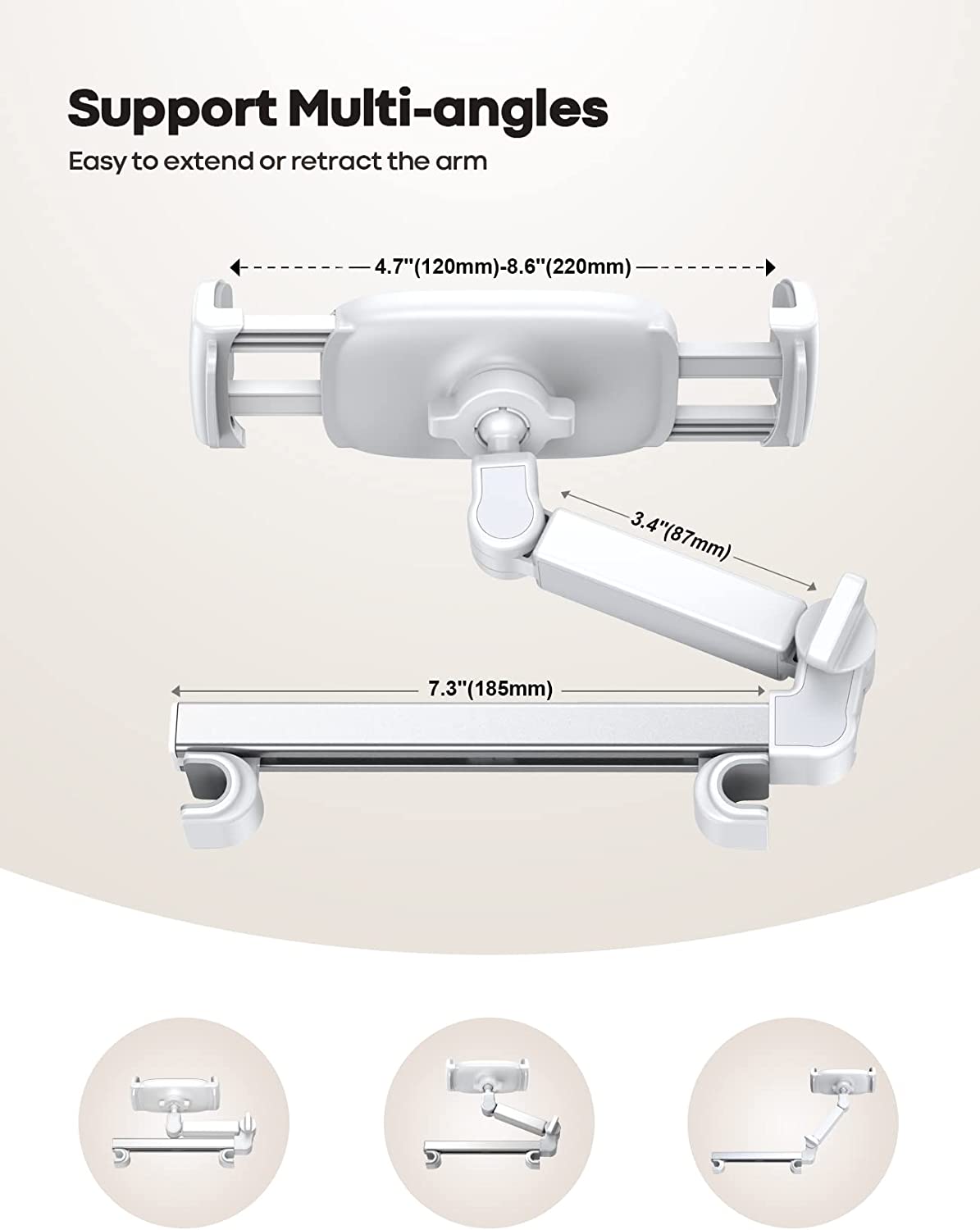 • 【 Devices Compatibility】The universal headrest tablet mount is suitable for 4.7 - 11" devices, such as 2022/ 2021 iPad Pro 11, 2022 iPad 10.9/ iPad 10th Generation, iPad Air 5/ 4, iPad Pro 10.5/ 9.7, iPad Mini 6/ 5, Galaxy Tab S8/ S7, Kindle, Fire HD, iPhone 14 Pro Max, 13, 12, 11, Xs, other smartphones and tablets. ❗The max thickness the clamp can fit is 0.67" ( 17mm). ❗4.7 - 11" refers to the diagonal length of the tablet screen, the suitable width of screen is 5.5 - 8.6".