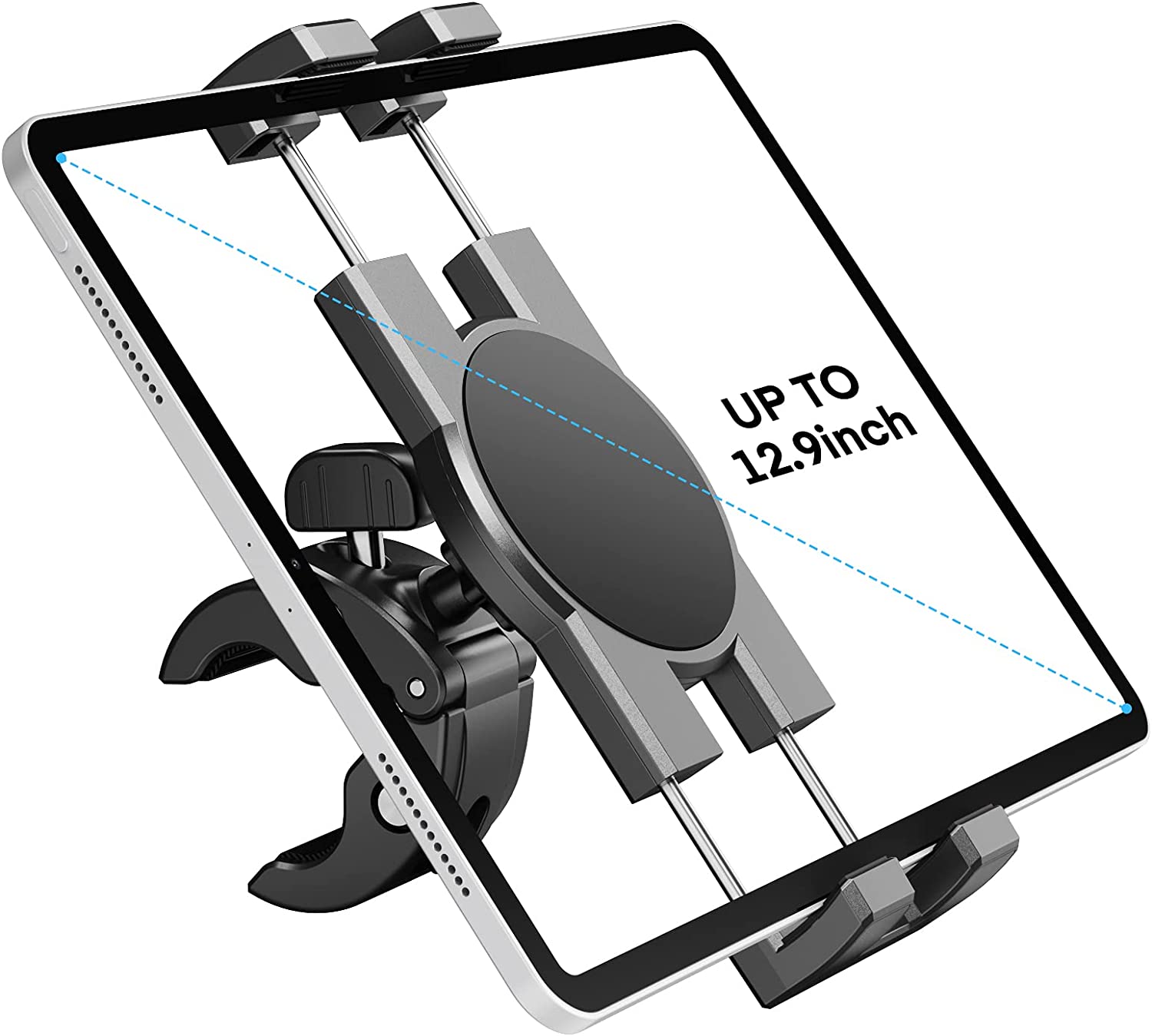 • 【Easy to Mount & Position】KDD iPad holder bike handlebar mount can be easily and securely clamped onto any tubular pole in your workout area (⌀0.55"-1.33" / 14-34mm), not only work well with spin bike, treadmill, elliptical, stationary bicycle or other fitness equipment with handlebar for indoor exercising; but also work well with microphone music stand, tube tripod stand, stroller, shopping cart. It only takes a few seconds to install.