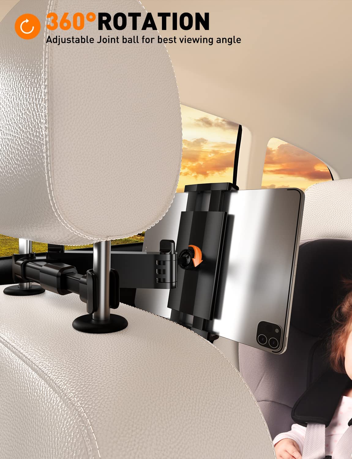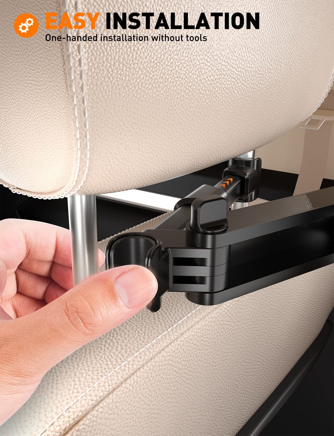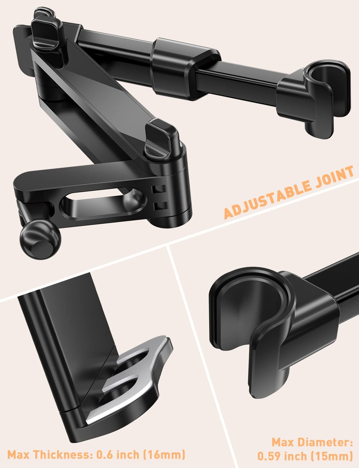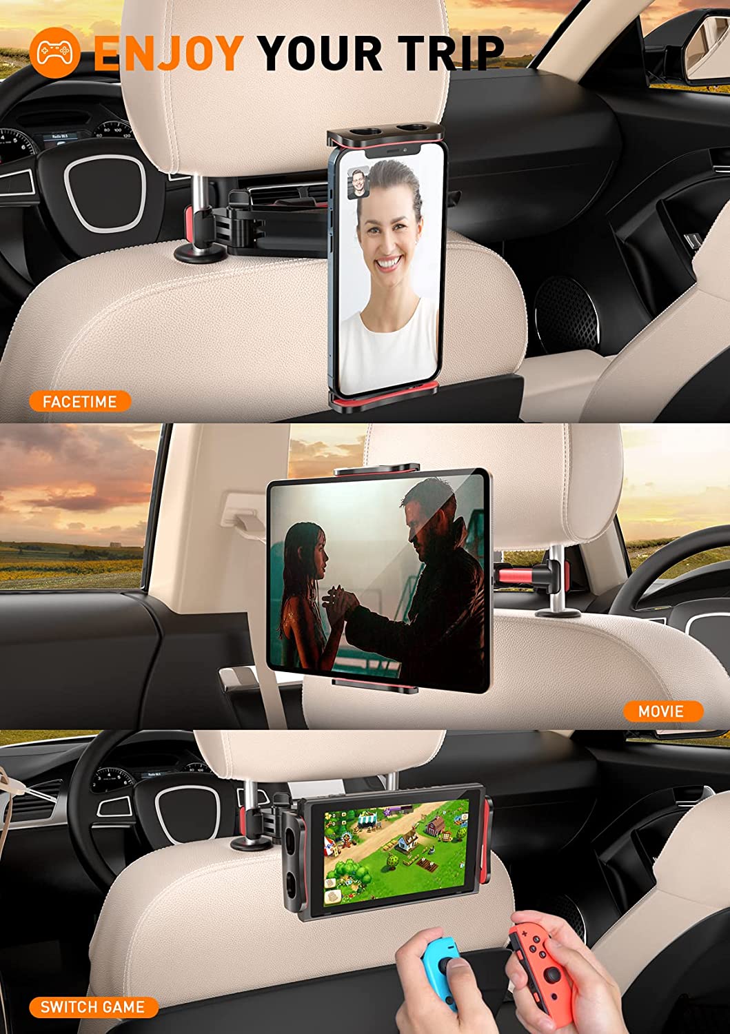 Tryone Car Headrest Tablet Mount Holder Stretchable Backseat Tablets Stand for Kids Compatible with iPad Air Mini/Cell Phone/Galaxy Tab/Kindle Fire Hd/Switch Lite or Other 4.7-10.5" Device