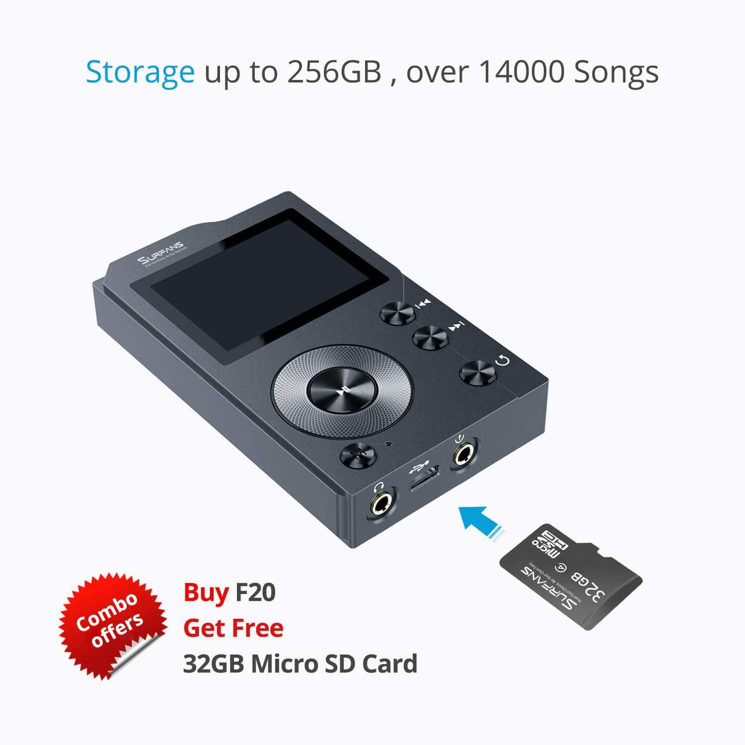 Surfans F20 HiFi MP3 Player with Bluetooth, Lossless DSD High Resolution Digital Audio Music Player, High-Res Portable Audio Player with 32GB Memory Card, Support up to 256GB