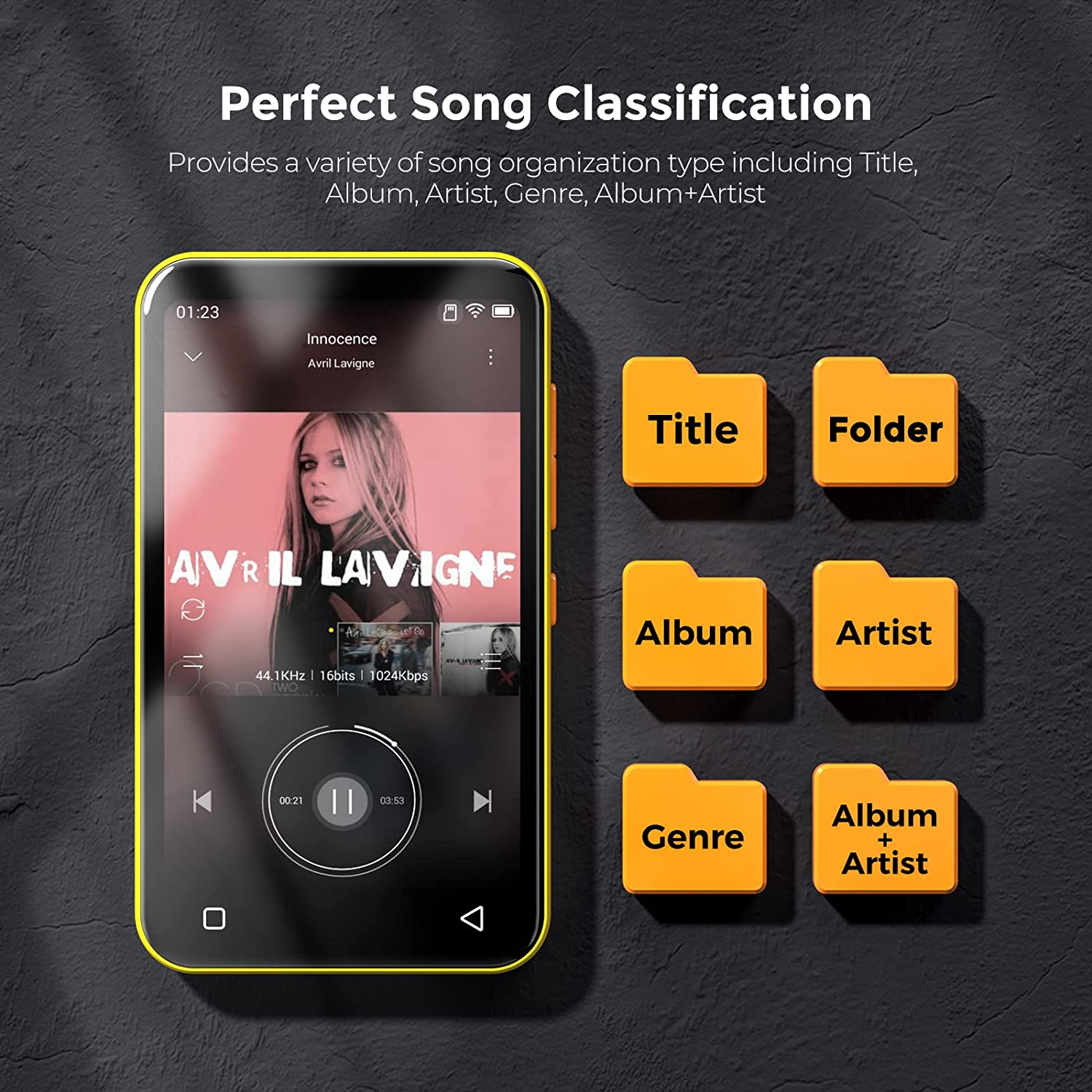• 【JAW-dropping Sound】-- With the digital audio player, you can enjoy high-resolution audio to its fullest, optimized through digital signal processor (DSP) technology. You will feel fuller bass with more depth and impact, boosted voice and instrument clarity, and rich detail. The music player built-in speaker and compatible with most audio formats: MP3, WAV, FLAC, APE, OGG, M4A, AAC, WMA, MP2, etc.
