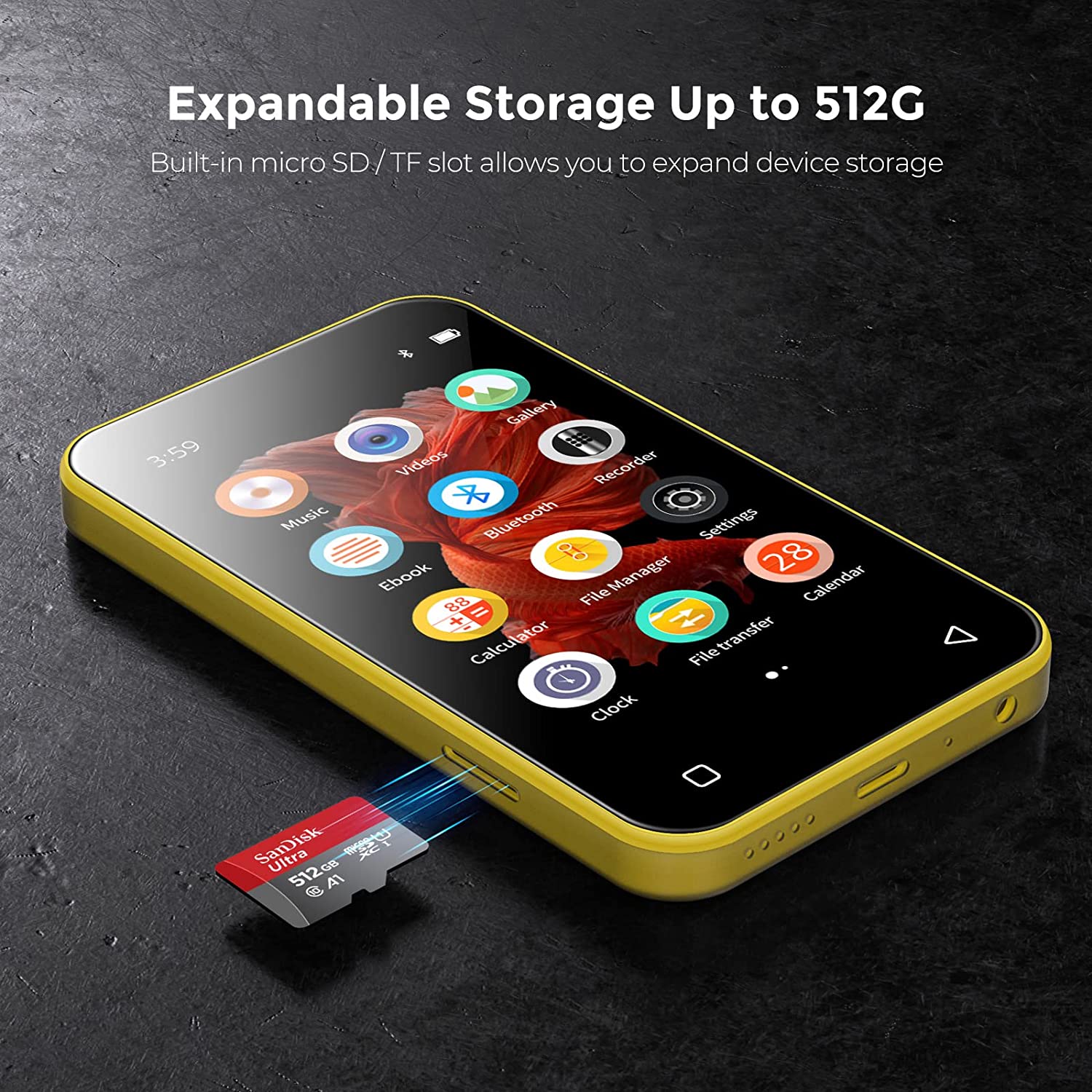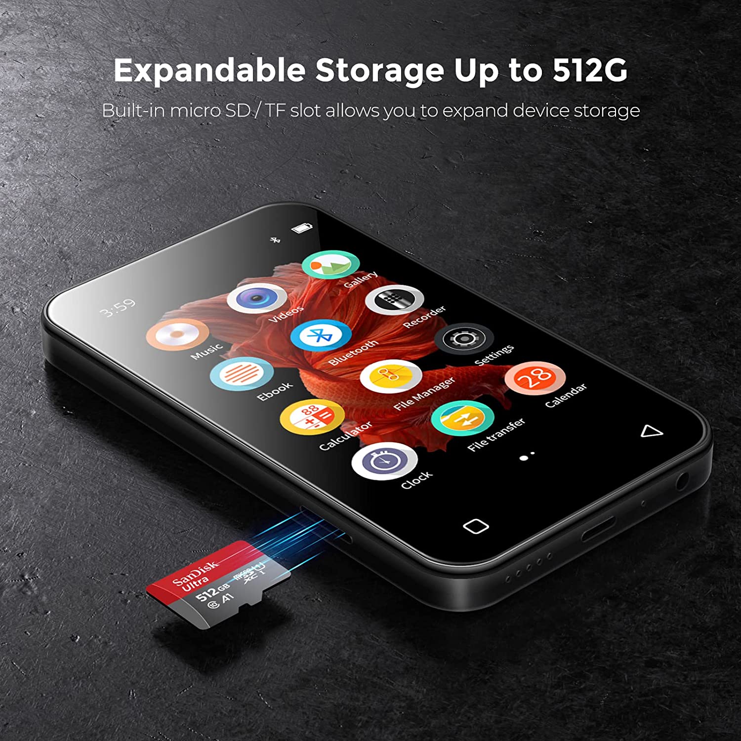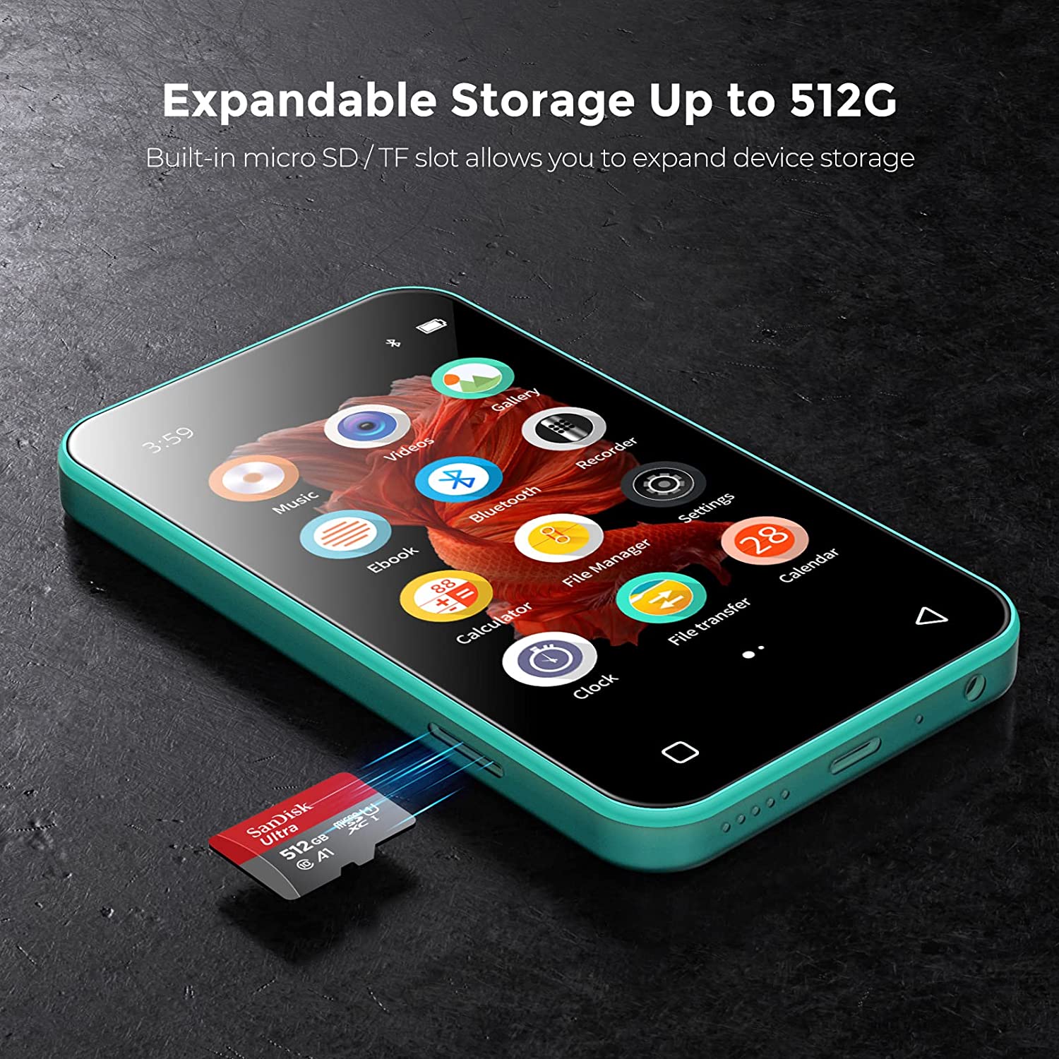 • 【Larger Storage】-- Provide 8GB internal storage and external sd slot which support up to 512GB enables you to download more music, movies and ebooks in the digital mp3 player.