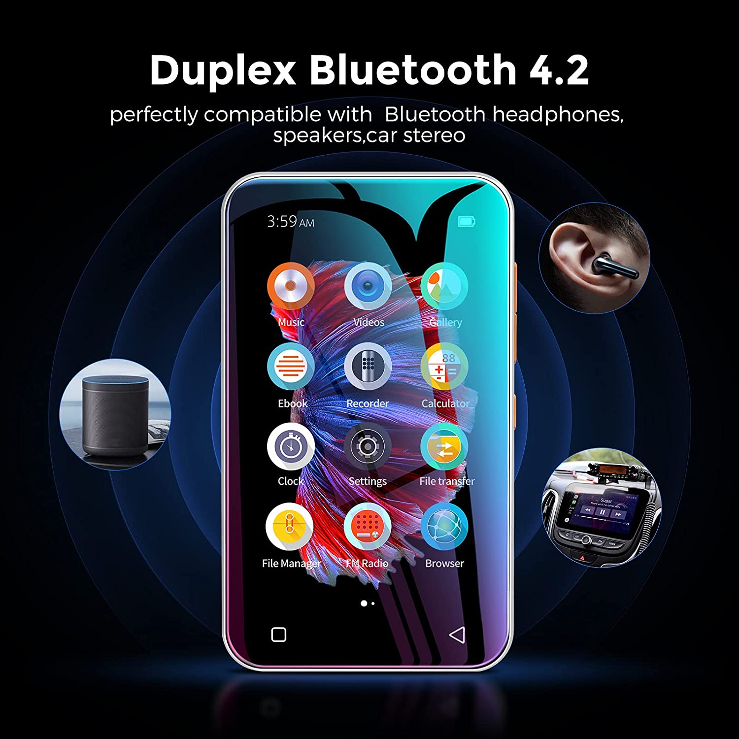 • 【Excellent Audio-visual Experience】-- 4 inches high-definition screen, support 720p, 1080p high-resolution video and HiFi lossless music playing, Q5 player has everything that an excellent Mp4 player should have. It brings you unparalleled Film viewing and music enjoyment.