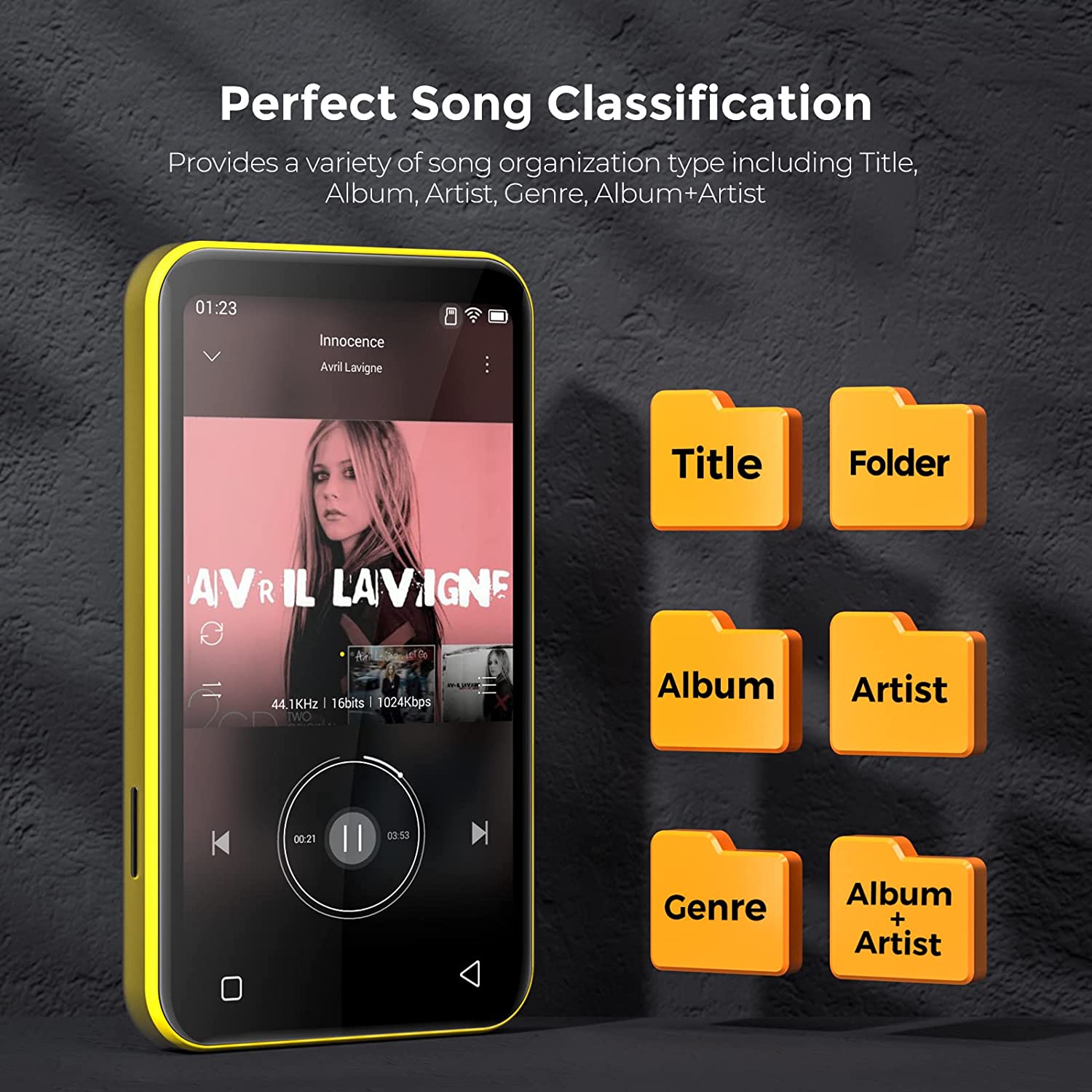 • 【Powerful Music App】 -- Q5 Bluetooth mp3 player can sort your songs by title, folder, albums, artists, genre, album+artist, allow to quickly locate the target songs by searching and add them to the playlists in batches. And offer 4 playing sequences, including shuffle all, Sequential play, Loop single, List loop. Even preset 8 EQ styles.