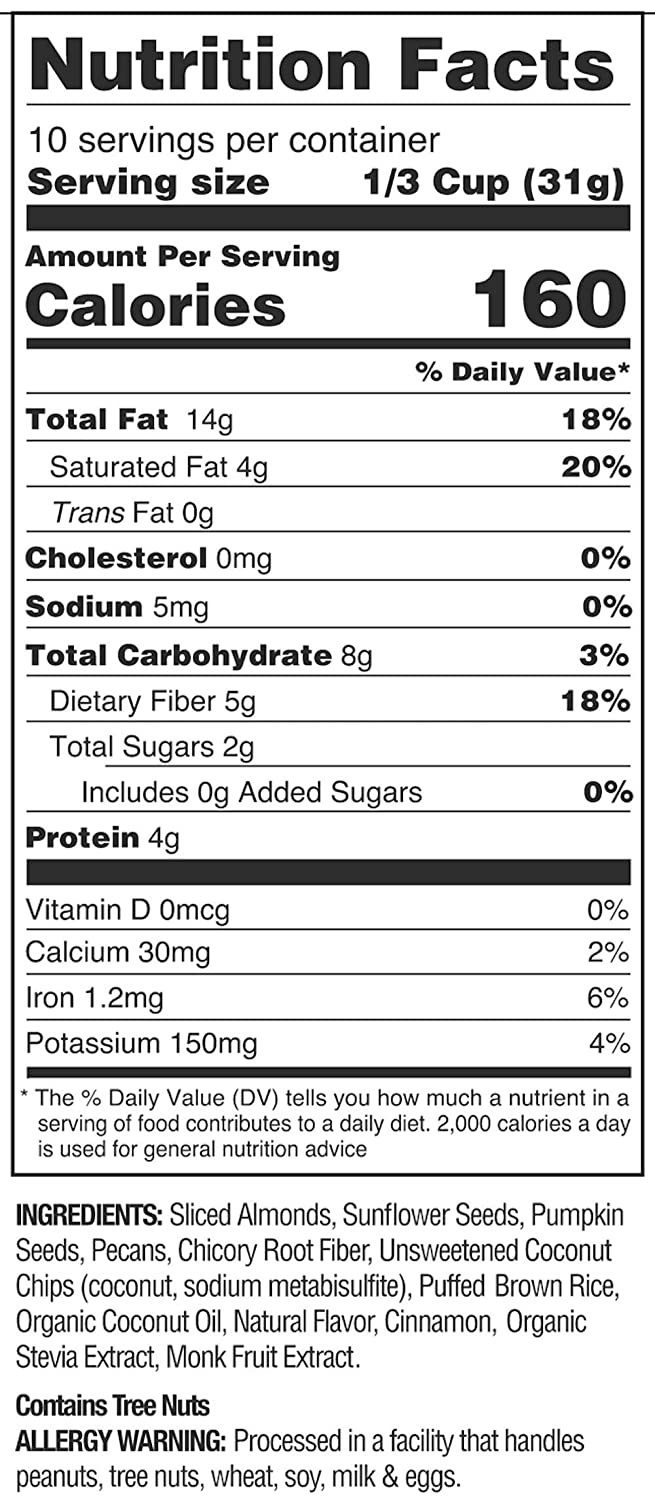 Are you on a low carb, keto or LCHF diet? No problem. The nuts, seeds, brown rice and prebiotic fiber help you maintain ketosis (keep it purple baby).