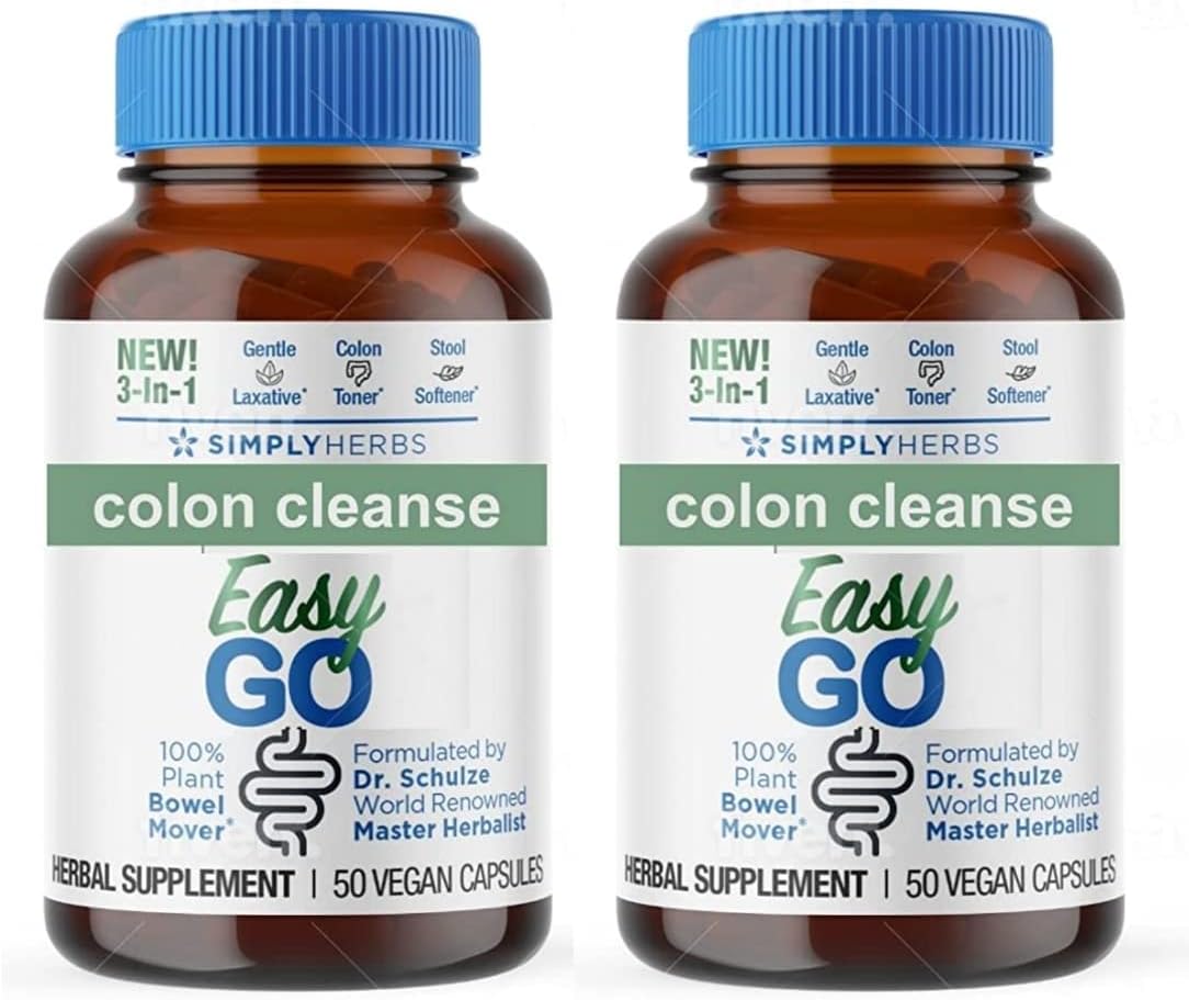 Dr. Schulze's Easy GO Bowel Mover - Formulated Gentle Laxative, Colon Toner & Stool Softener | 100% Plant Natural Bowel Cleanse - Promotes Regular & Complete Bowel Movements - 50 Count Vegan