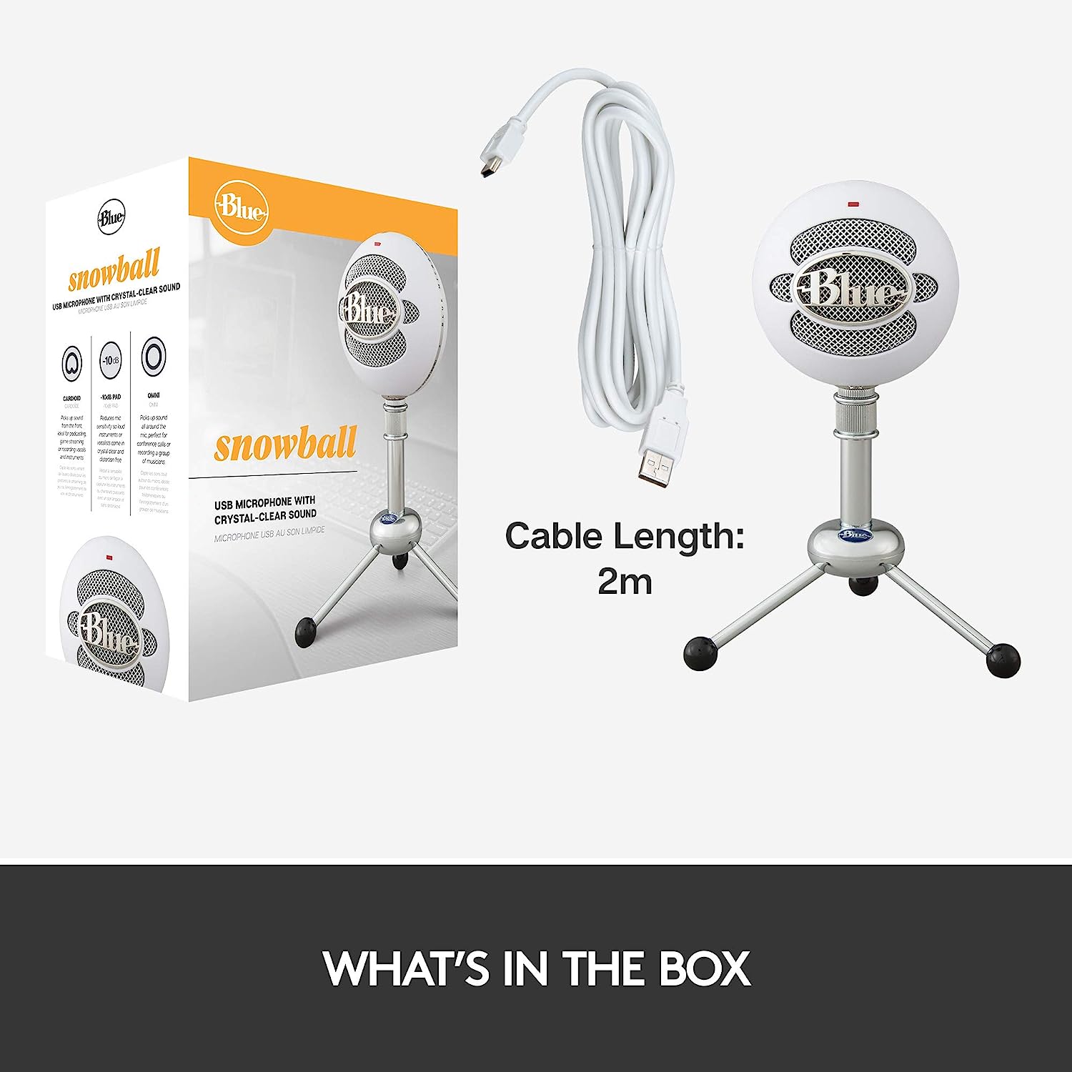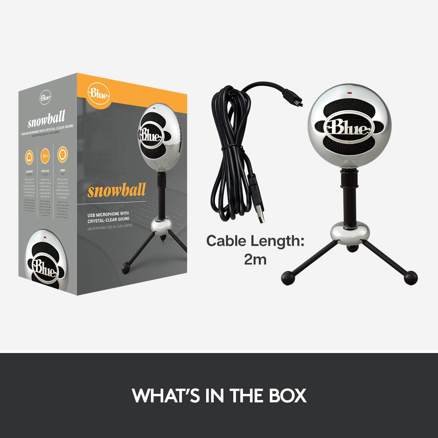 • -10 dB Pad: Maintains professional audio quality and keeps Snowball sounding clean and distortion-free on louder voices and instruments for everything from voiceovers to podcasts to singing