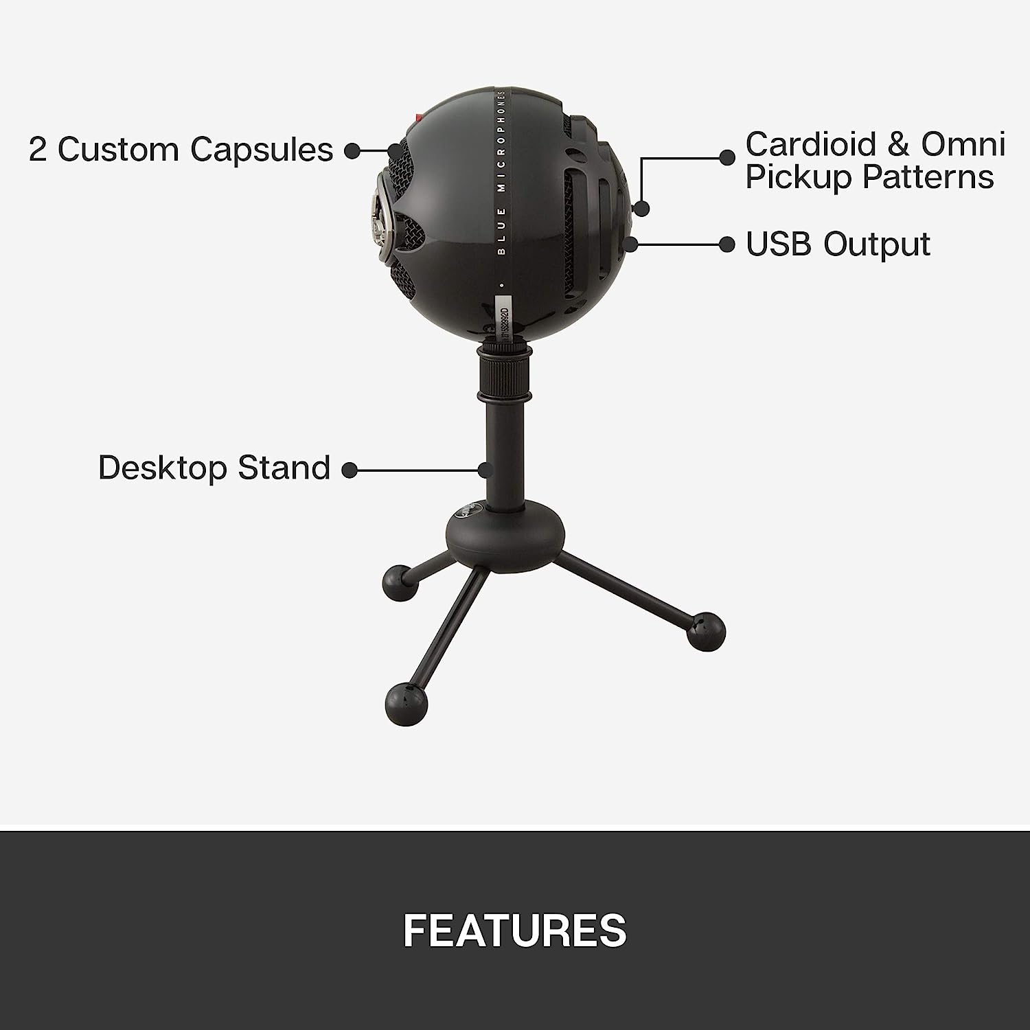 Blue Snowball USB Microphone for PC, Mac, Gaming, Recording, Streaming, Podcasting, Condenser Mic with Cardioid and Omnidirectional Pickup Patterns, Stylish Retro Design – Black