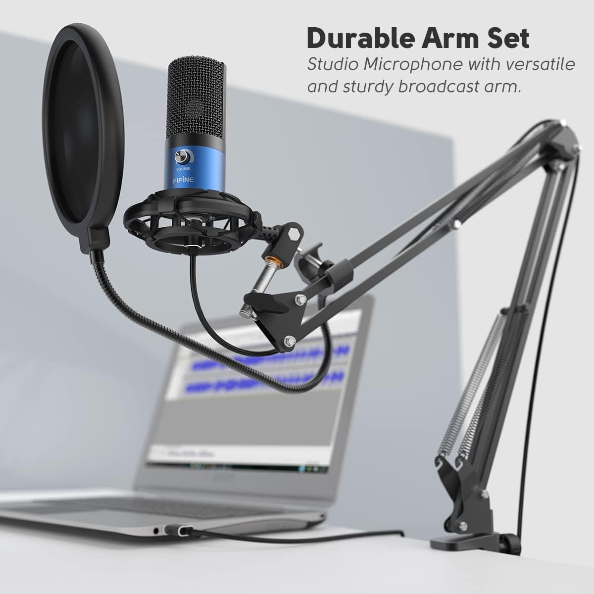 • 🎤【Easy to Attach】The streaming microphone for PC includes adjustable boom studio scissor arm stand that features a heavy-duty combo mount consisting of a sturdy C-clamp and a detachable desktop mount. With 13" fixed horizontal arm and offers a 30" reach. The low-profile, table-hugging design allows on-air talent to perform without facial obstruction to record in podcasting or make dubbing sounds for videos, use voice chat in Discord or online conference on Zoom or Skype.