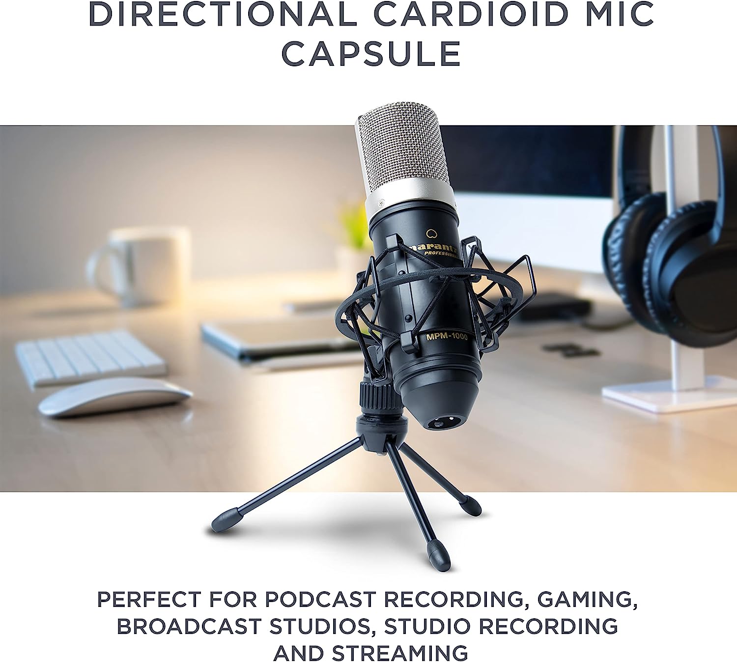 The MPM-1000 is perfect for podcasting applications or capturing high-quality audio from vocalists, melodic instruments, percussion, drum kits and more. At the heart of the MPM-1000 is a 18mm pure-aluminum-plated condenser capsule with a directional cardioid polar pattern. The result? A wide-ranging frequency response (20 20,000Hz), high sensitivity (-38dB ± 2dB (0dB = 1V/Pa @ 1kHz)) and a fast-transient response that combine for premium capture and faithful recreation of every subtle nuance of a sung or narrated vocal part - all with minimal interference from unwanted ambient noise. With the MPM-1000, complicated setups are a thing of the past. Thanks to an included windscreen, a purpose-designed shock-mount for mounting to a traditional mic-stand, a tripod stand, and even an XLR cable, all the core tools for seamless connectivity are thoughtfully included for instant recording and creative potential. When combined with low self-noise (17dBA) and signal-to-noise ratio (77dB) specifications, pristine audio capture is assured every time.