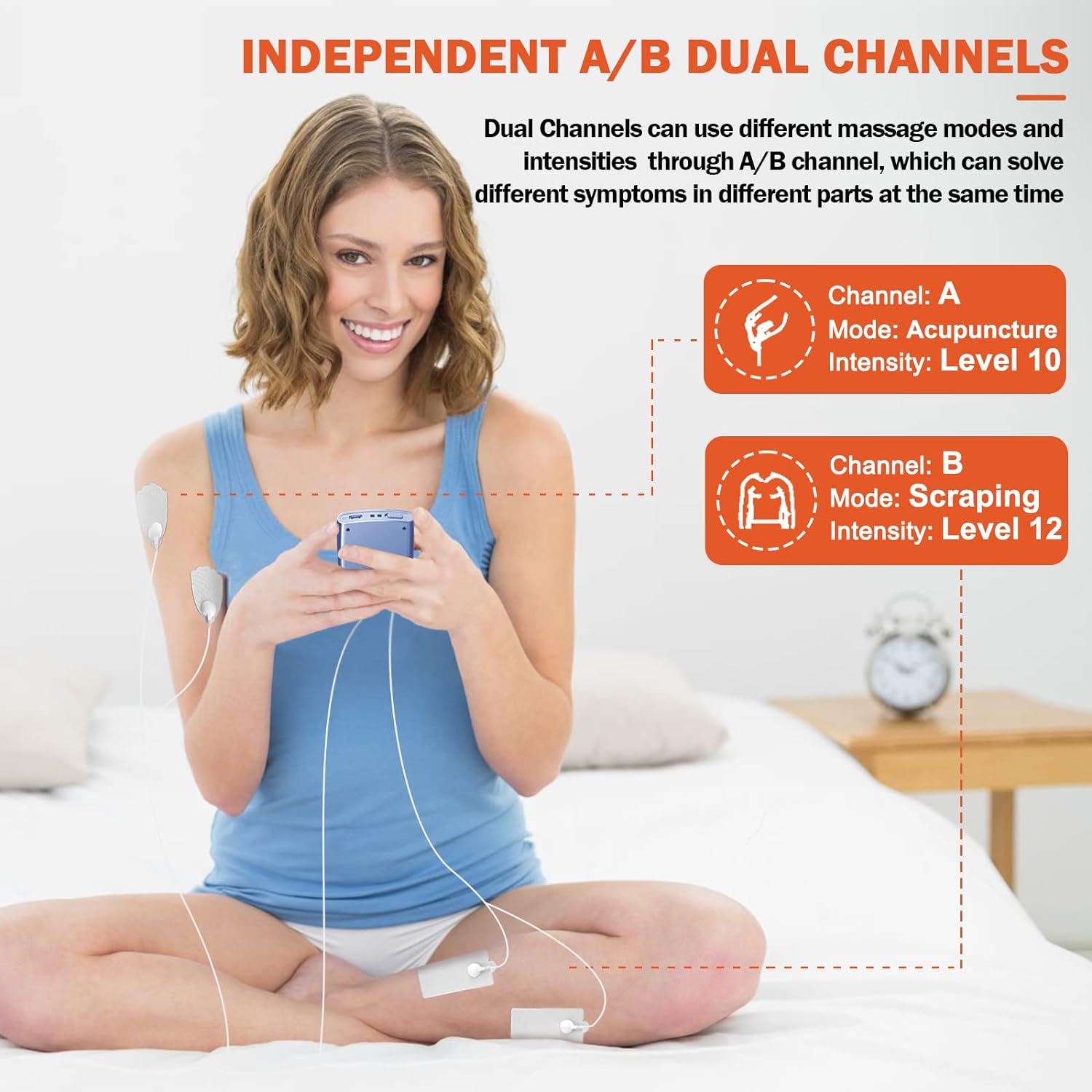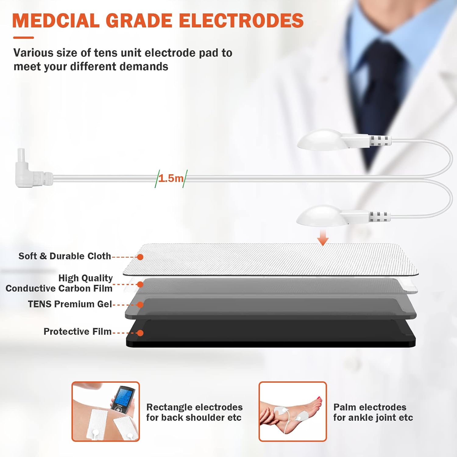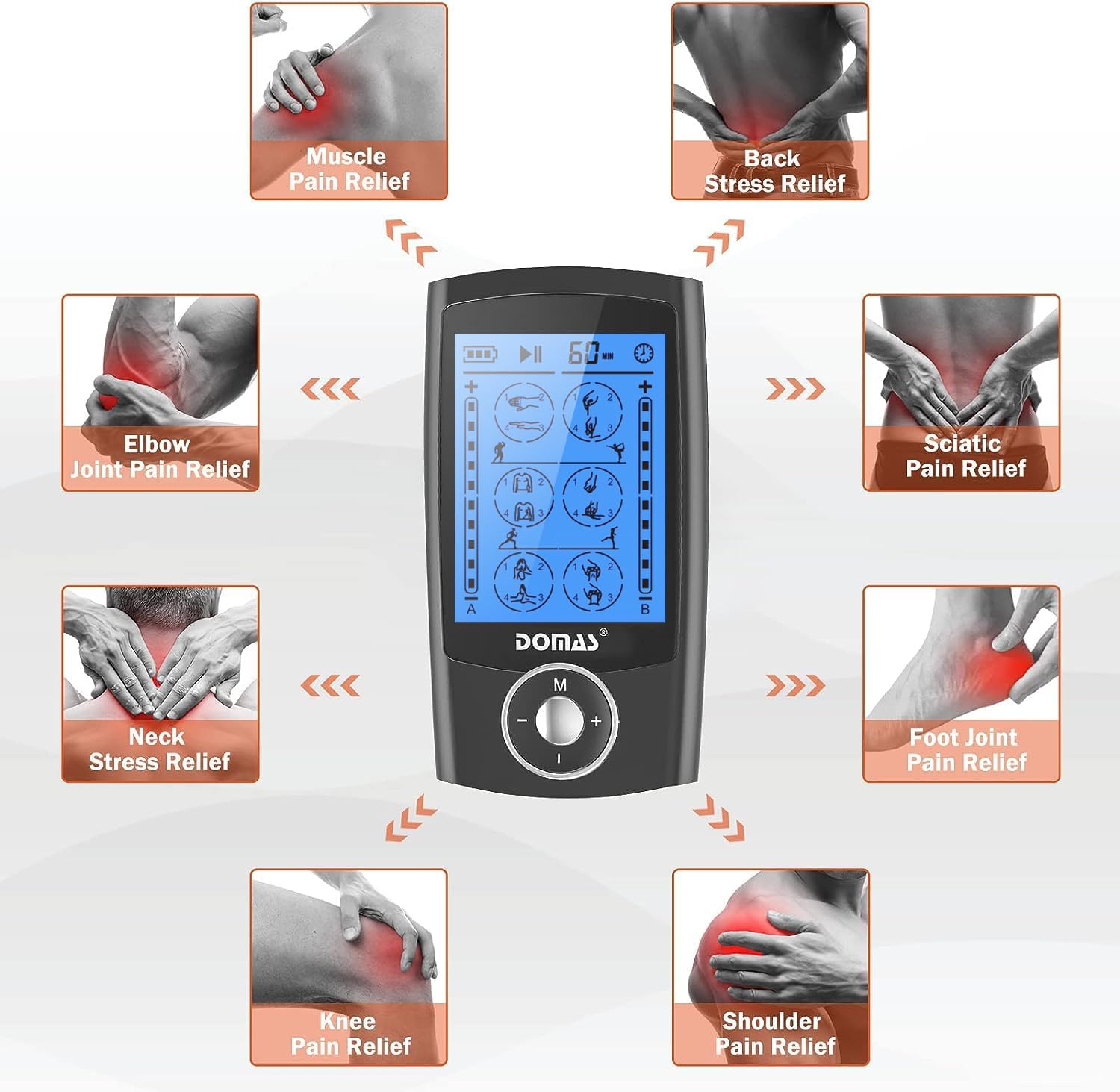 • 【Nerve Stimulator Device with Reusable Electrode Pads】 12 pcs of self adhesive conductive reusable pads included for nerve pain relief ,allows 4 pads to be applied to the two different targeted areas at the same time.