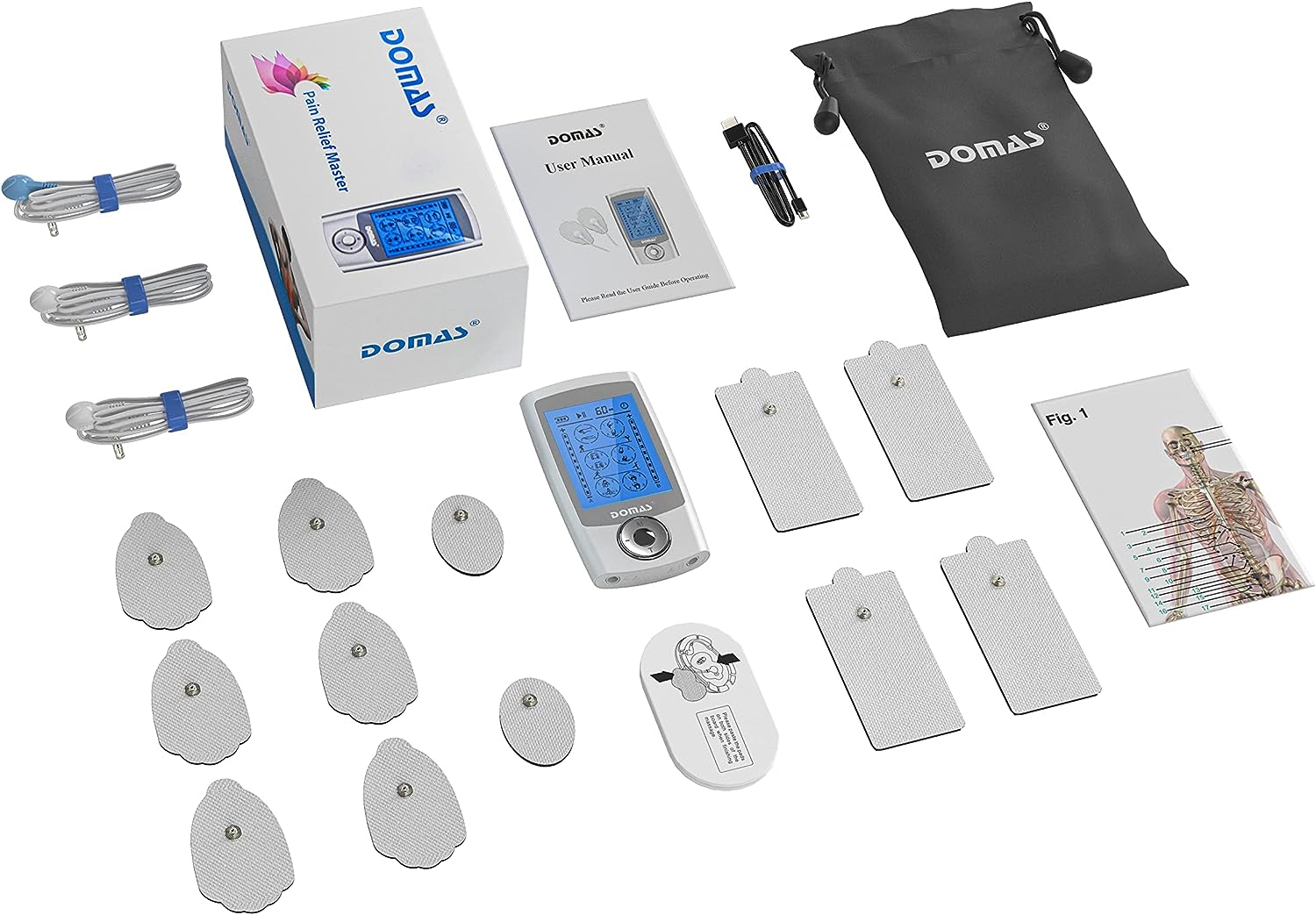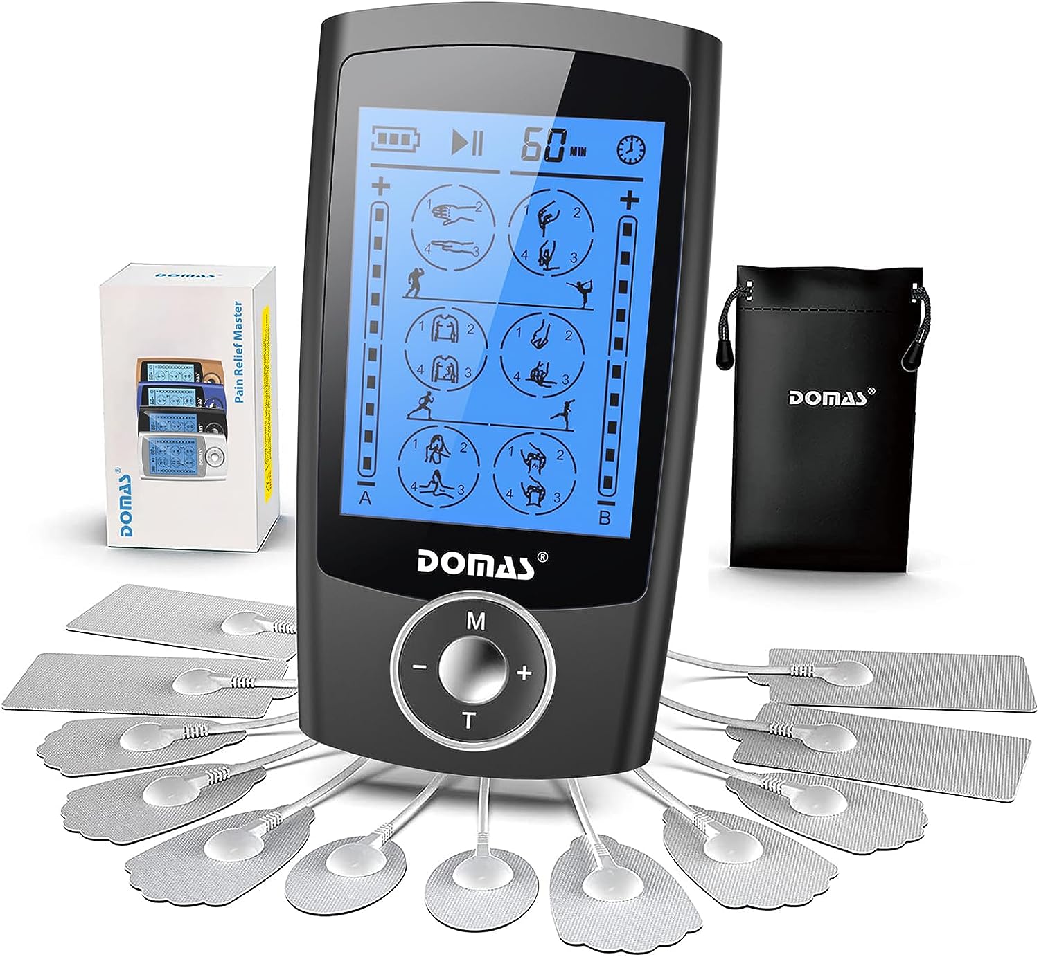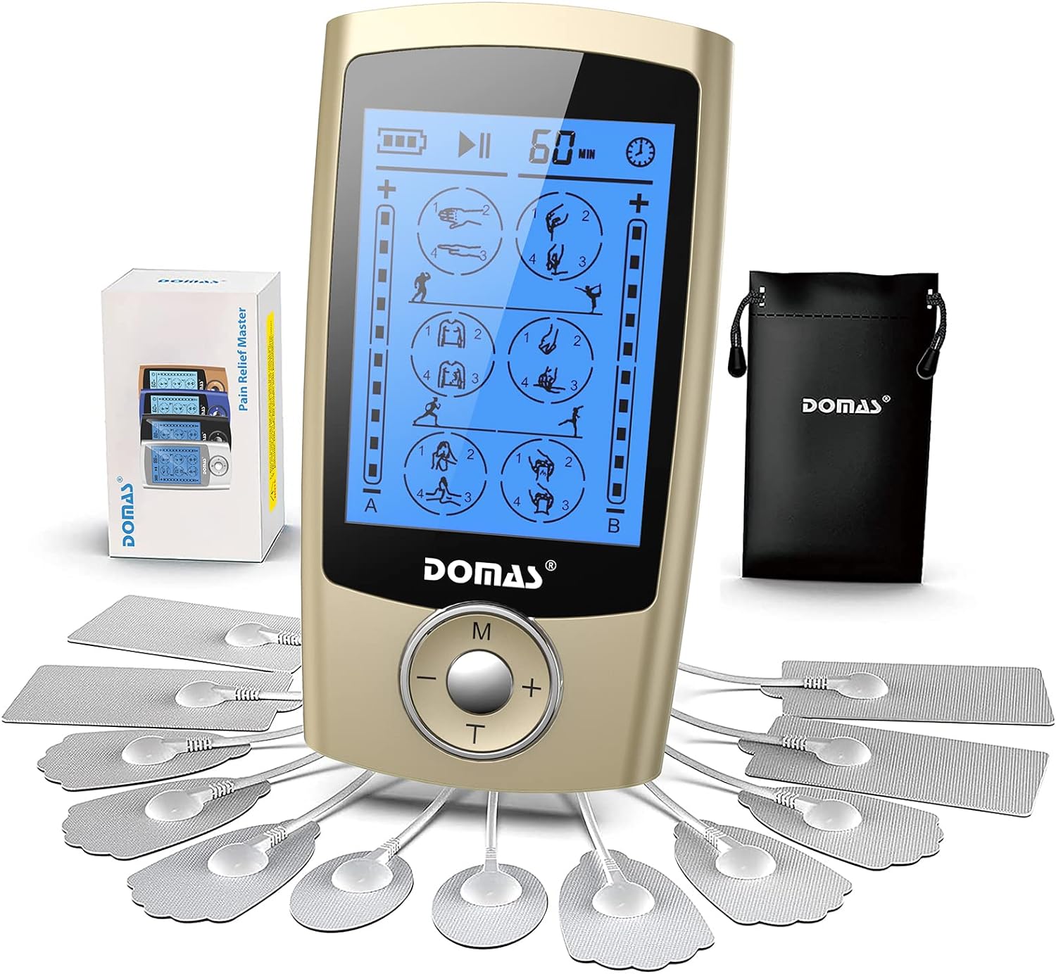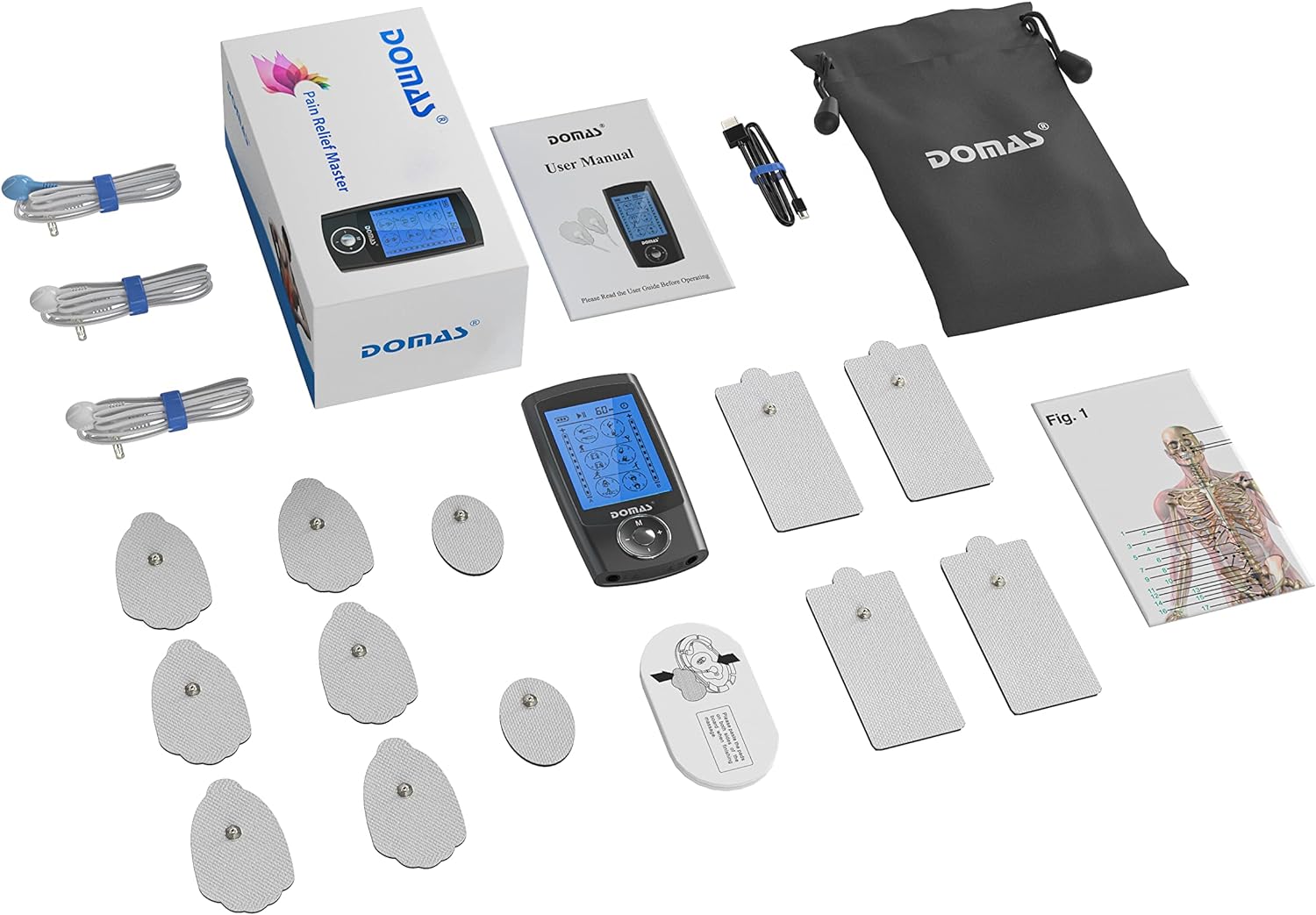 • 【Nerve Stimulator Device with Reusable Electrode Pads】 12 pcs of self adhesive conductive reusable pads included for nerve pain relief ,allows 4 pads to be applied to the two different targeted areas at the same time.