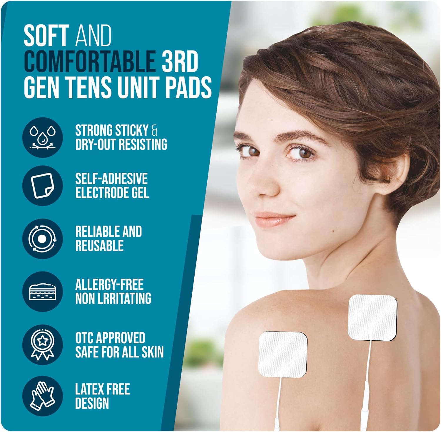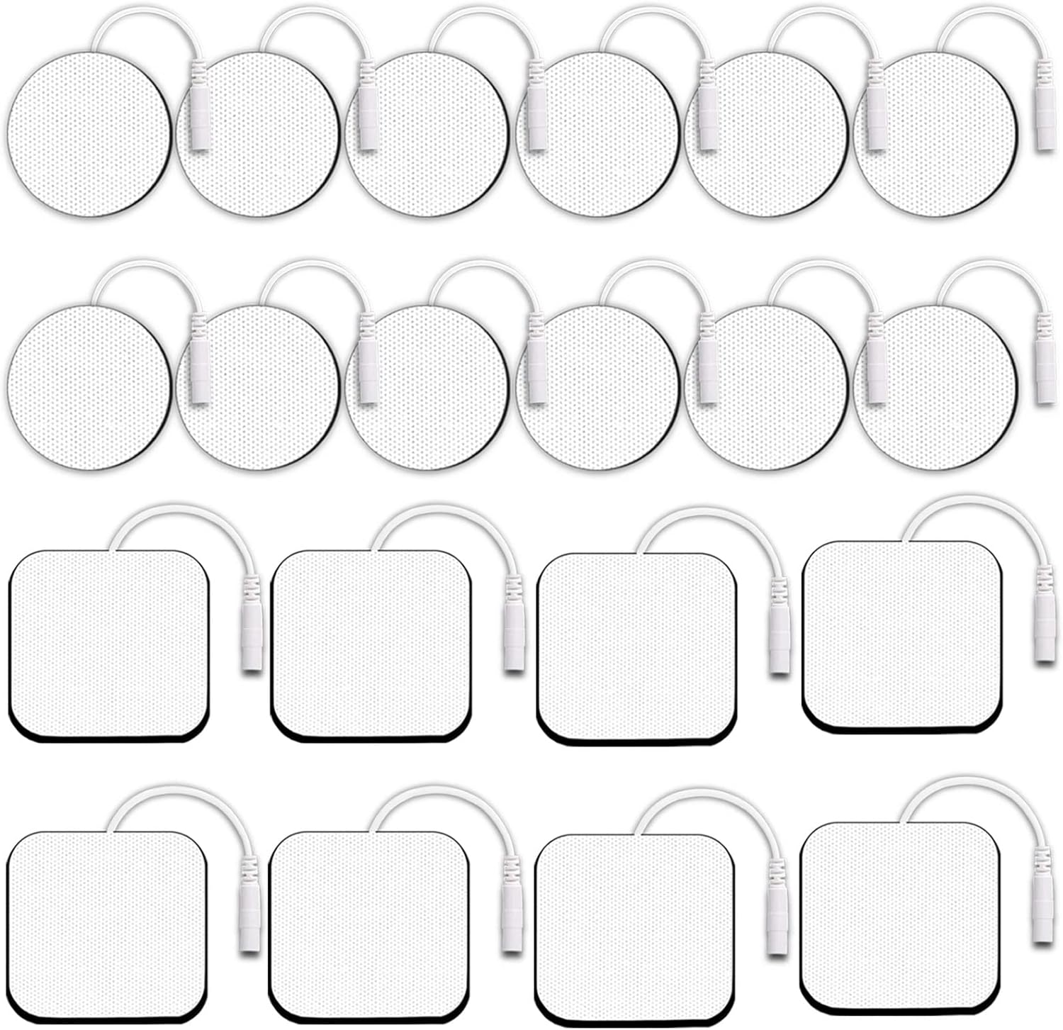 • 【Premium American-made Adhesive】20 Pack TENS Unit Replacement Pads unconditional 12-month warranty on this tens unit pads,Through certifications CE, ROHS Approved , you are protected from harmful chemicals and prescription medicine use, Using Premium American-made gel,No lead, benzene and other harmful substances,designed with safety in mind to ensure users of all skin types have a safe, comfortable experience.