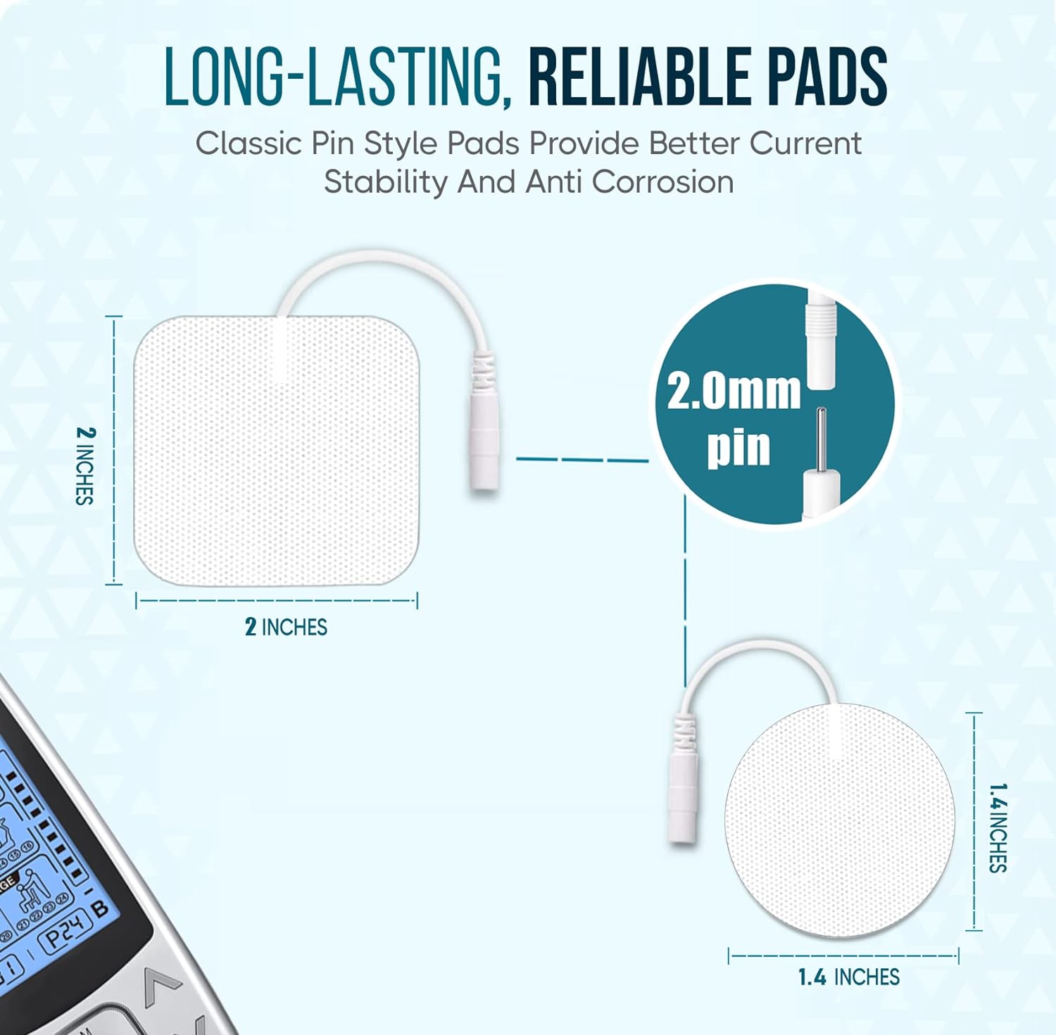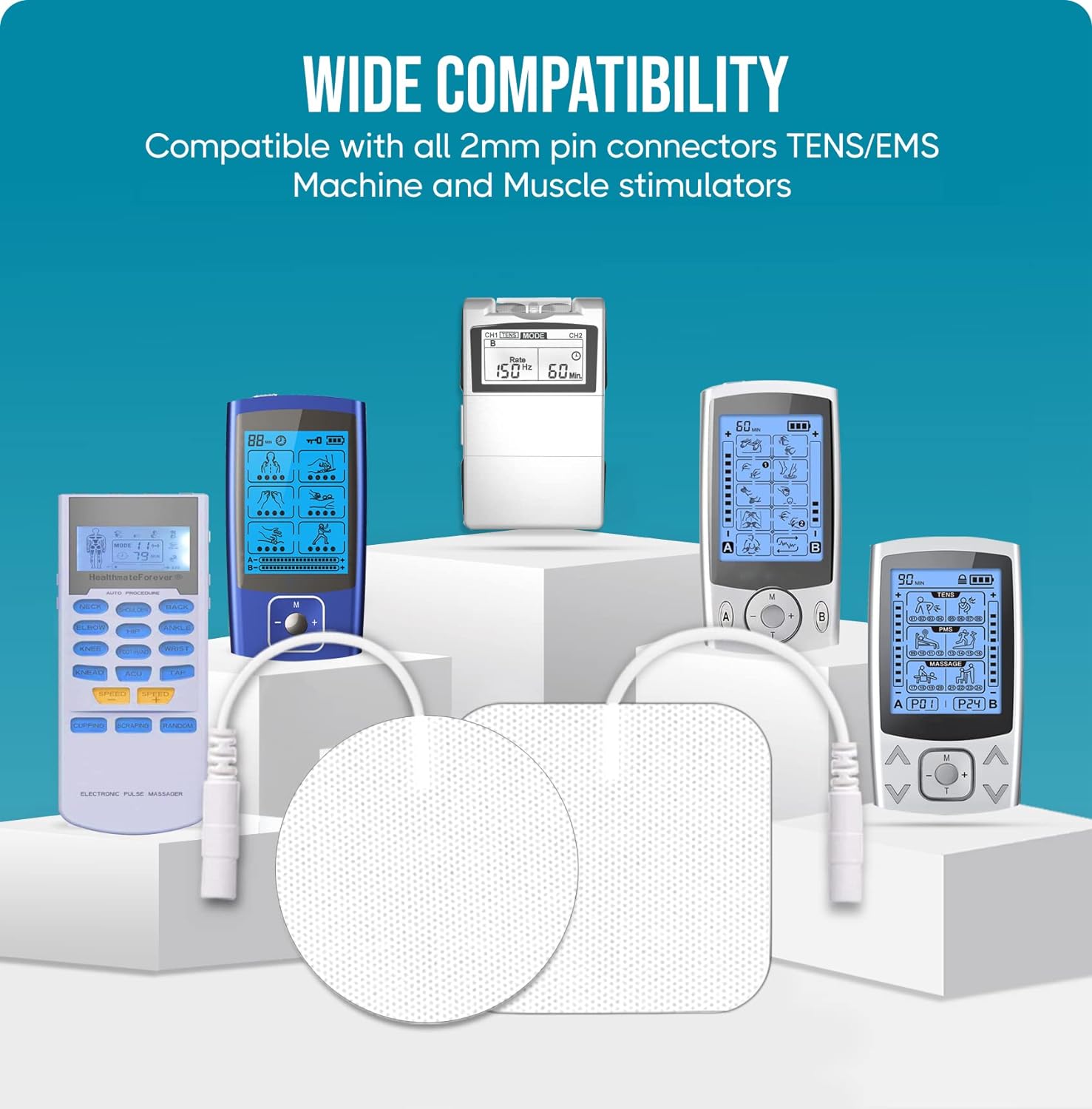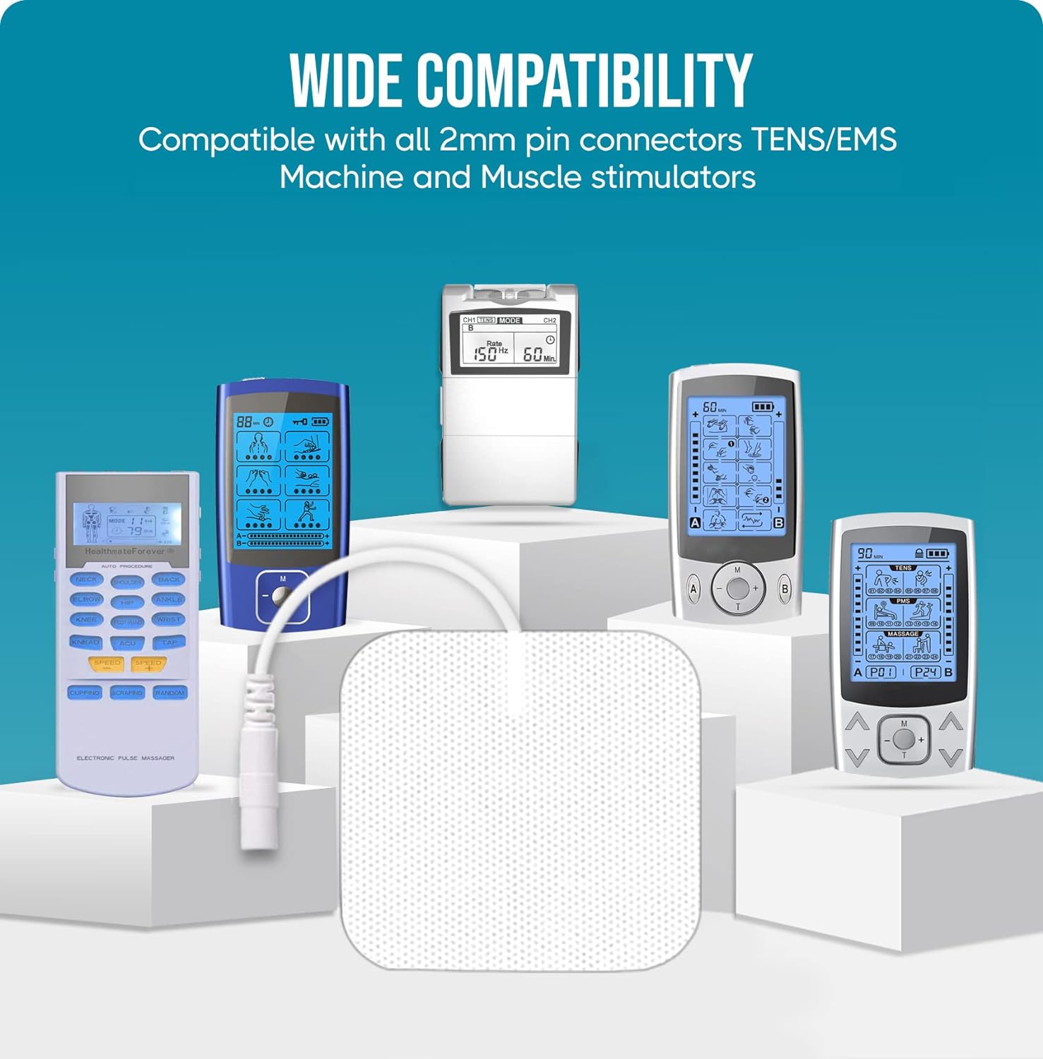 • 【Universal Compatibility】 Standard 2mm pin-in connector TENS units; which makes it easier for you to find compatible TENS unit muscle stimulator & accessories. Compatible with all TENS / EMS devices that use the industry standard Standard 2mm pin-in connector