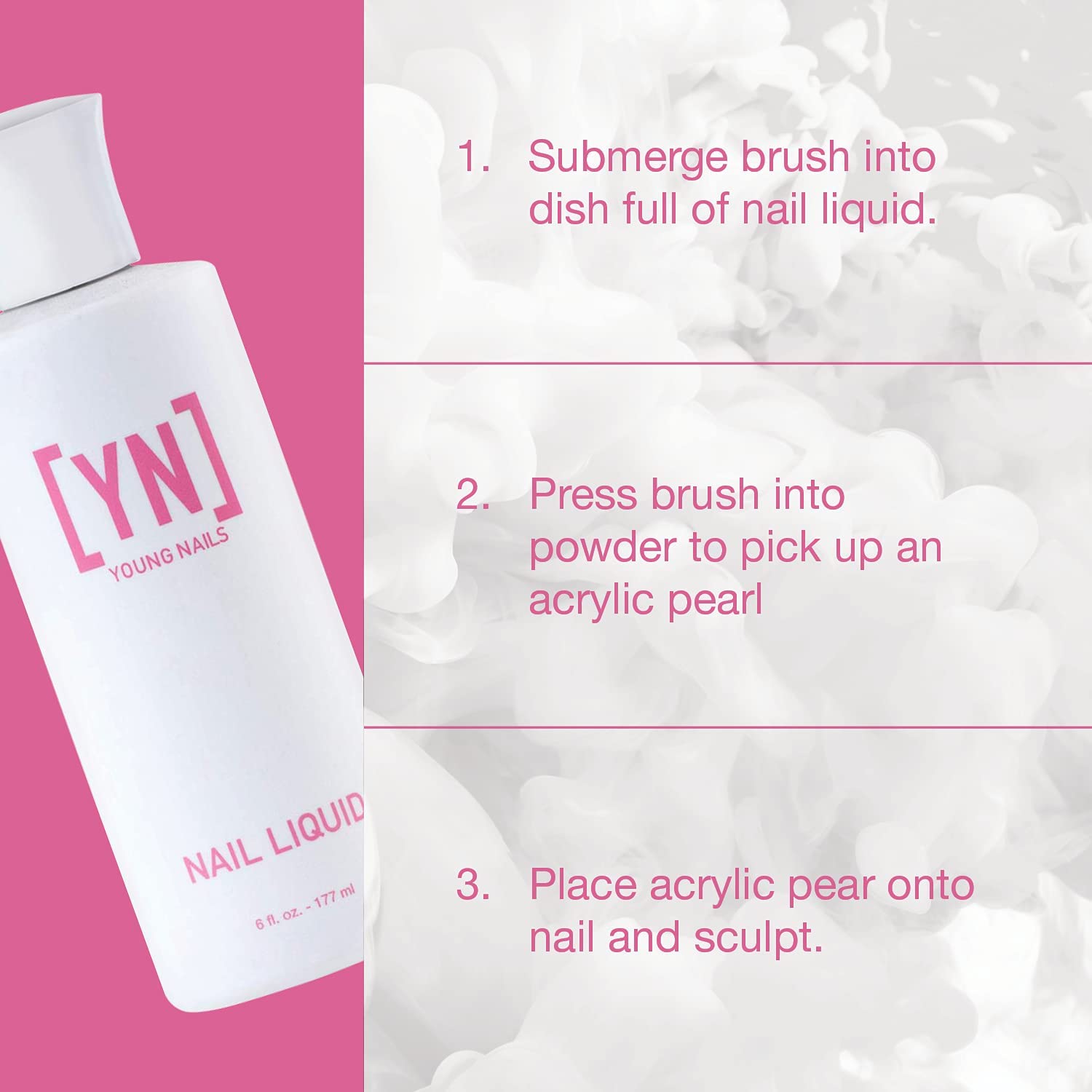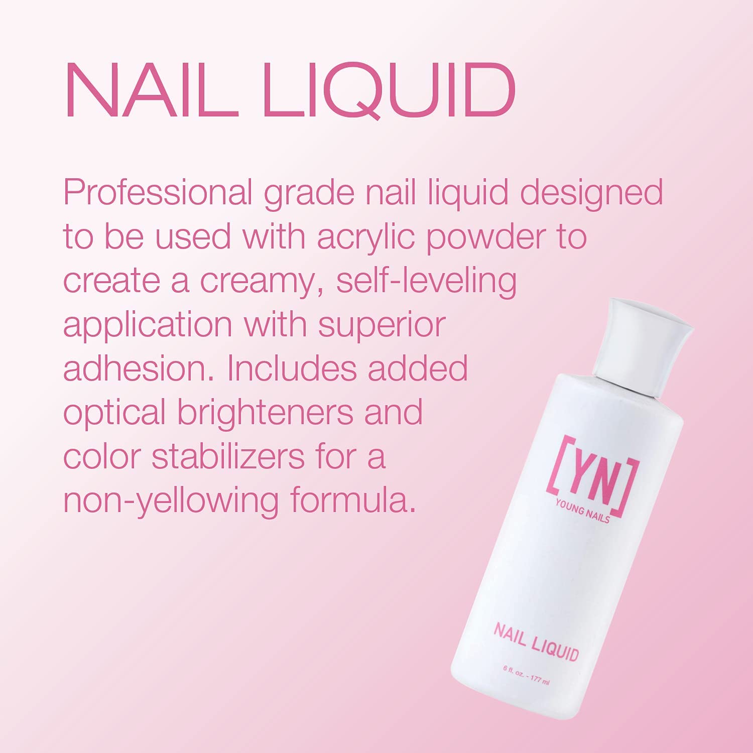 Young Nails Nail Liquid. Professional Grade High Quality Monomer. Use with Nail Powder for Acrylic Nails At Home. Low Odor, Mess + MMA Free, Non-Yellowing Nail Liquid