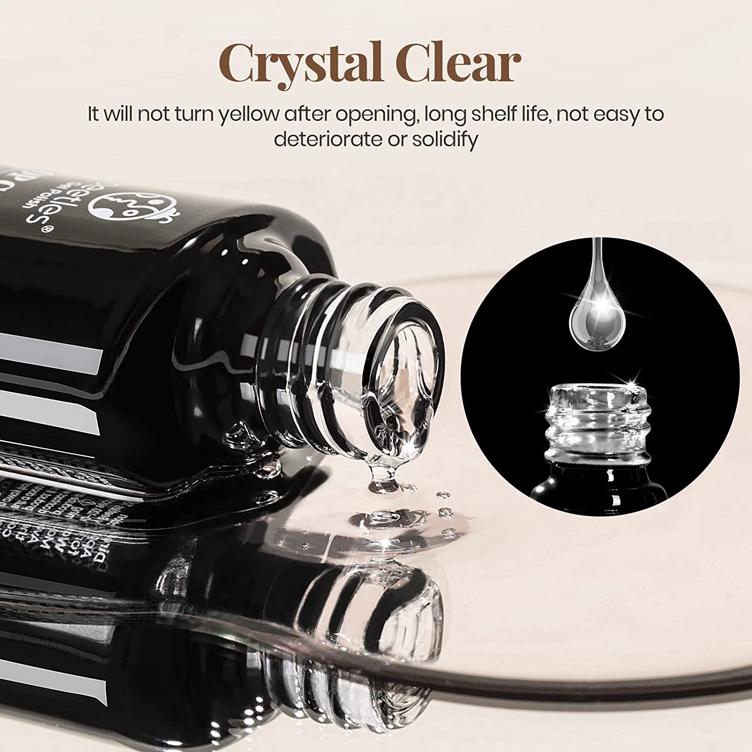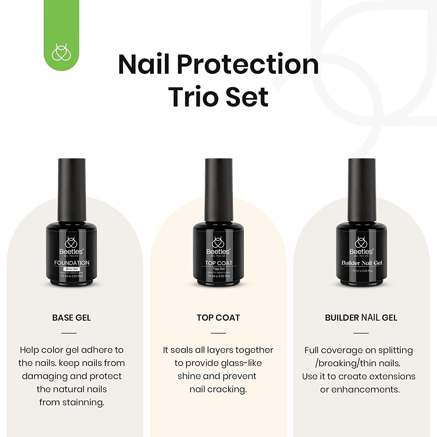 Beetles 3 Pcs 7.5ml Builder Nail Gel No Wipe Base Top Coat Set, Shine Finish and Long Lasting, Soak Off LED Transparent Builder Strengthener Hard Gel Base Top Coat Glossy Shine Finish
