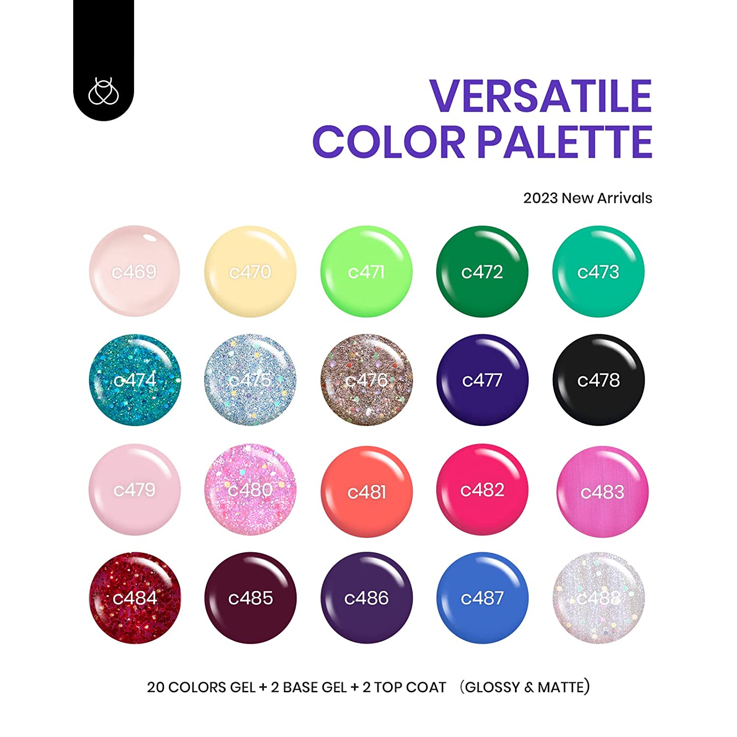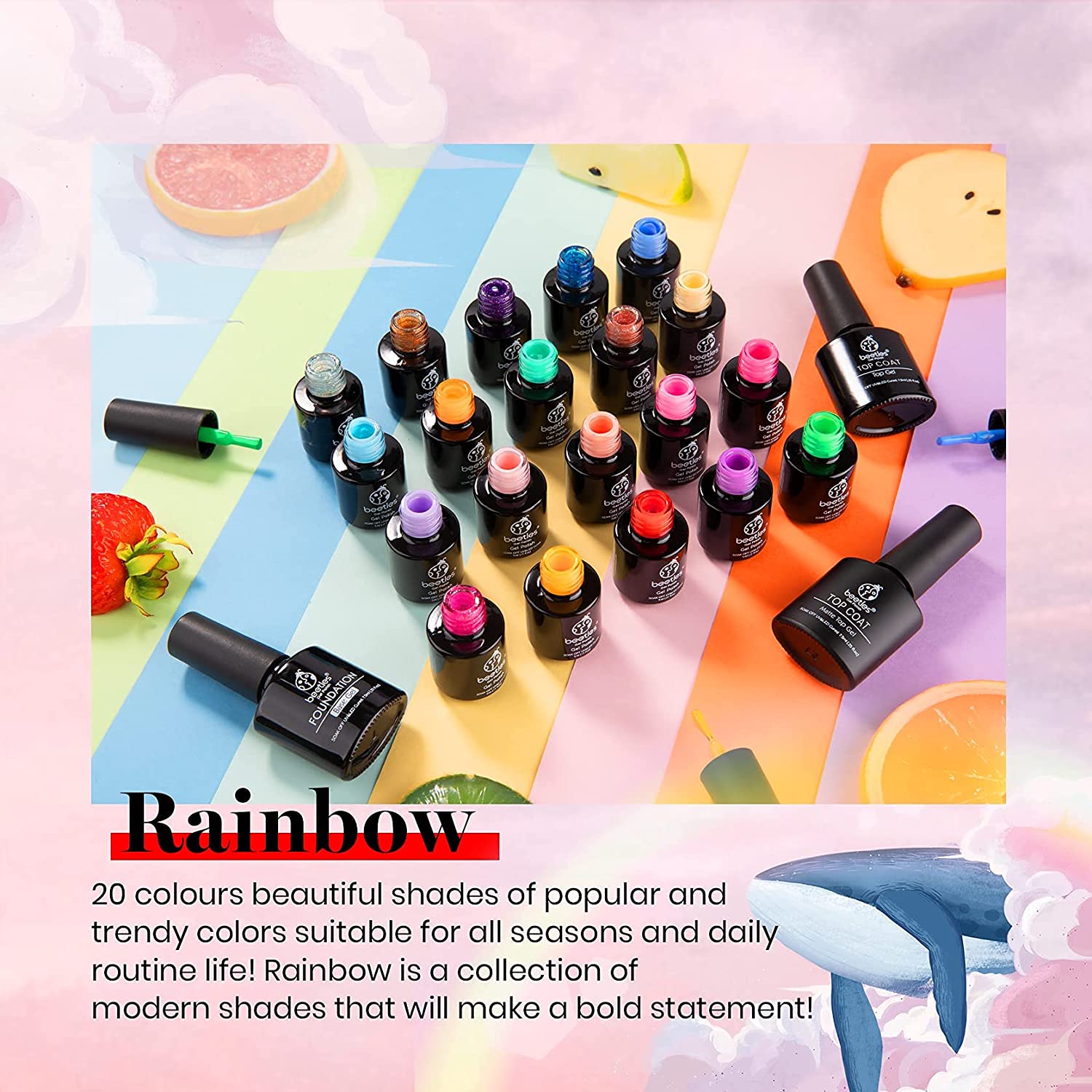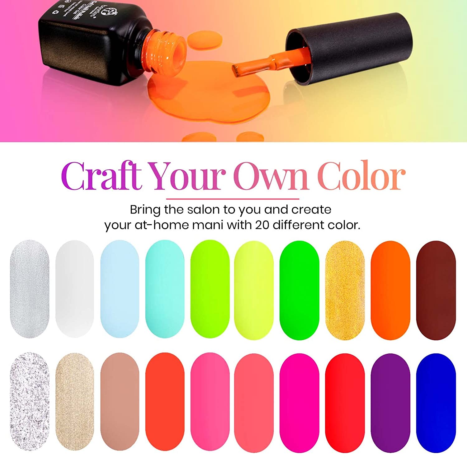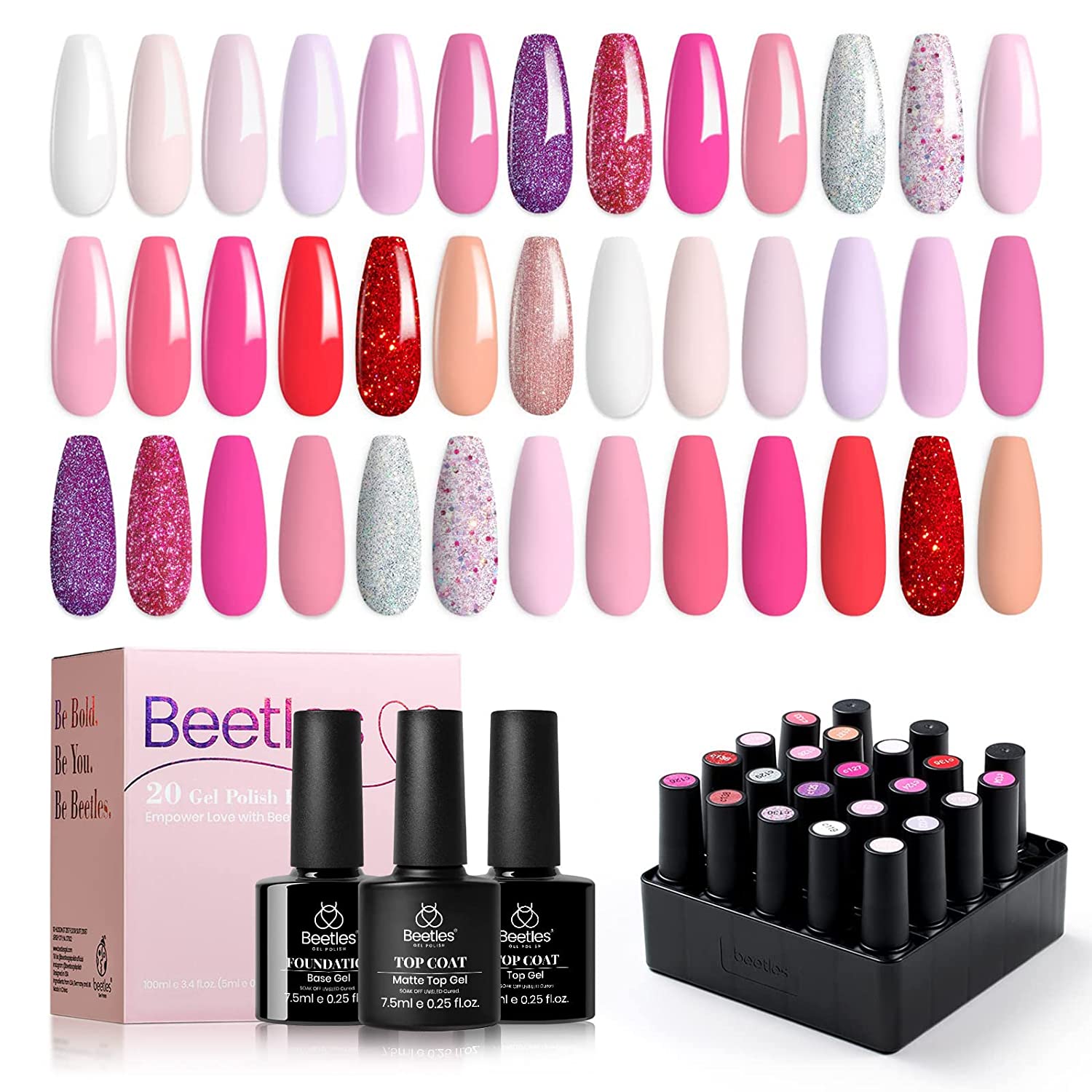 beetles Gel Polish Nail Set 20 Colors Neon Collection Hot Pink Magenta Lemon Green Soak Off Manicure Starter Kit with 3 Pcs Matte and Glossy Top Coat Base