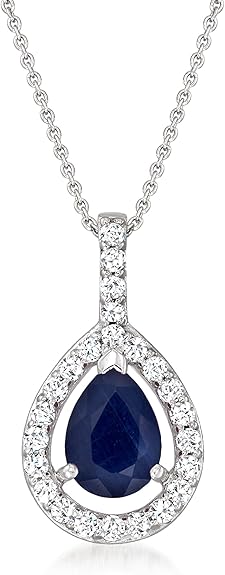 Ross-Simons 1.00 Carat Sapphire and .25 ct. t.w. Diamond Pendant Necklace in 14kt White Gold. 18 inches