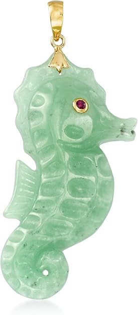 Ross-Simons Jade Seahorse Pendant With Ruby Accent in 14kt Yellow Gold