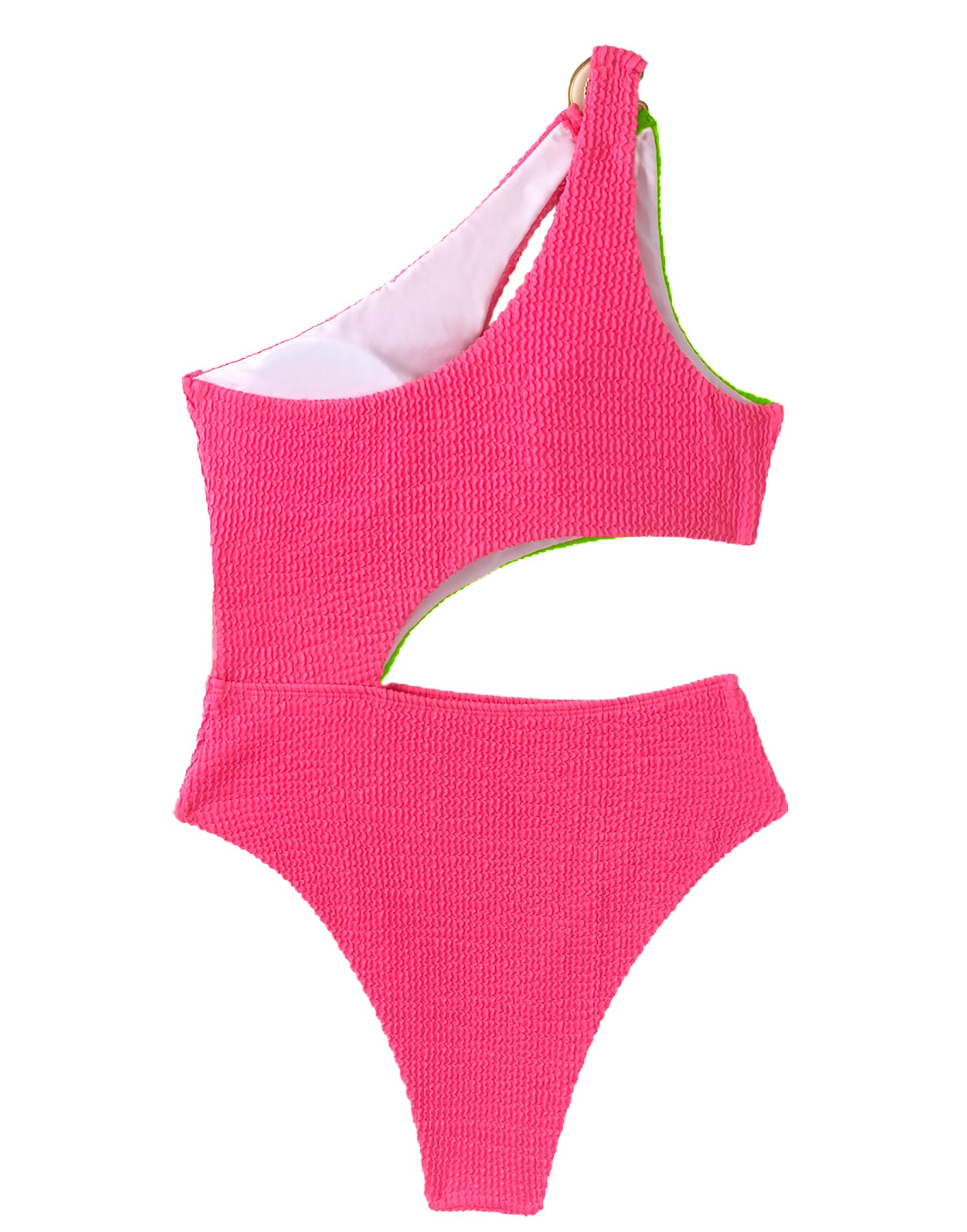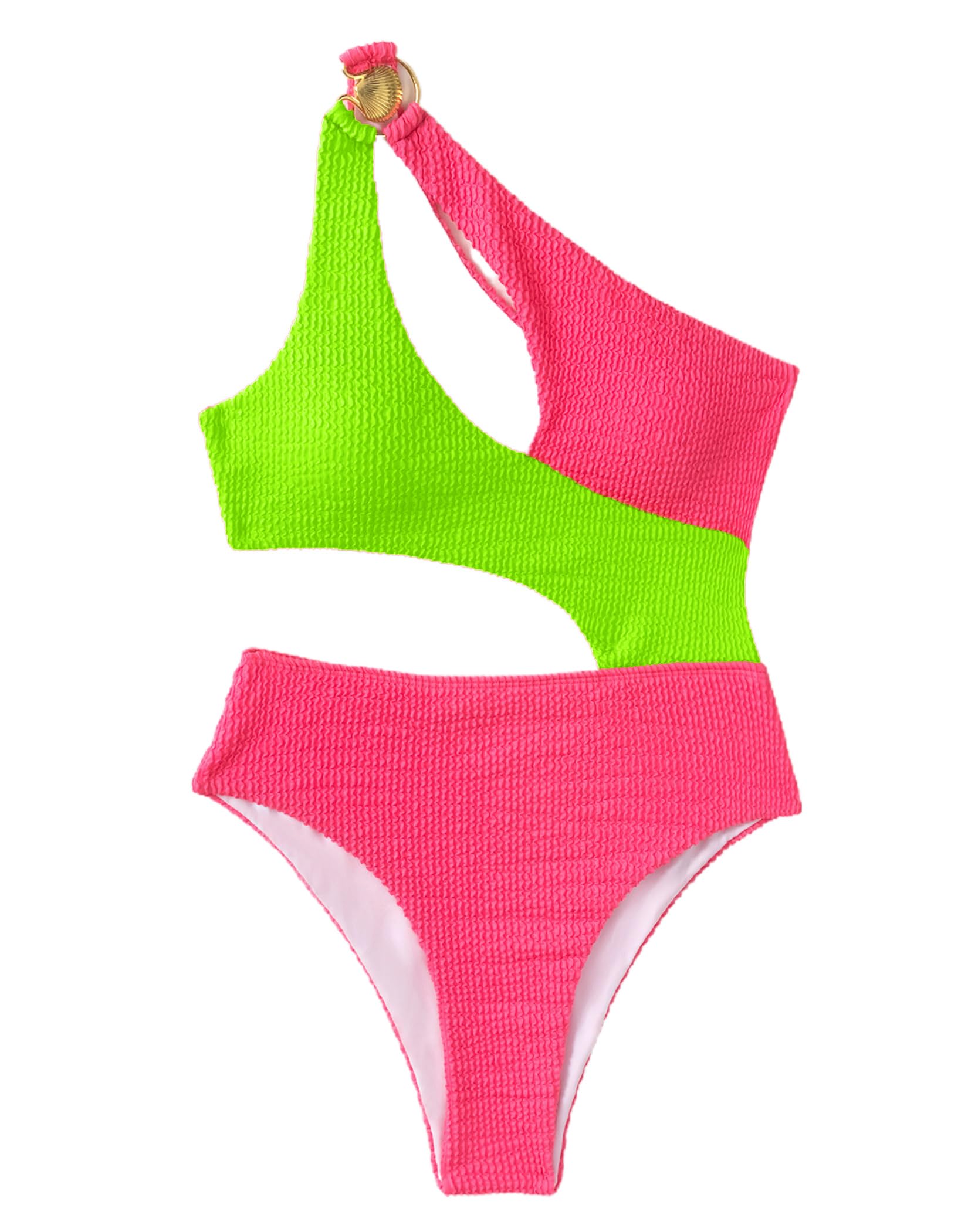 Details: HYPERFIRE Women's O-Ring Cutout Color Block One Piece Swimsuit High Cut Bathing Suit