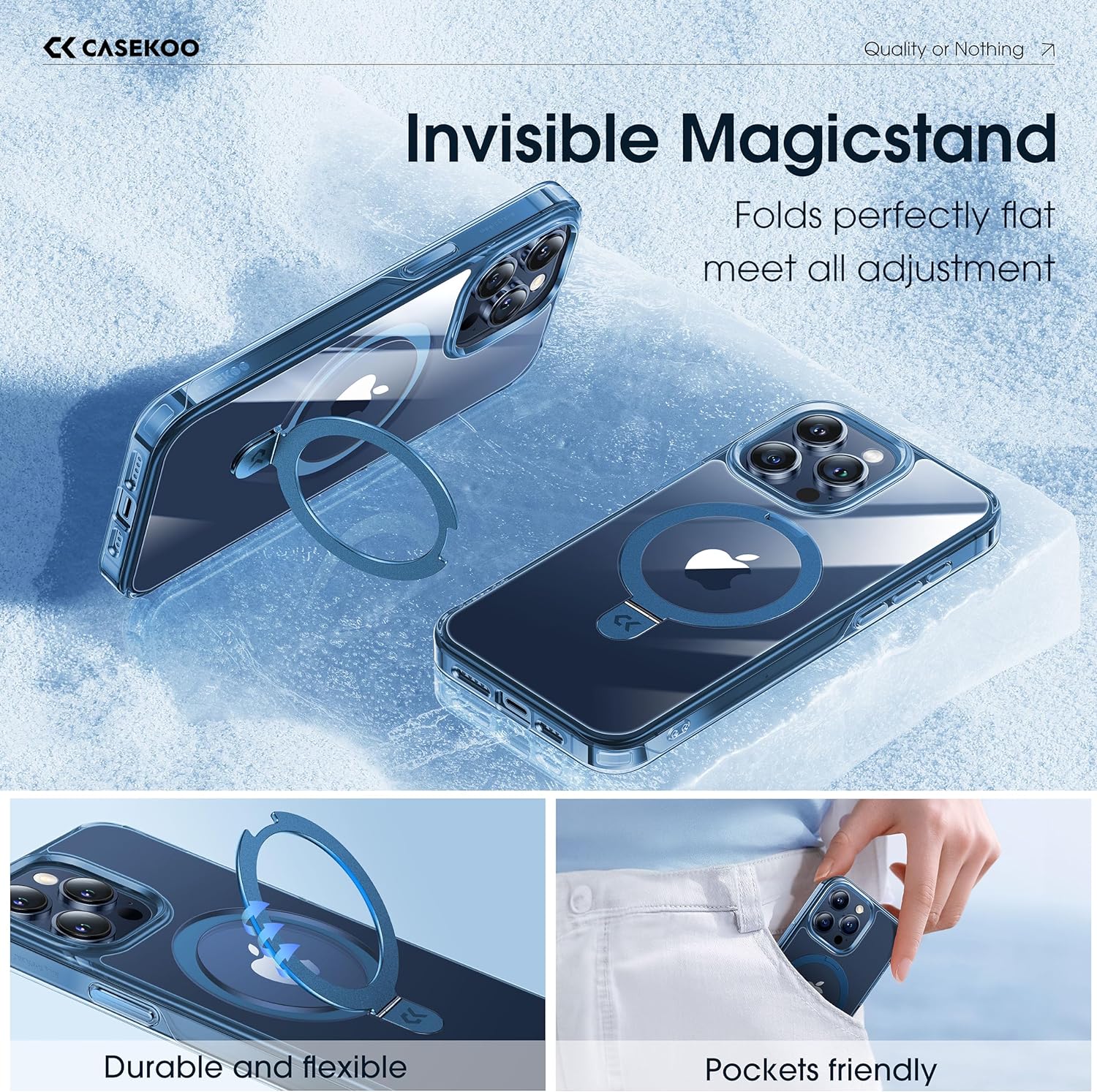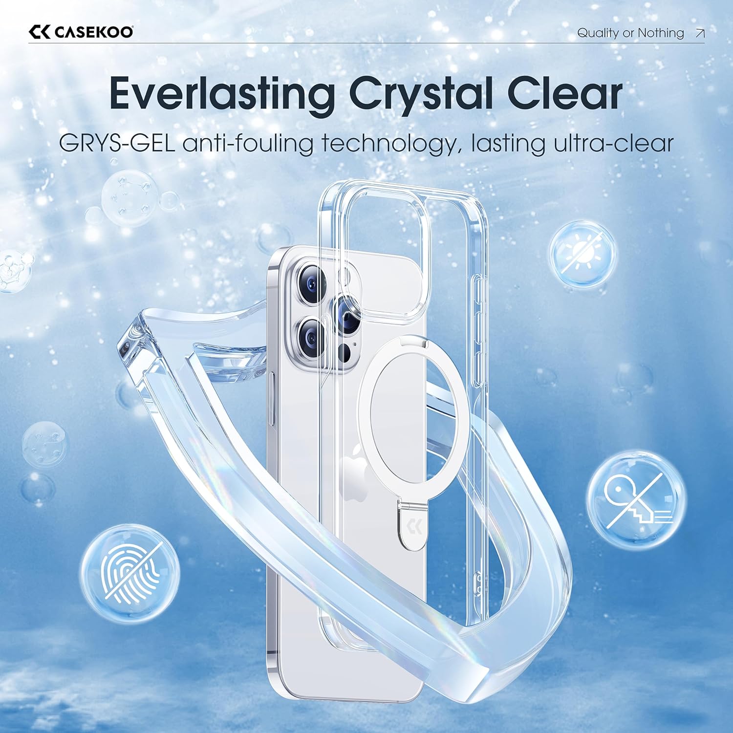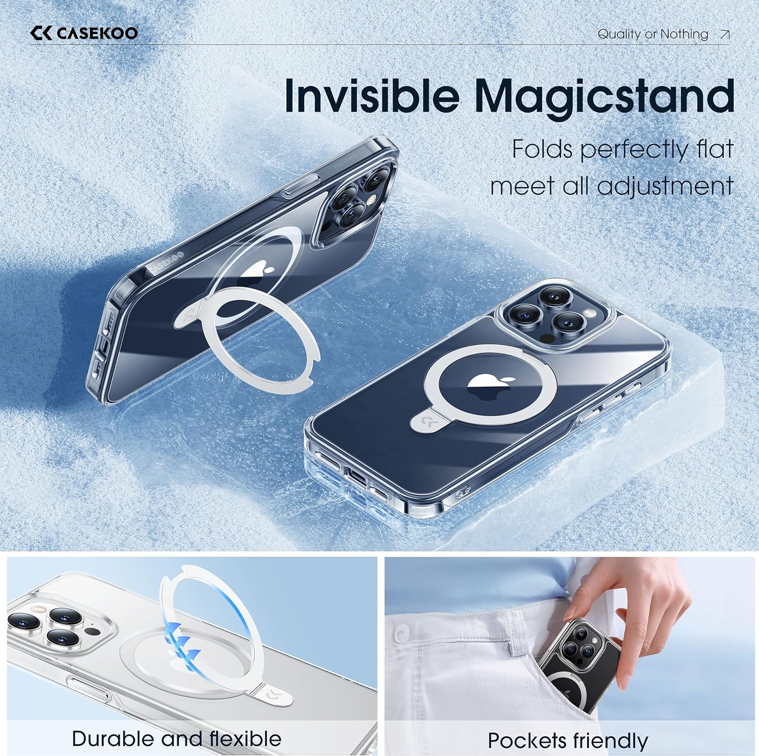 CASEKOO Designed for iPhone 15 Pro Max Case with Magnetic Invisible Stand [Compatible with MagSafe] Non-Yellowing Shockproof Protective Slim Holder for Women Men 6.7 Inch 2023, Clear
