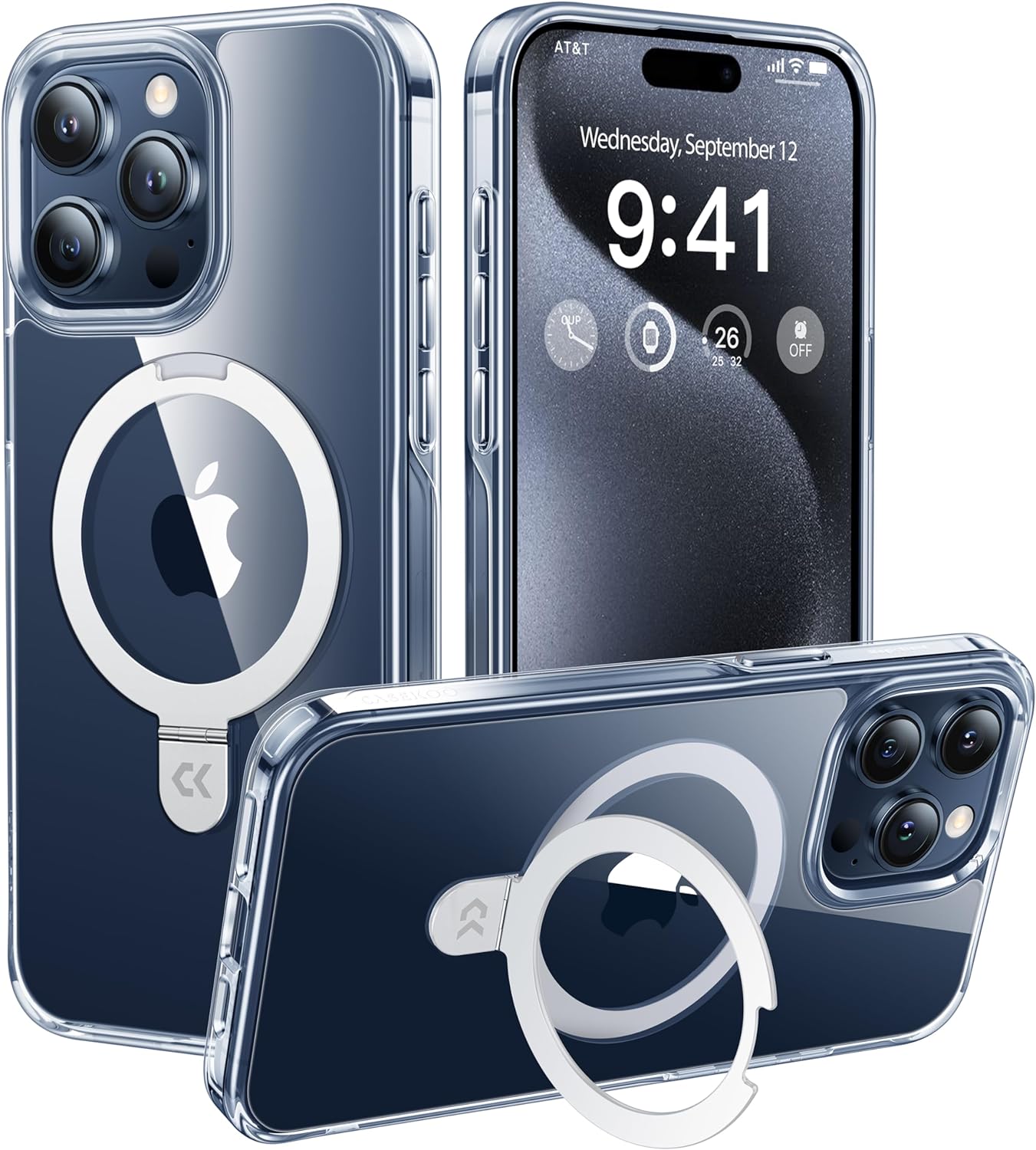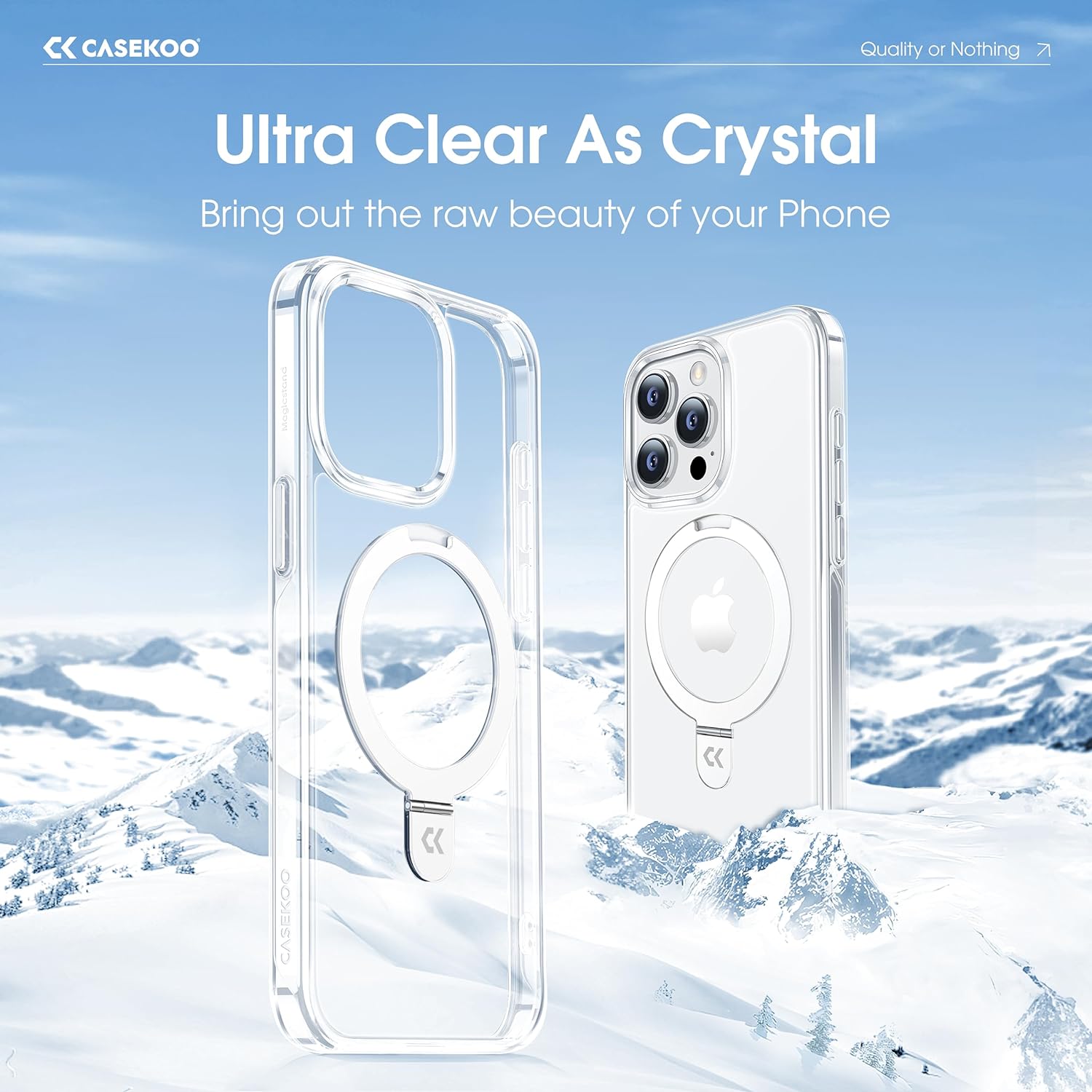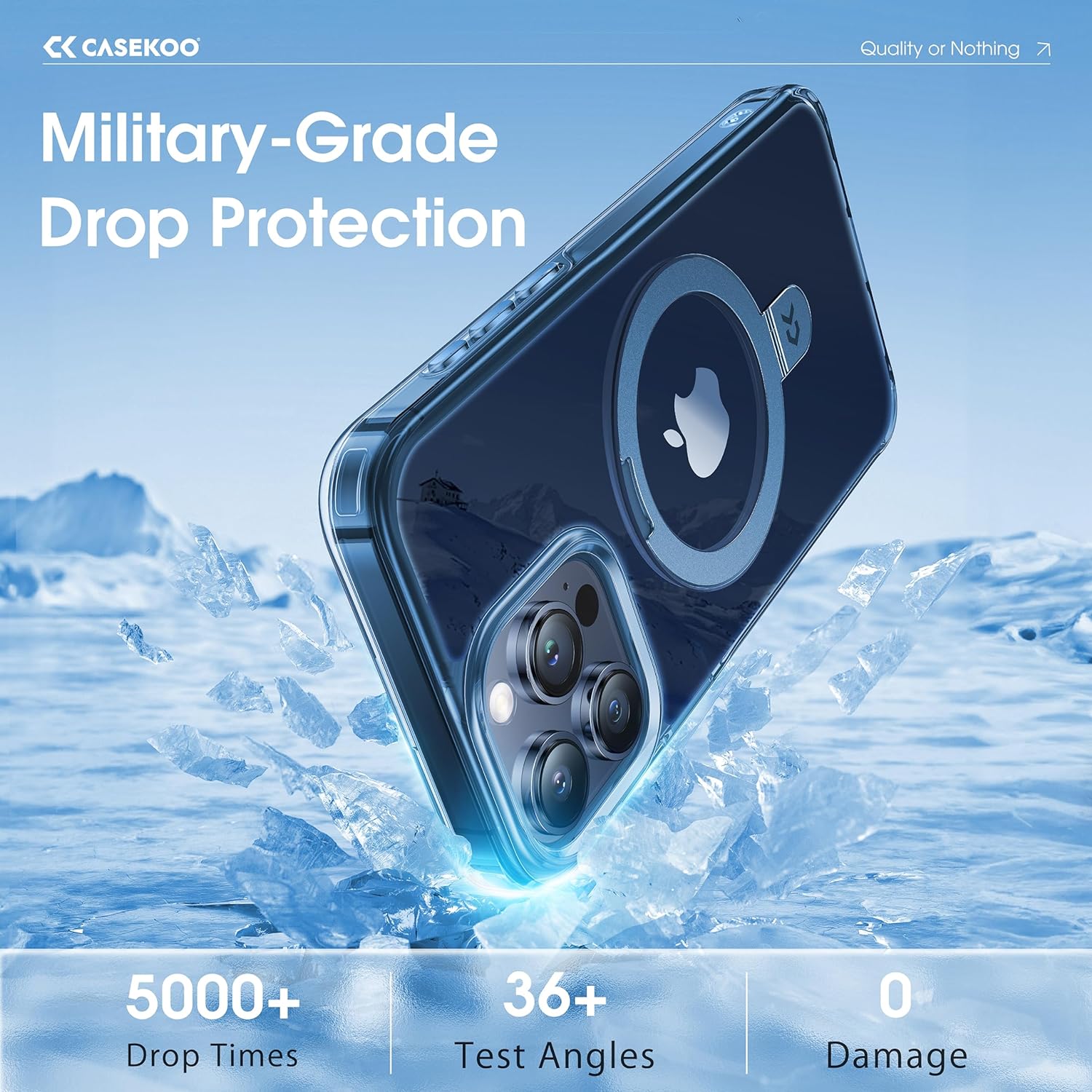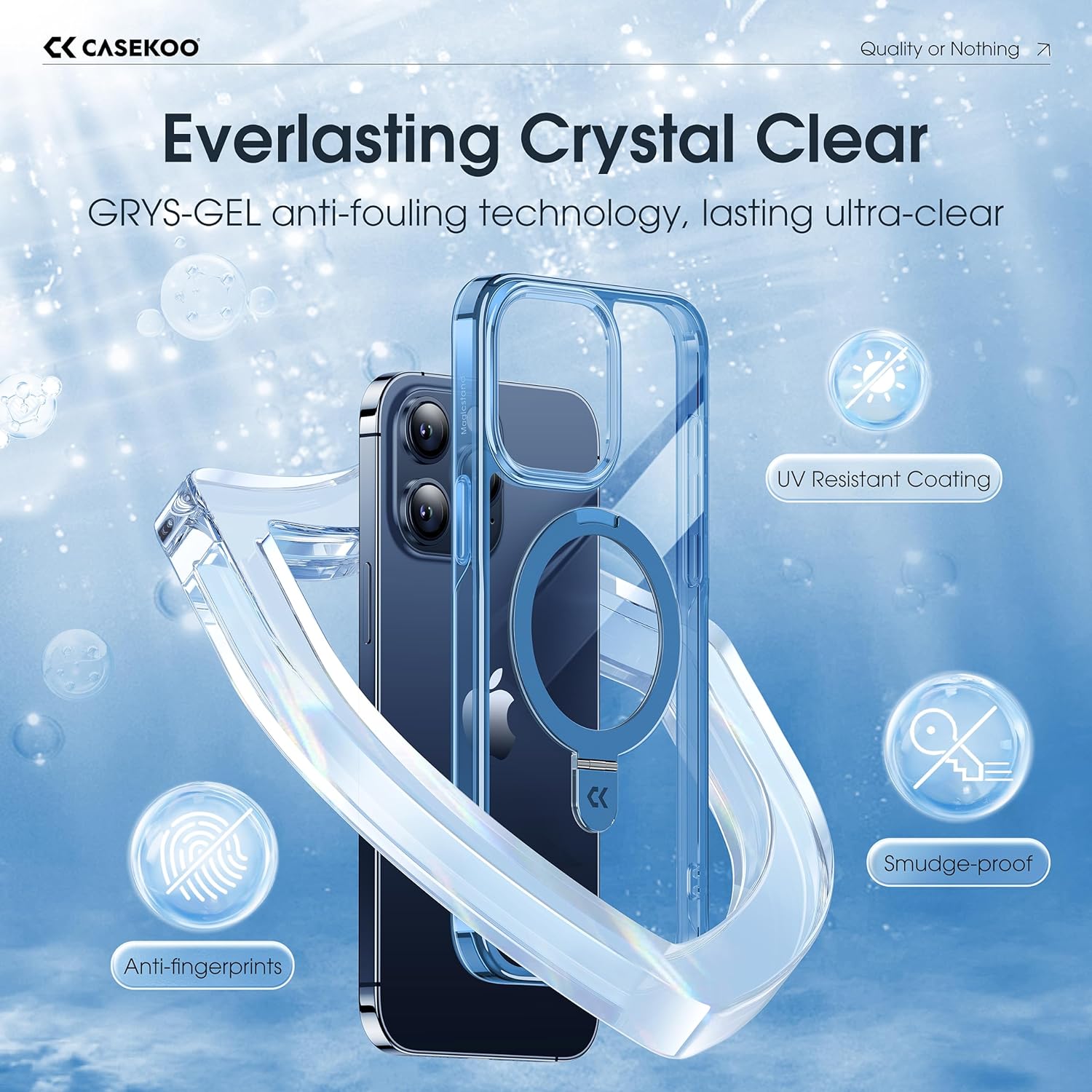 CASEKOO Designed for iPhone 15 Pro Max Case with Magnetic Invisible Stand [Compatible with MagSafe] Non-Yellowing Shockproof Protective Slim Holder for Women Men 6.7 Inch 2023, Clear