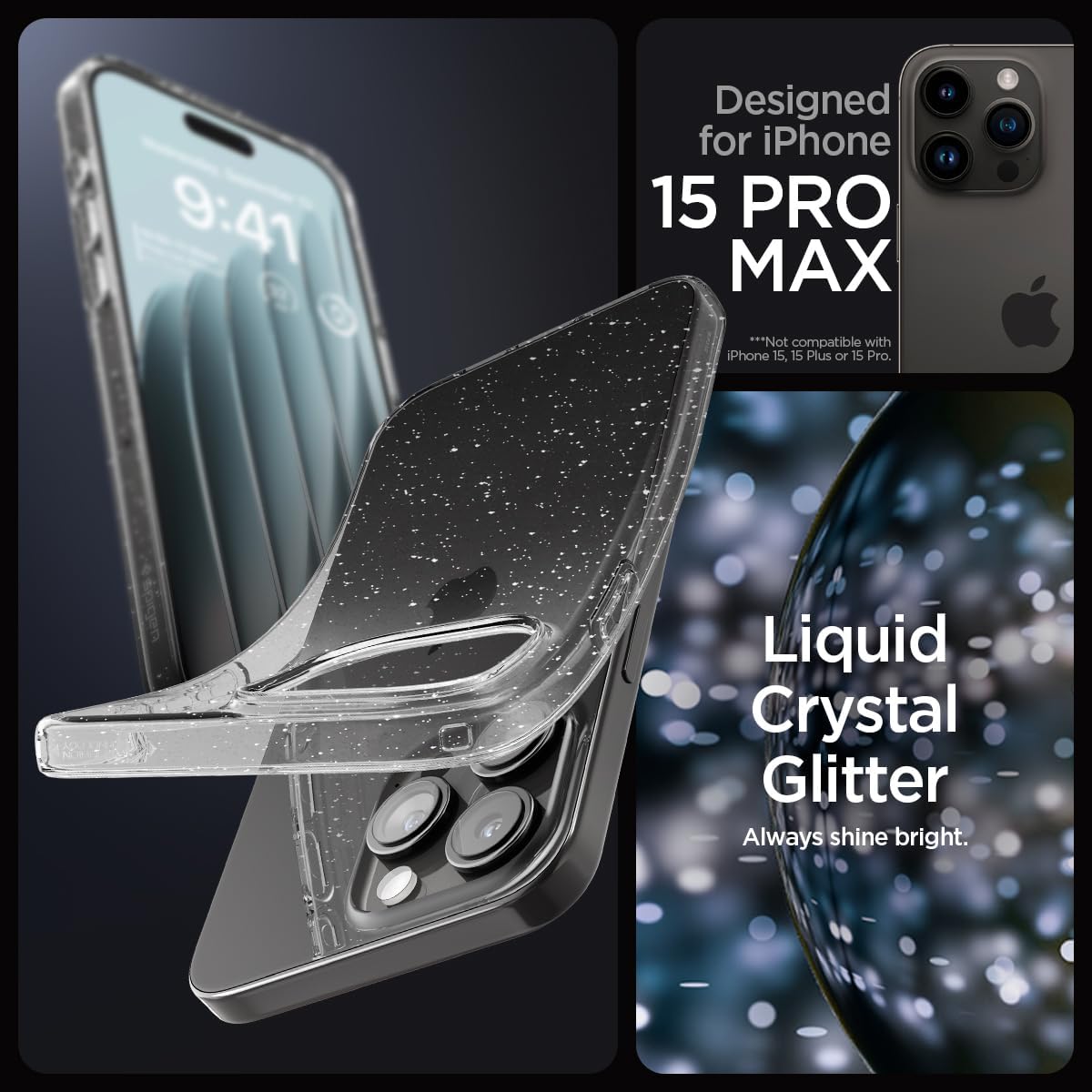 Spigen Liquid Crystal Designed for iPhone 15 Pro Max Case (2023), [Military Grade Drop Protection] - Crystal Clear